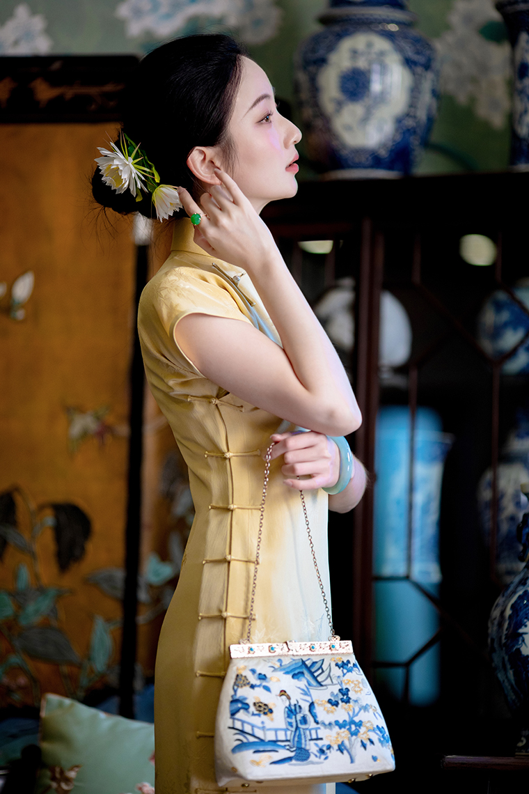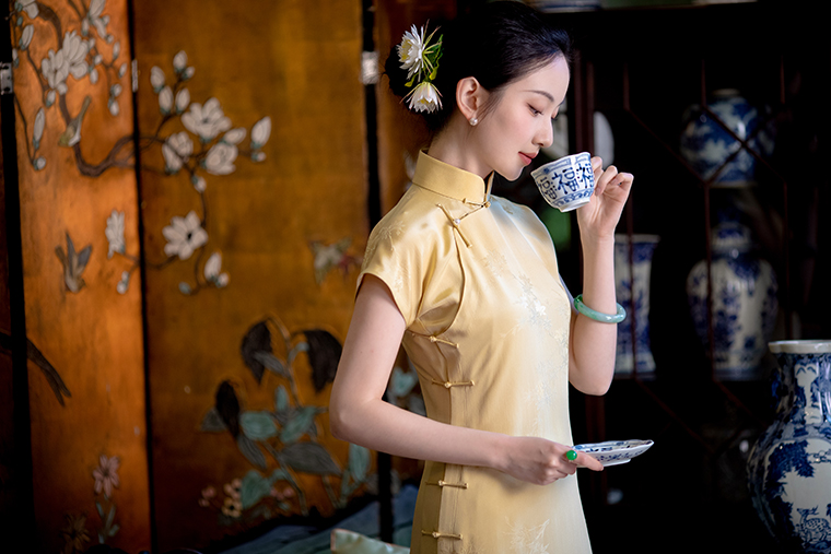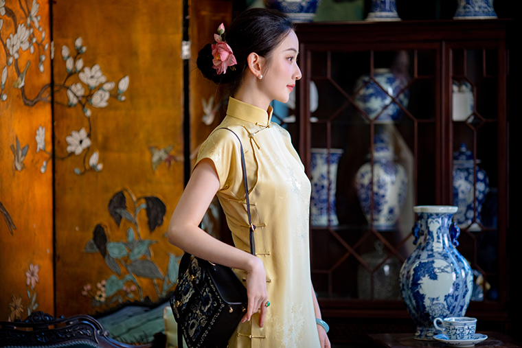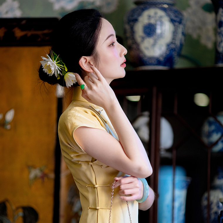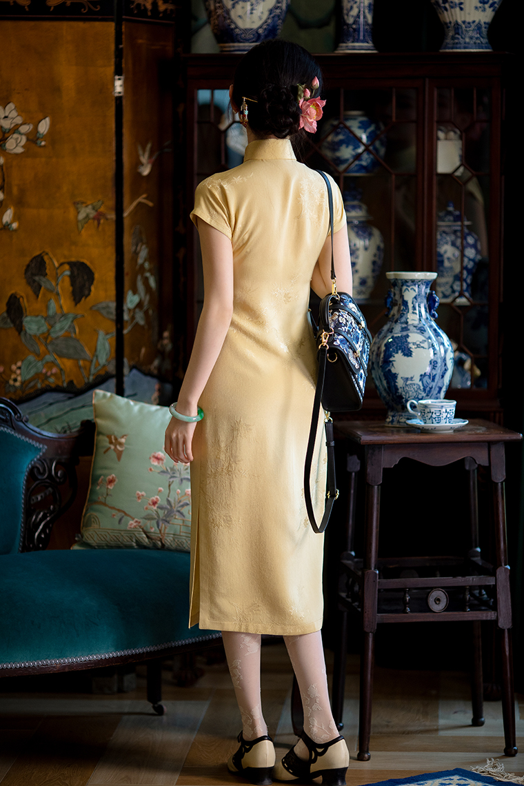 Yueban Xixi丨2025 Summer New Collection丨Silk Imitation Vintage Stand Collar Full-Button Traditional Chinese Dress