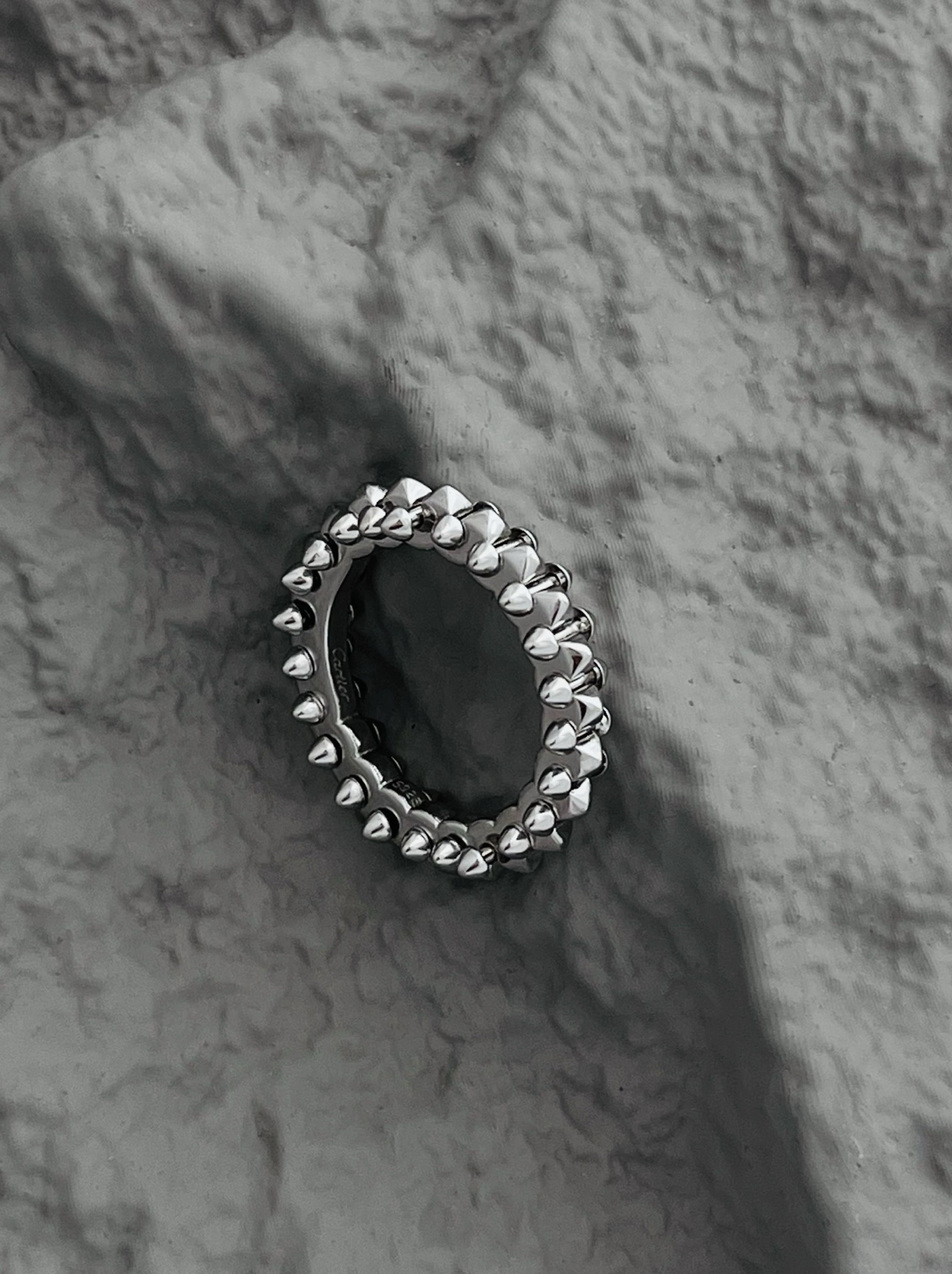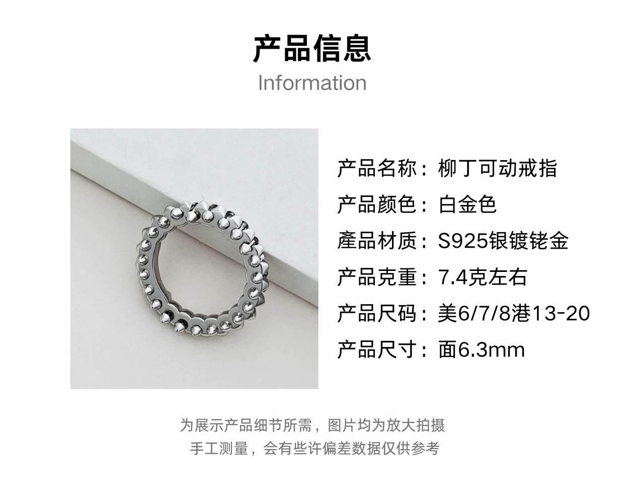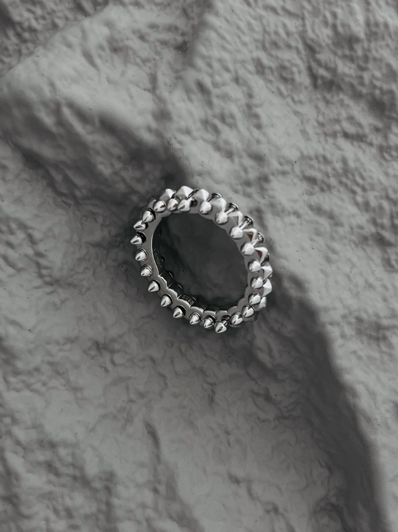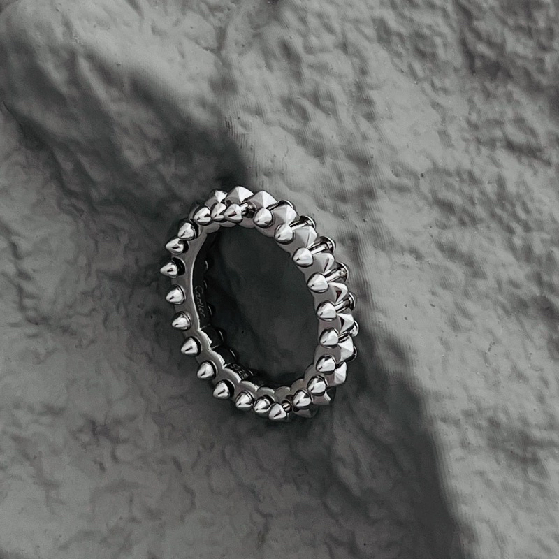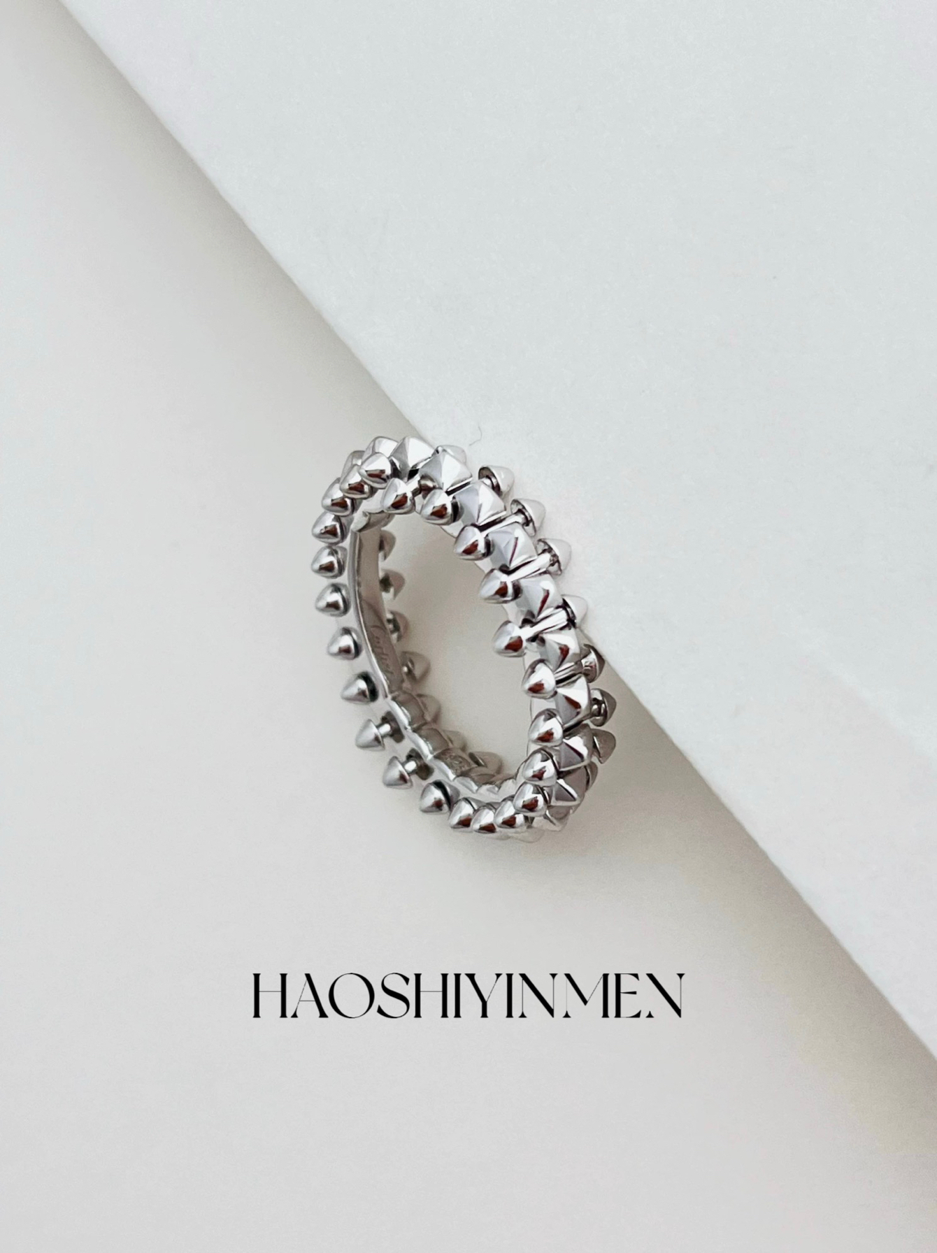 Designer High-End All-Over S925 Sterling Silver Rhodium-Plated Gold Rivet Ring Niche High-End Fashion Ring