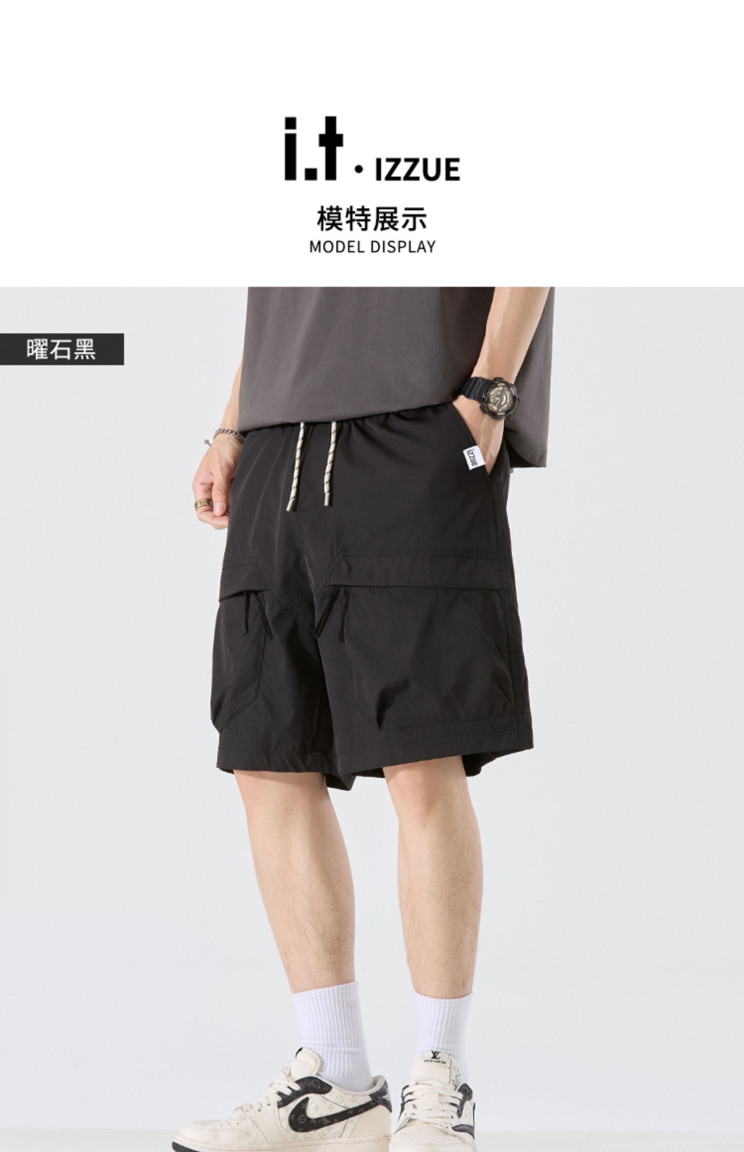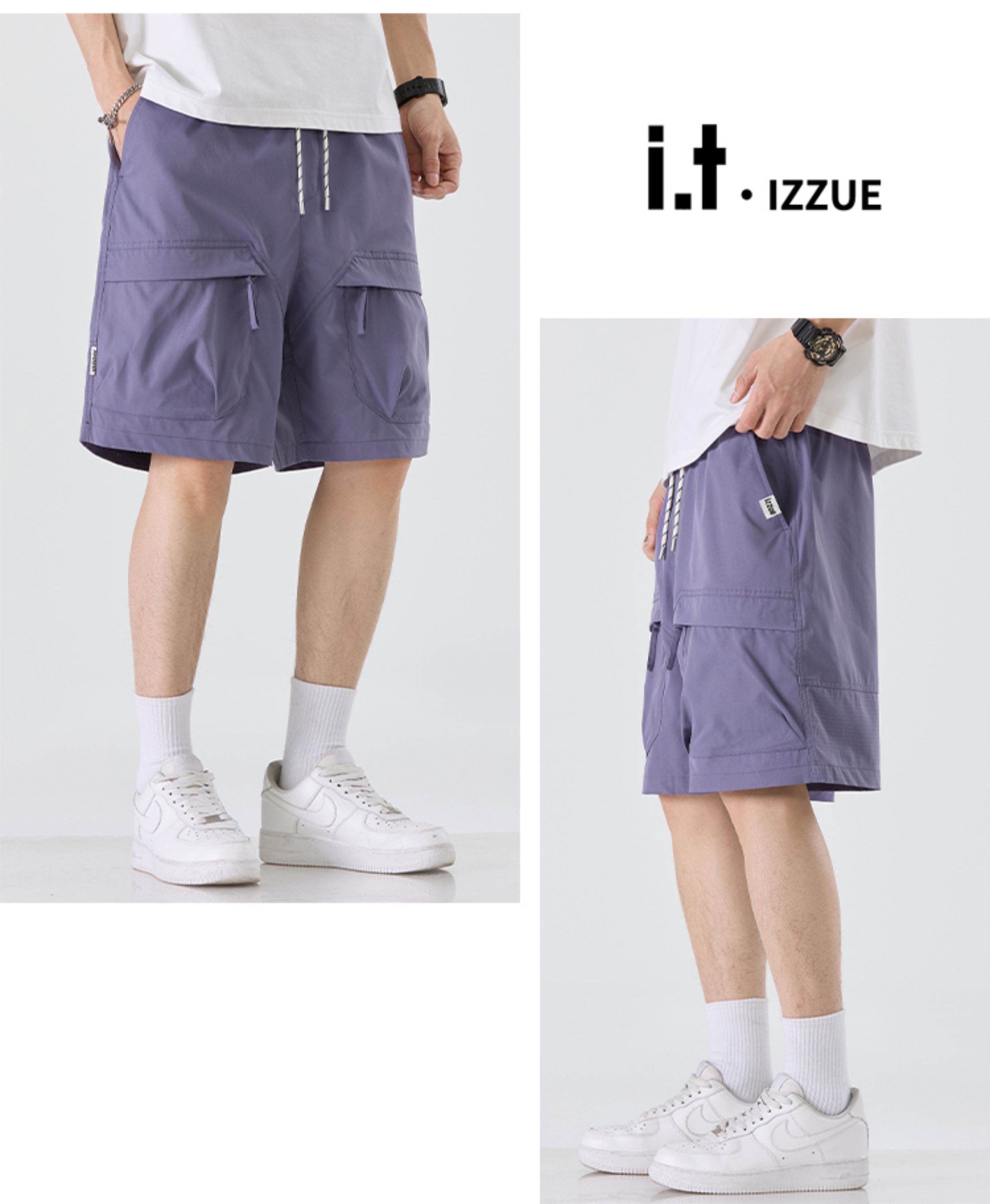 It Izzue Purple Five-Point Sports Shorts for Men, Loose Fit, Summer Thin Style, Outdoor Workwear, Quick-Drying Mid-Length Pants Y
