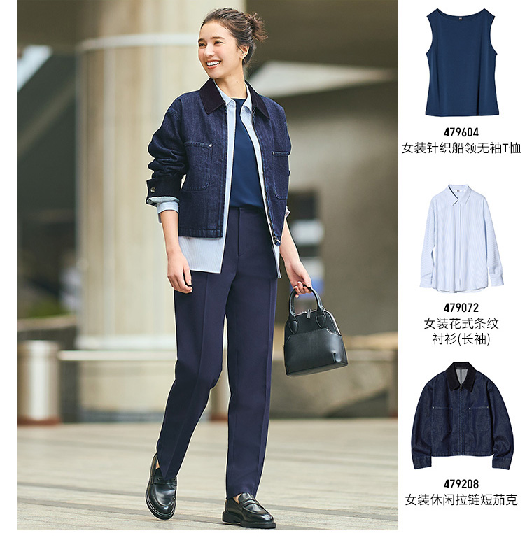 Uniqlo Women's Casual Zipper Short Jacket/Coat Barn Style Lapel Fashion Jacket New Model 479208