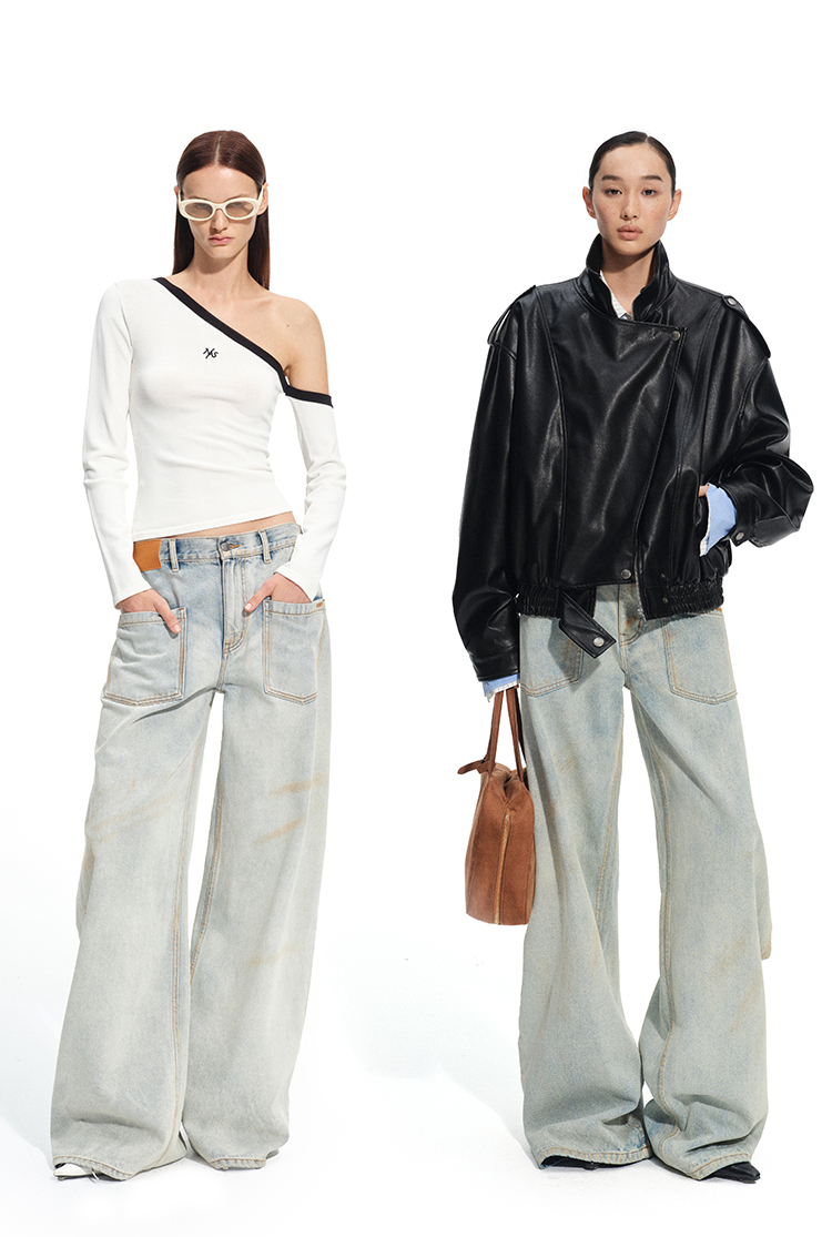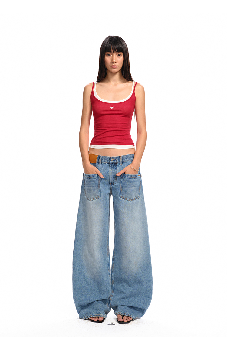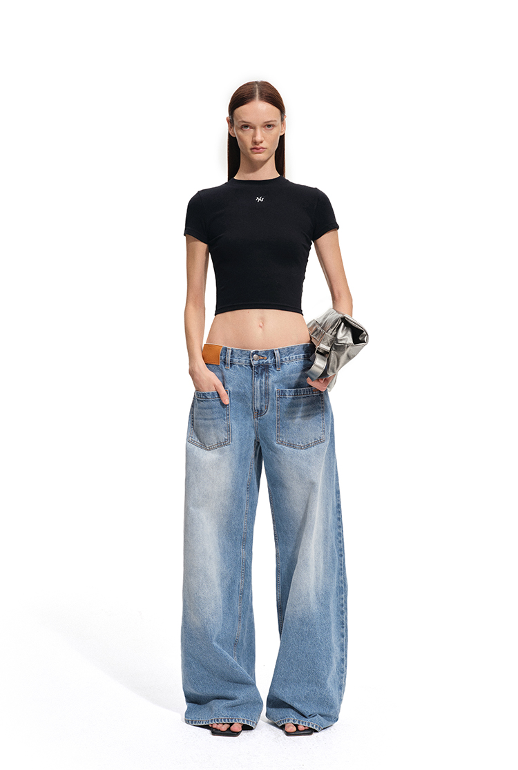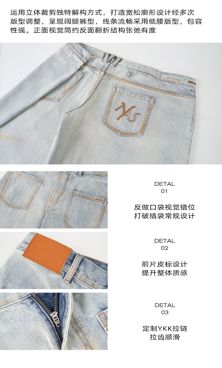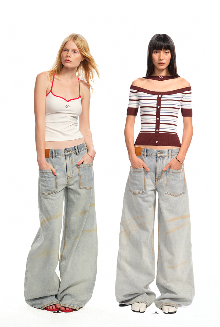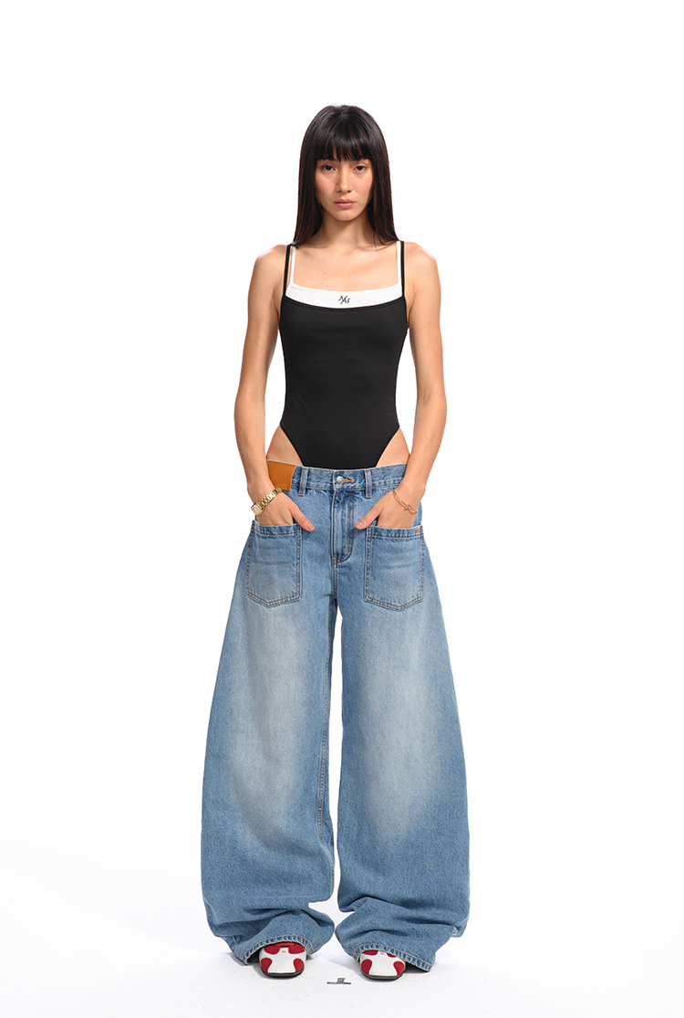 Naws【Same Style as Niyi】Ceramic Denim Baggy Pants Washed Reverse Pocket Wide Leg Jeans Long Pants
