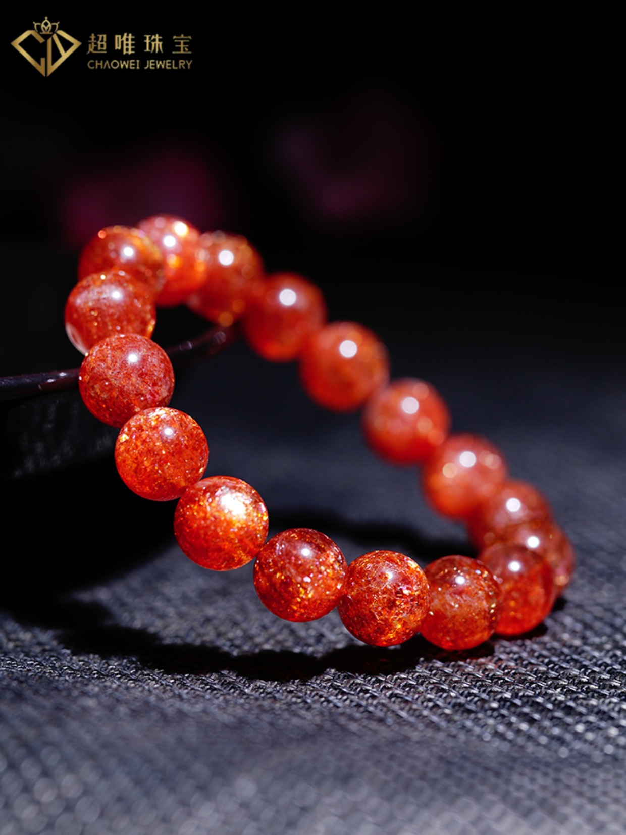 Super Rare Jewelry Natural Crystal Golden Sunstone Bracelet Collector's Grade Orange-Red Golden Sand Arusha Golden Sunstone Bracelet