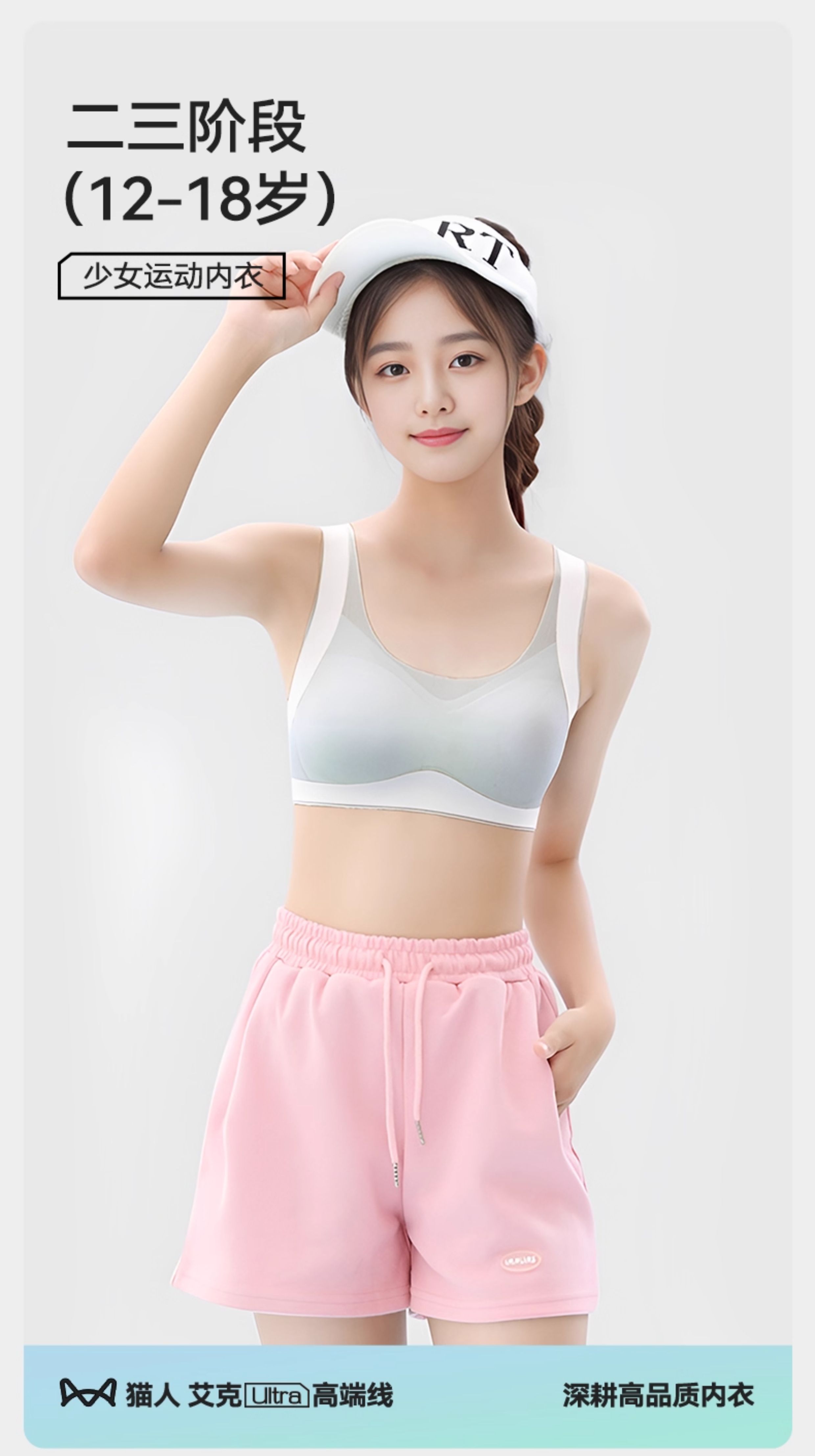 Cat-Themed Developmental Stage Girls' Underwear for the Second and Third Stages of Puberty, Suitable for Middle and High School Students, Adolescent Children's Sports Vest, Thin a