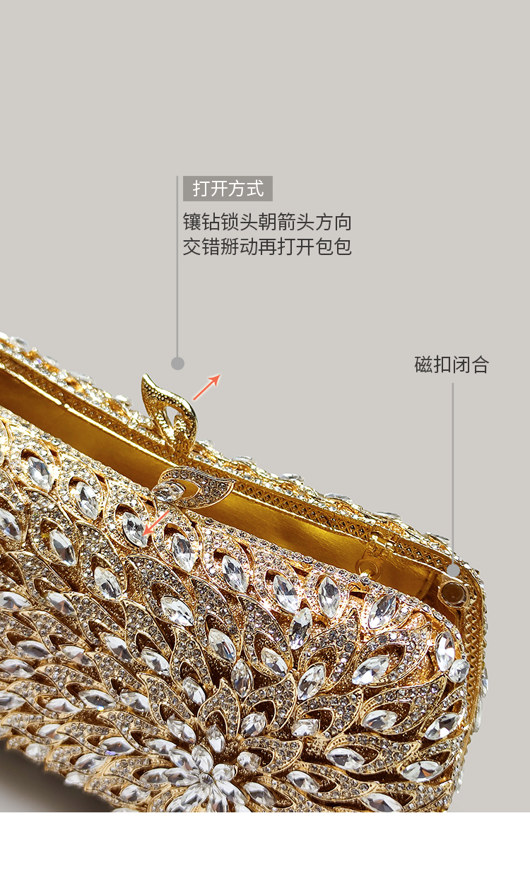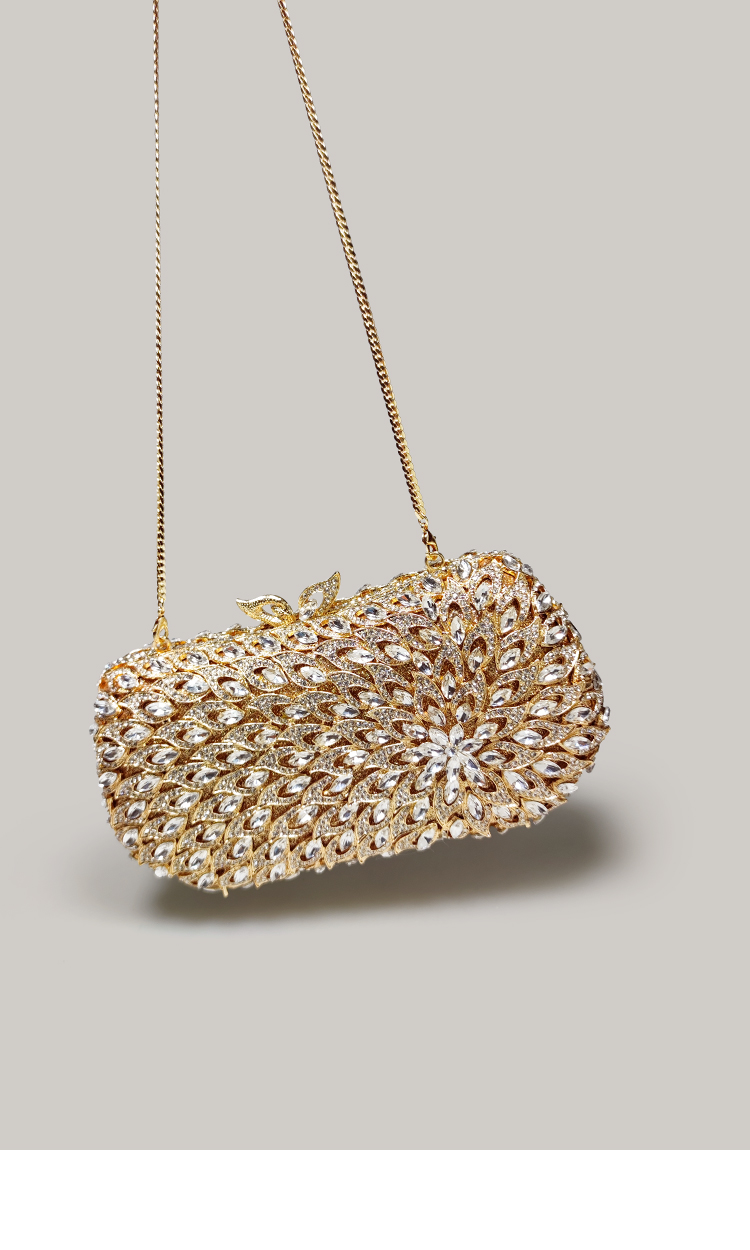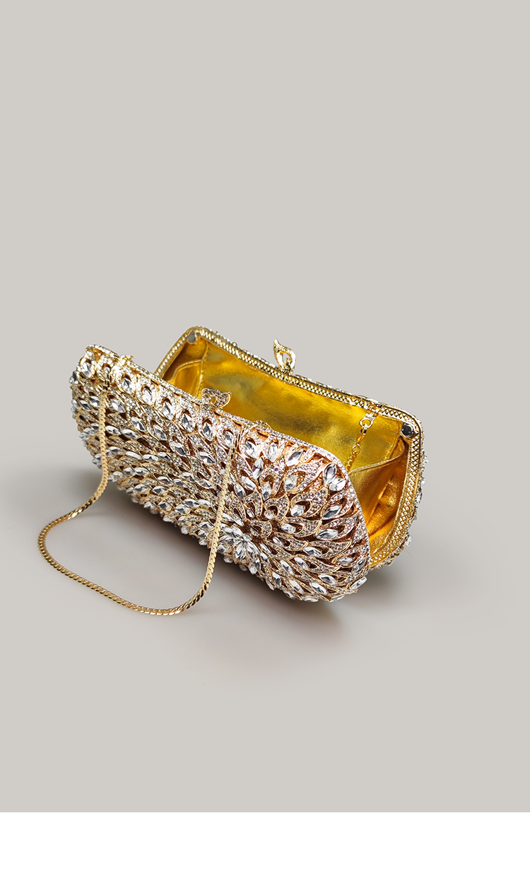 Exquisite High-End Banquet Clutch Bag, Gold Shiny Rhinestone Small Handbag for Women, Evening Bag to Match with Cheongsam Dress
