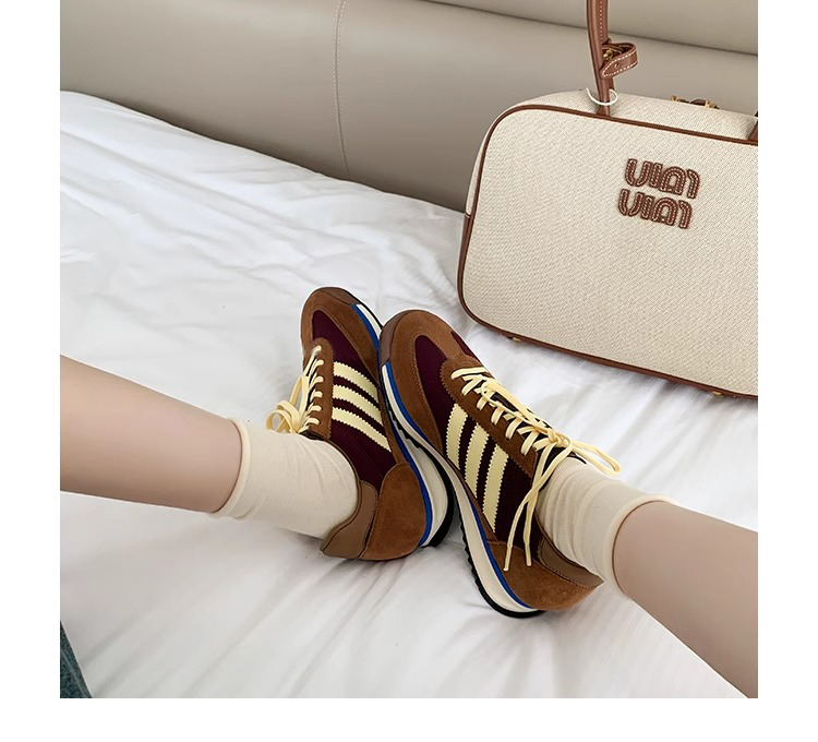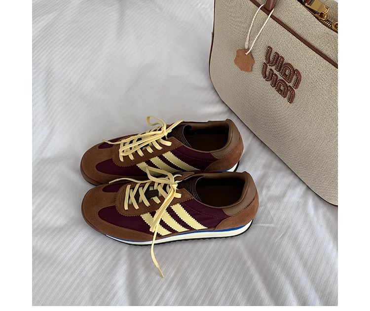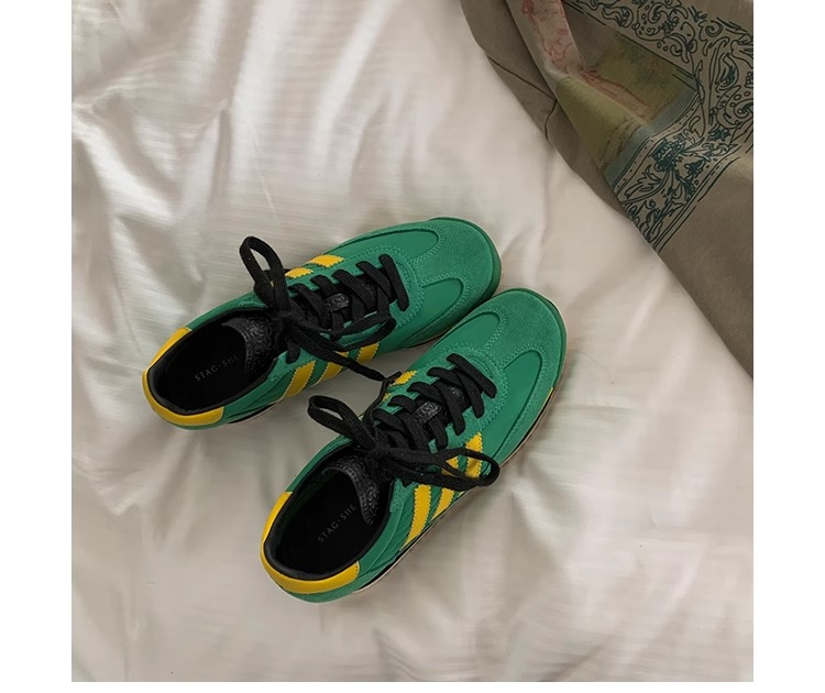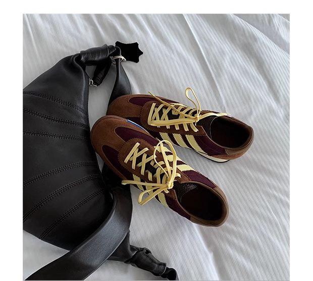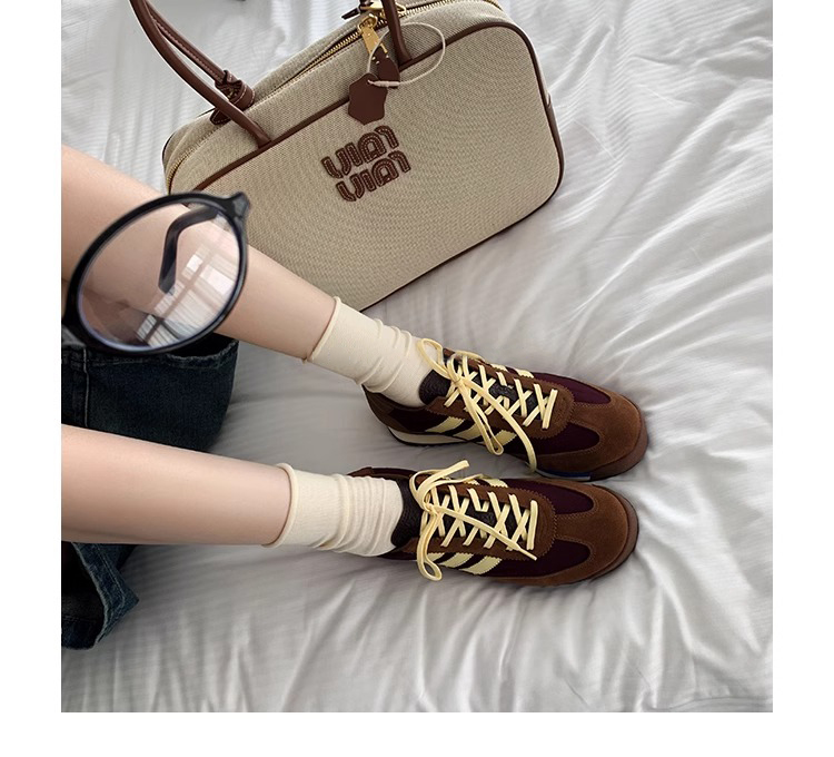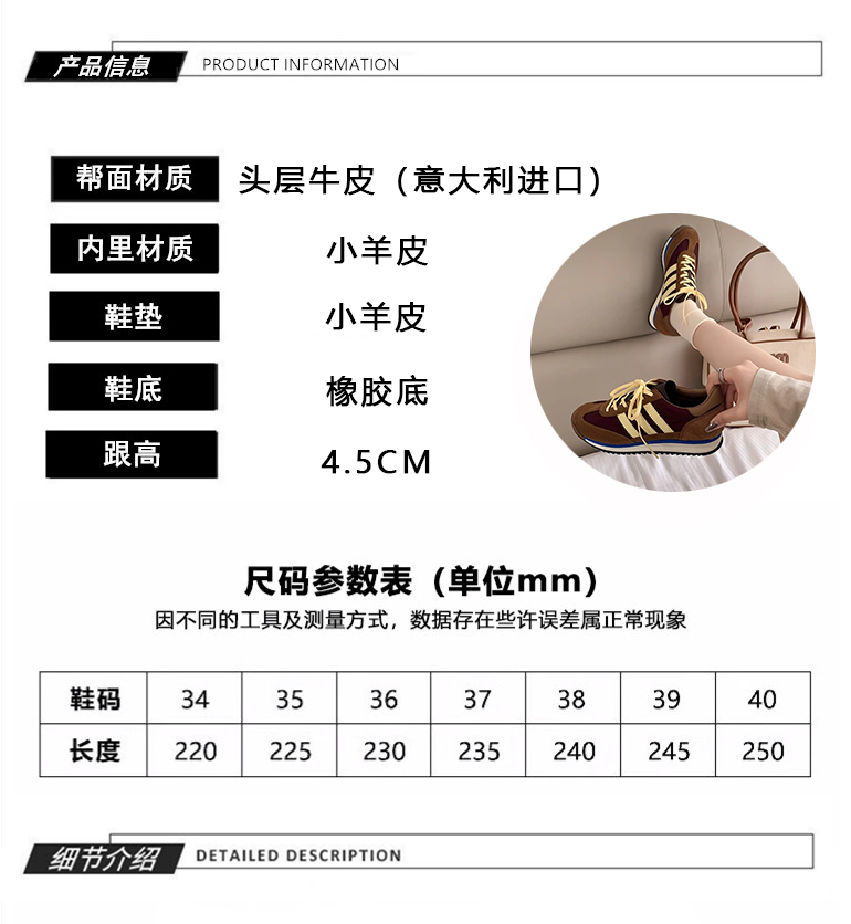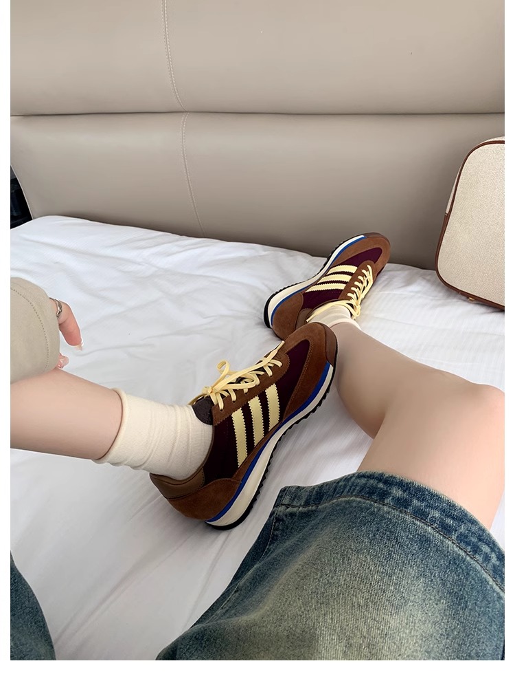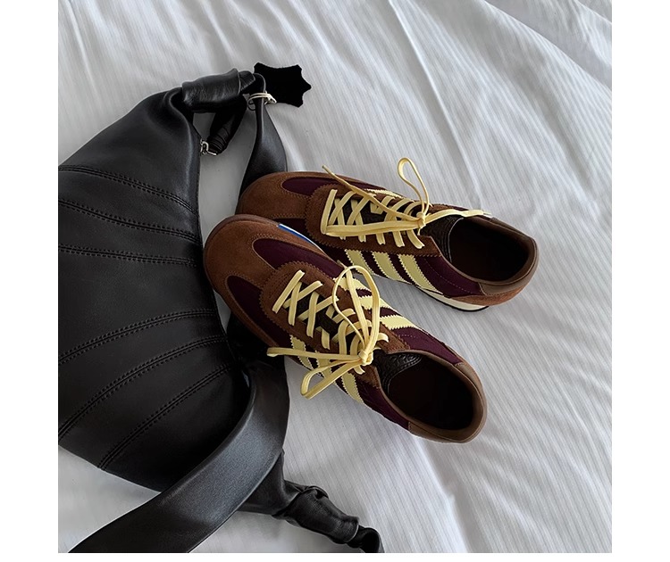 Sanli Retro Thick-Soled Height-Increasing German Training Shoes for Women 2025 New Round-Toe Lace-Up Suede Casual Sneakers