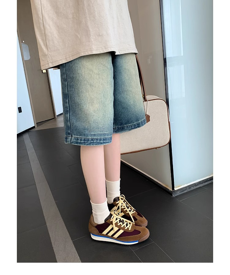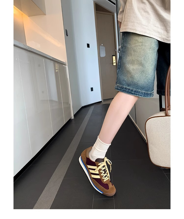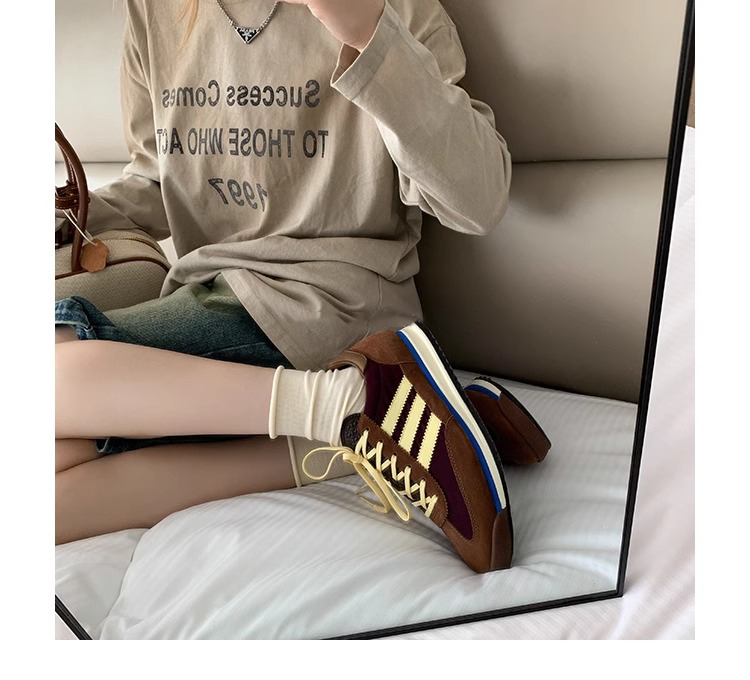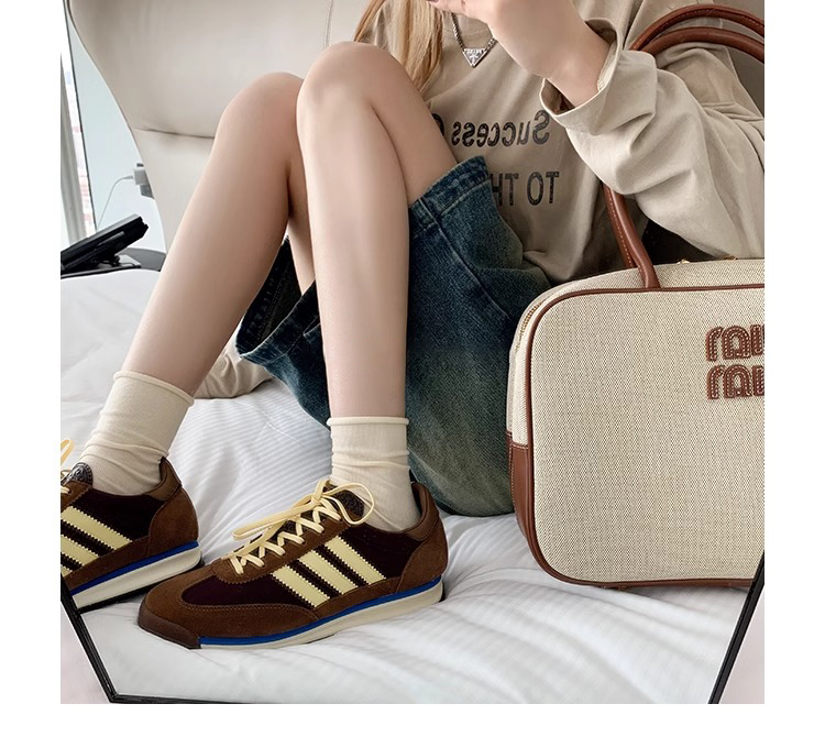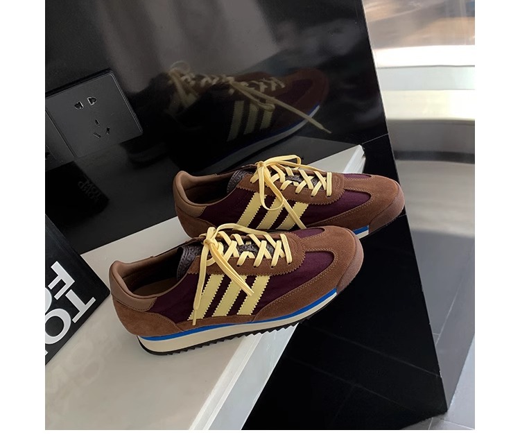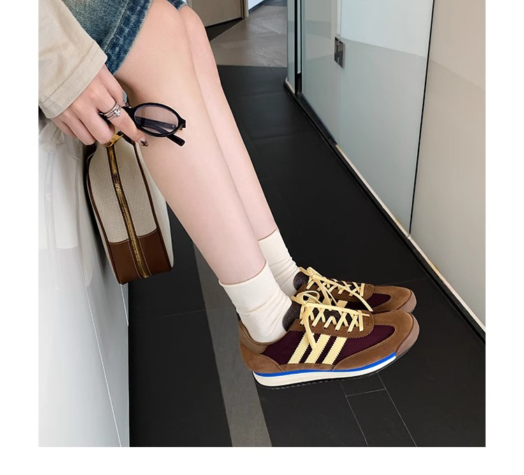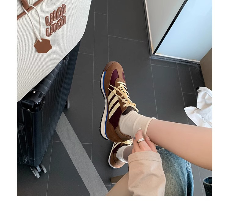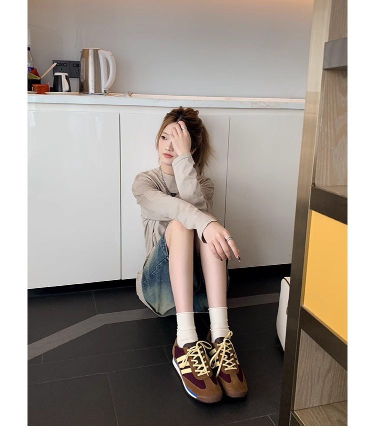 Sanli Retro Thick-Soled Height-Increasing German Training Shoes for Women 2025 New Round-Toe Lace-Up Suede Casual Sneakers