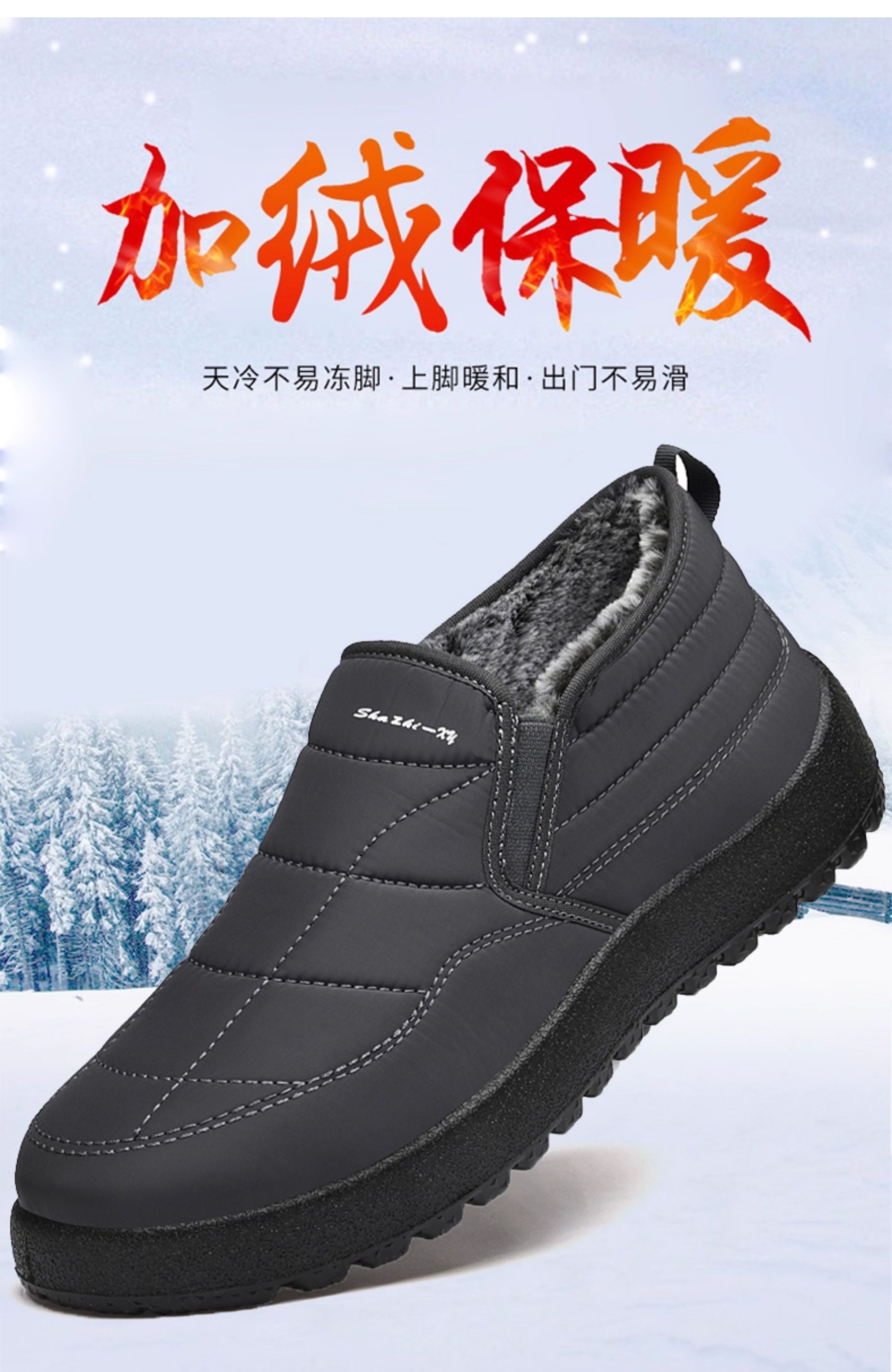 Old Beijing Cloth Shoes for Men, Winter Fleece-Lined, Non-Slip, Elderly Cotton Shoes, Casual, Warm, Thickened, Middle-Aged and Elderly Dad Shoes