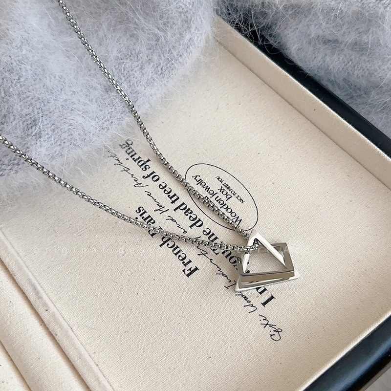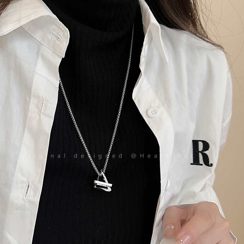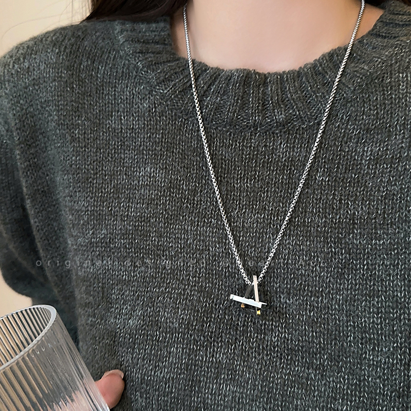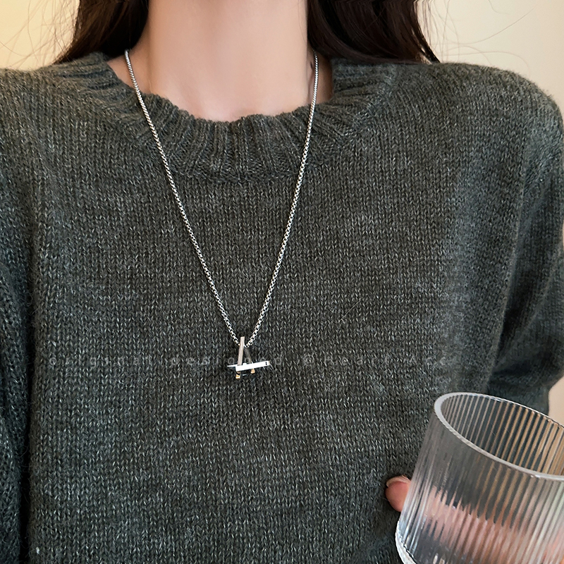 Silver Titanium Steel Long Pendant Necklace for Women, Unisex Decorative Sweater Chain Accessory, Men's Light Luxury High-End Sweater Chain