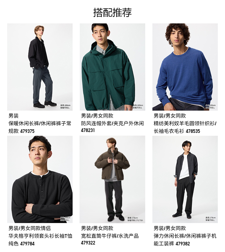 Uniqlo Men's Warm Casual Long Pants/Casual Pants Extended Length 25 Autumn and Winter New Style 479376