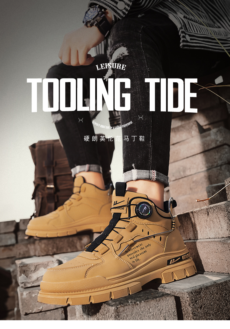 Pull Back Men's Shoes, Autumn 2025 New High-Top Shoes, Sports Men's Casual Workwear Martin Boots, Fleece-Lined Warm Cotton Shoes