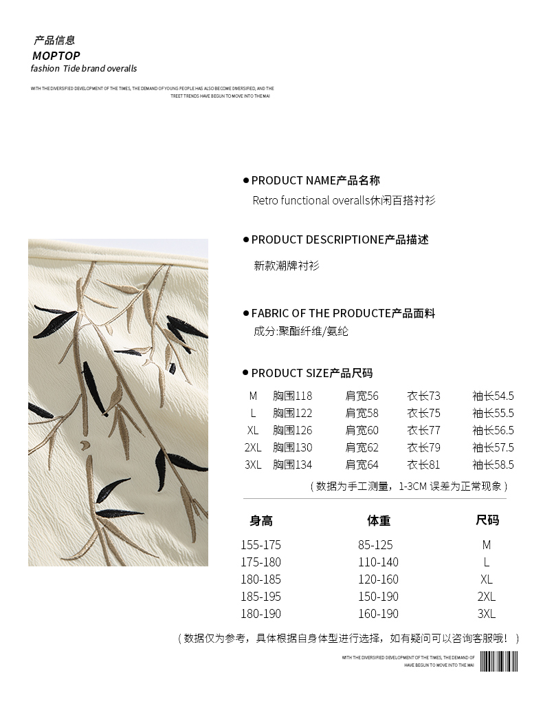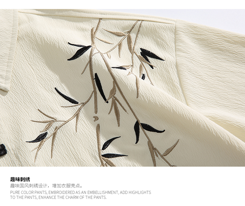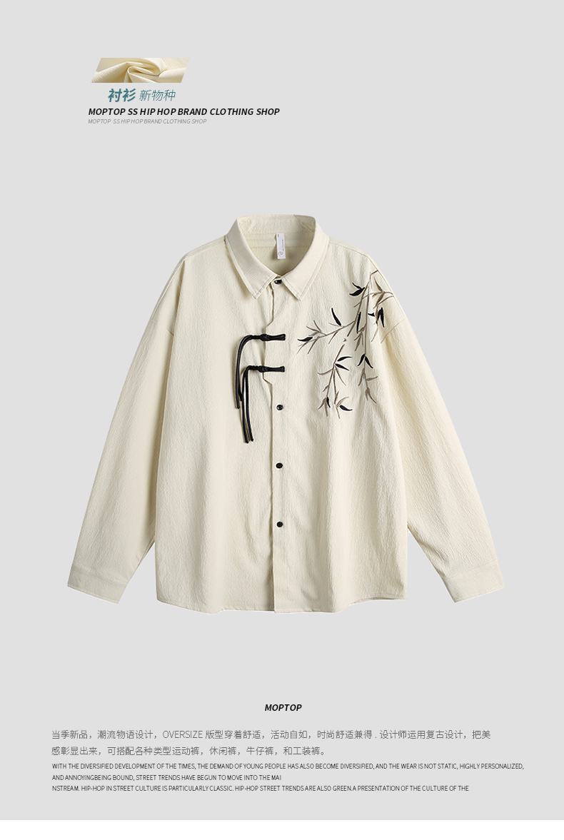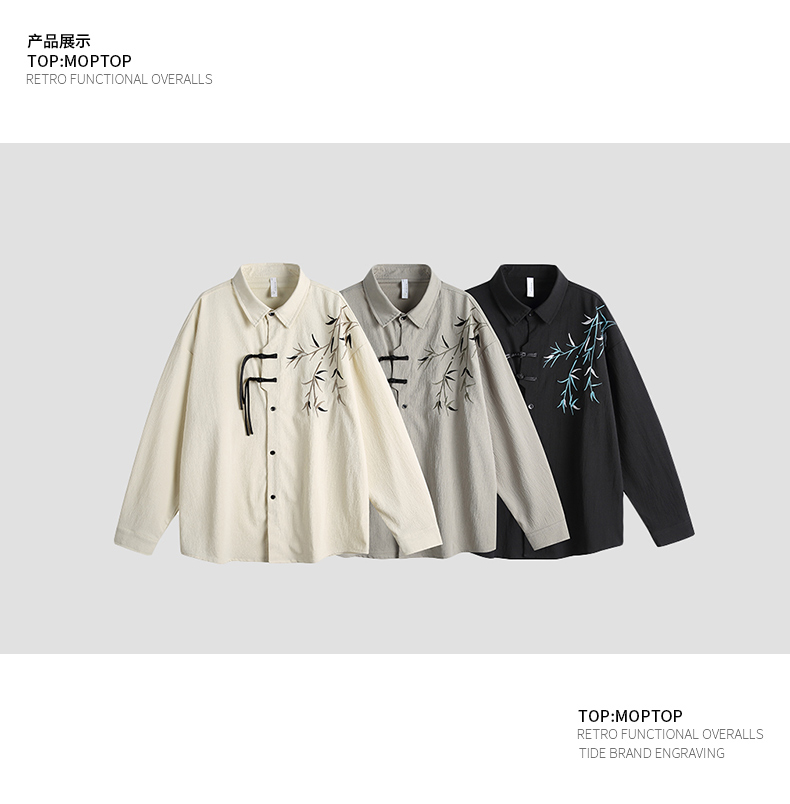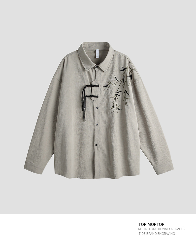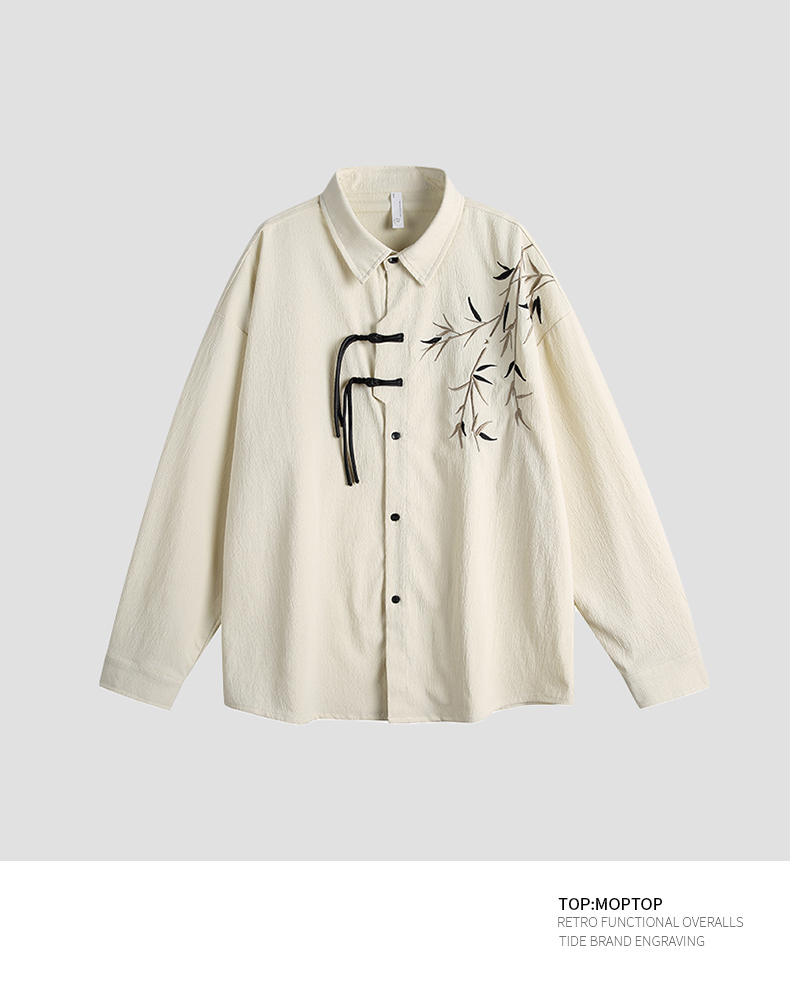 Mmoptop New Chinese Style Bamboo Leaf Creative Loose Long-Sleeved Shirt for Men, Spring Vintage National Style Couple Shirt Trend