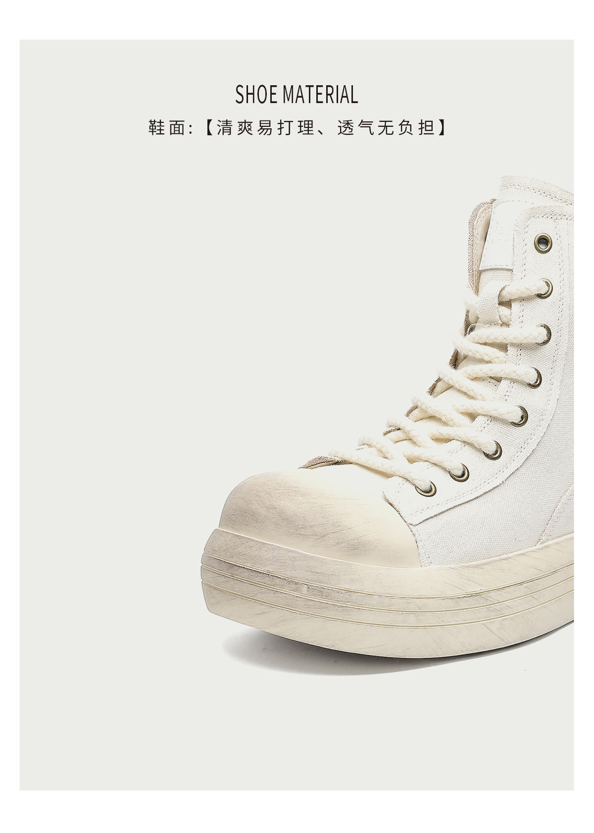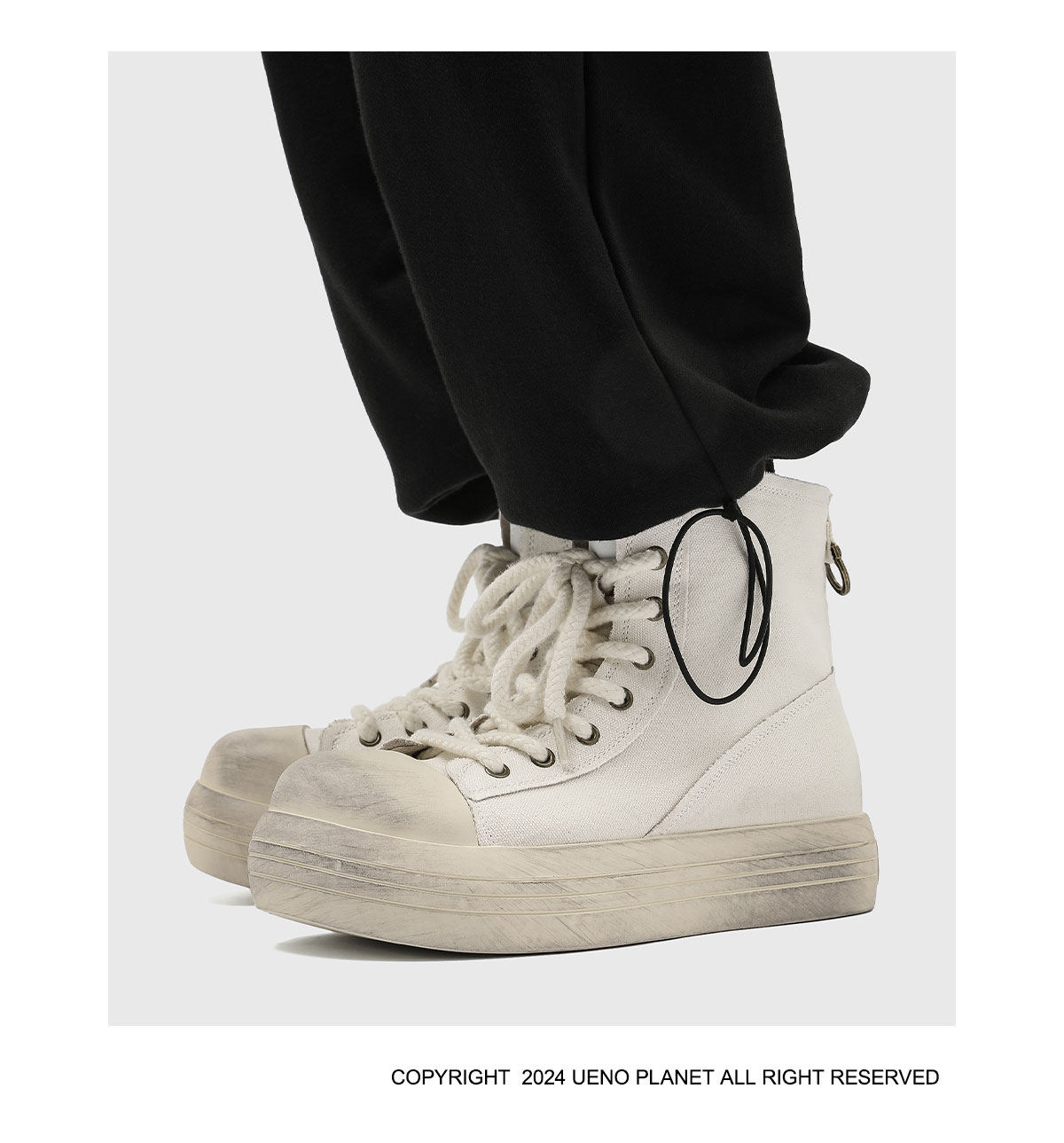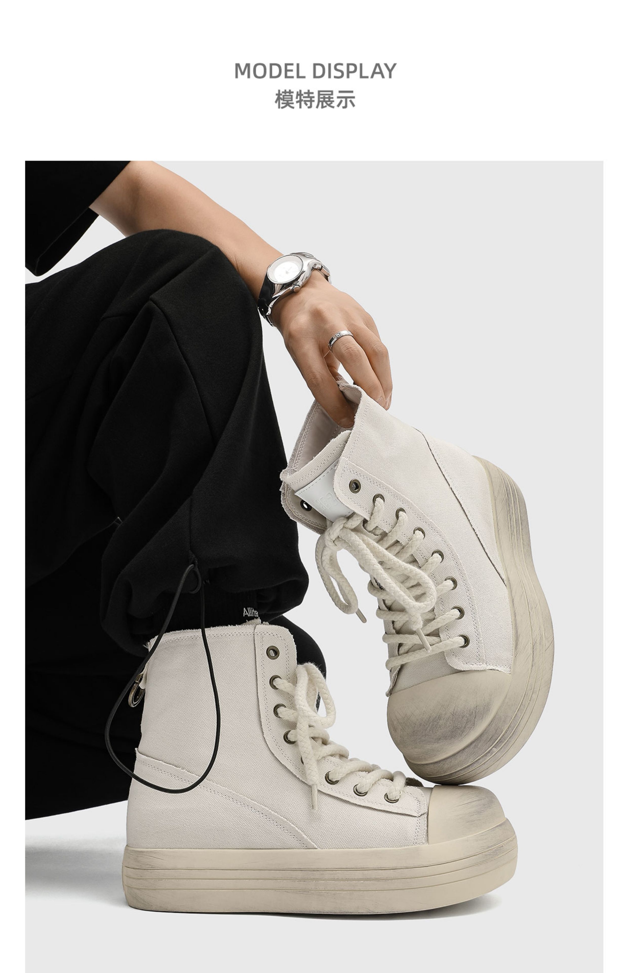 Vintage Distressed Canvas Shoes for Couples, High-Top Style, 2025 Summer Thick-Soled Height-Increasing Versatile Mid-Top Casual Sneakers
