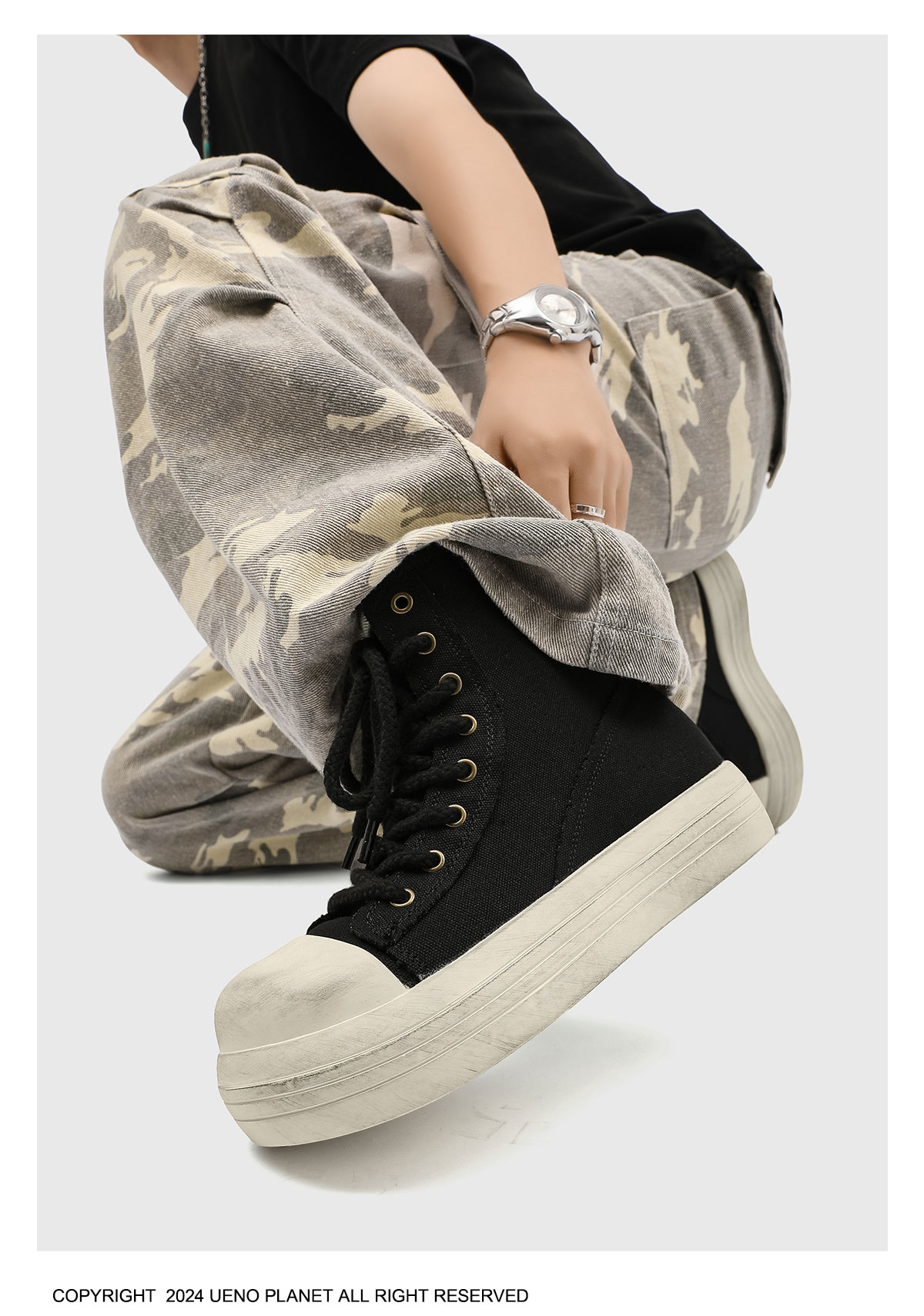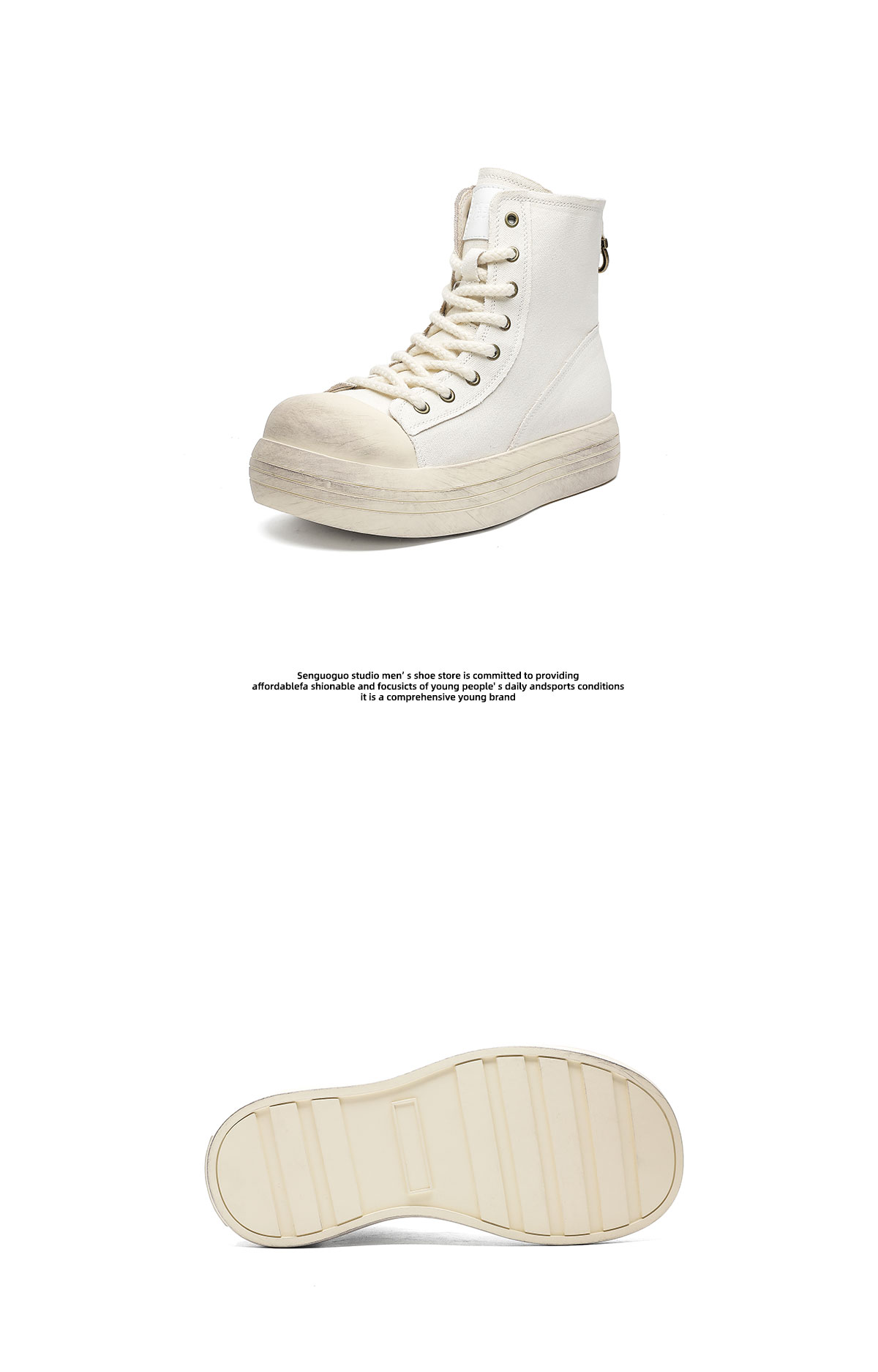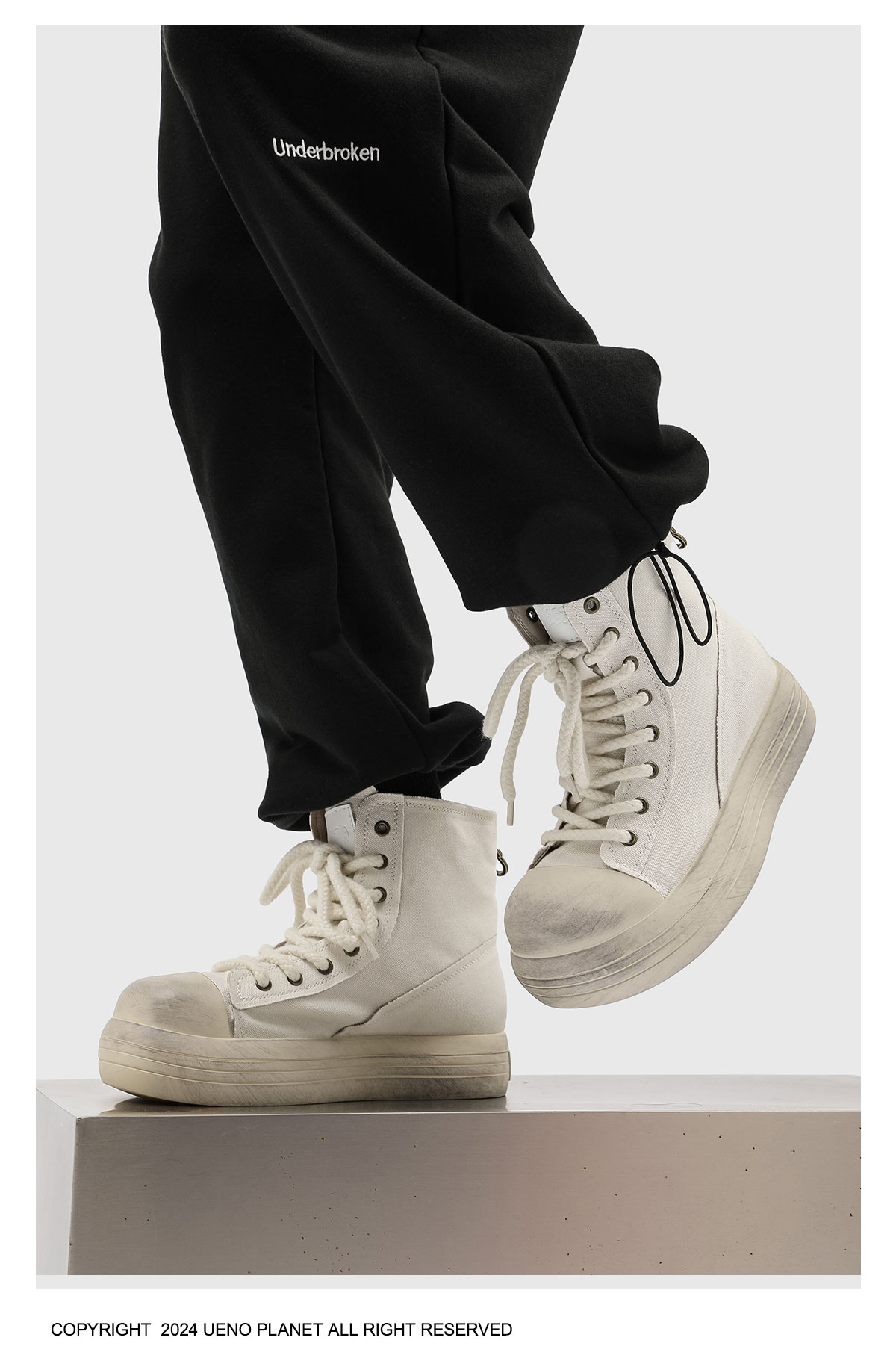 Vintage Distressed Canvas Shoes for Couples, High-Top Style, 2025 Summer Thick-Soled Height-Increasing Versatile Mid-Top Casual Sneakers
