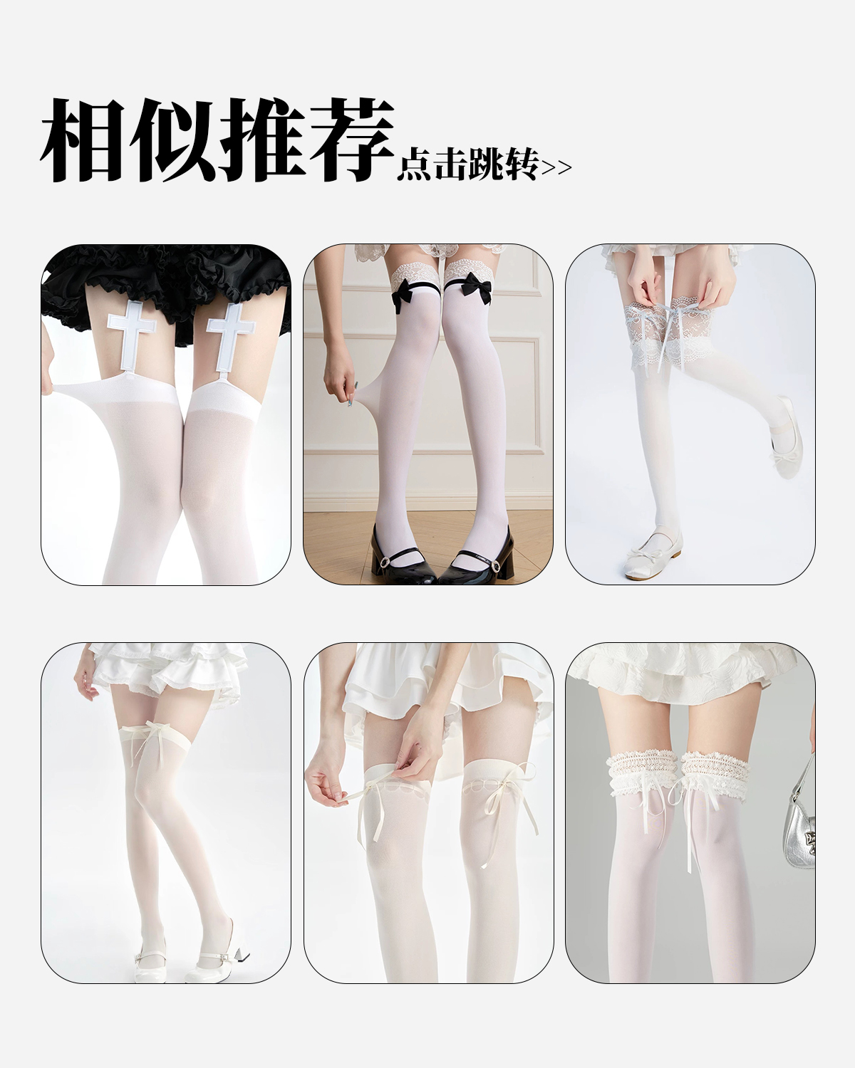 Ballet Style Jk Lace Trim Bow Over-The-Knee Socks for Women, Summer Thin Lolita Long Mid-Calf Thigh-High White Stockings