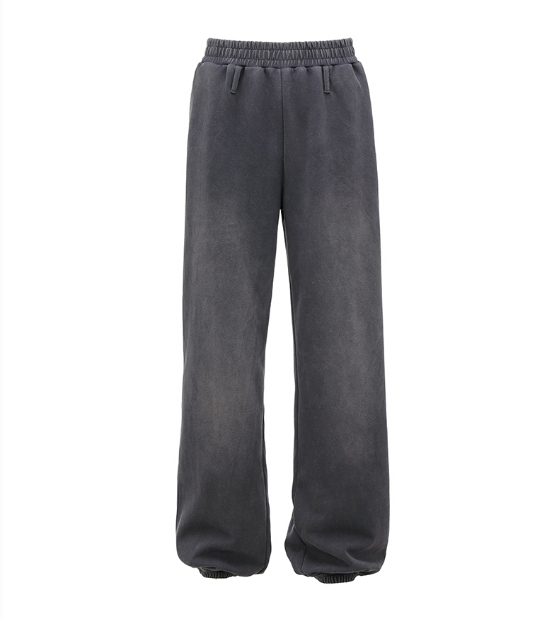 Practical Cuffed Stacked Sweatpants That Don'T Drag on the Floor, with a Faded, Washed, and Naturally Distressed Finish, Made with Fabric Suitable for All Seasons