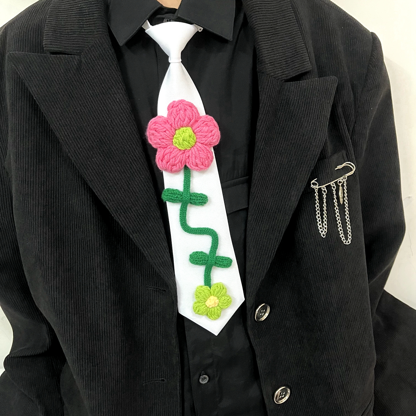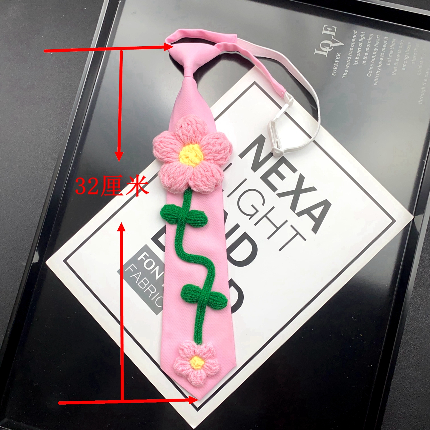 Korean Style Tie for Women, Handmade Floral, Artistic, Color-Blocking, Unique, Sweet and Cool, Preppy Style, Pink, No Need to Tie, Niche Photography Accessory