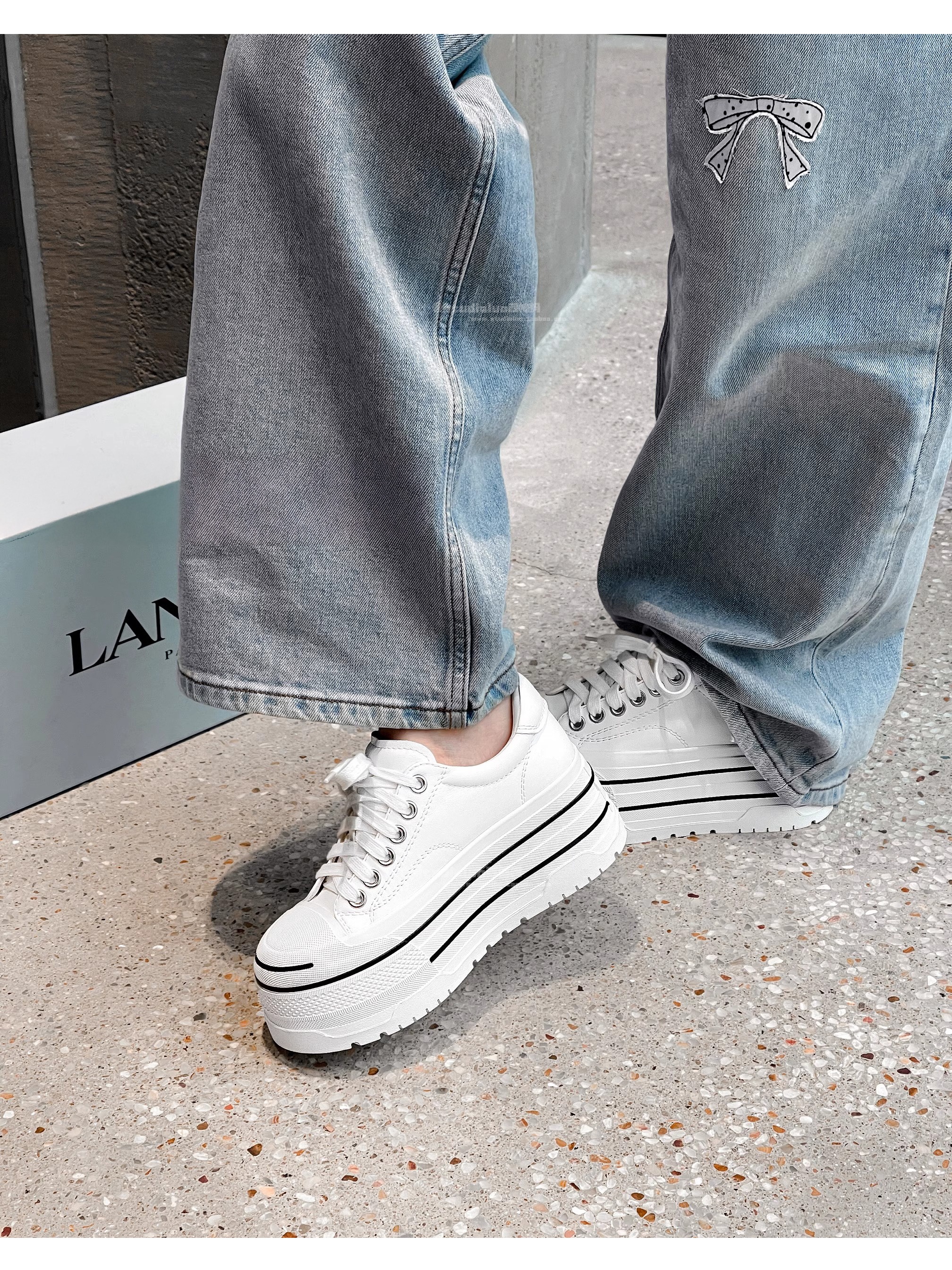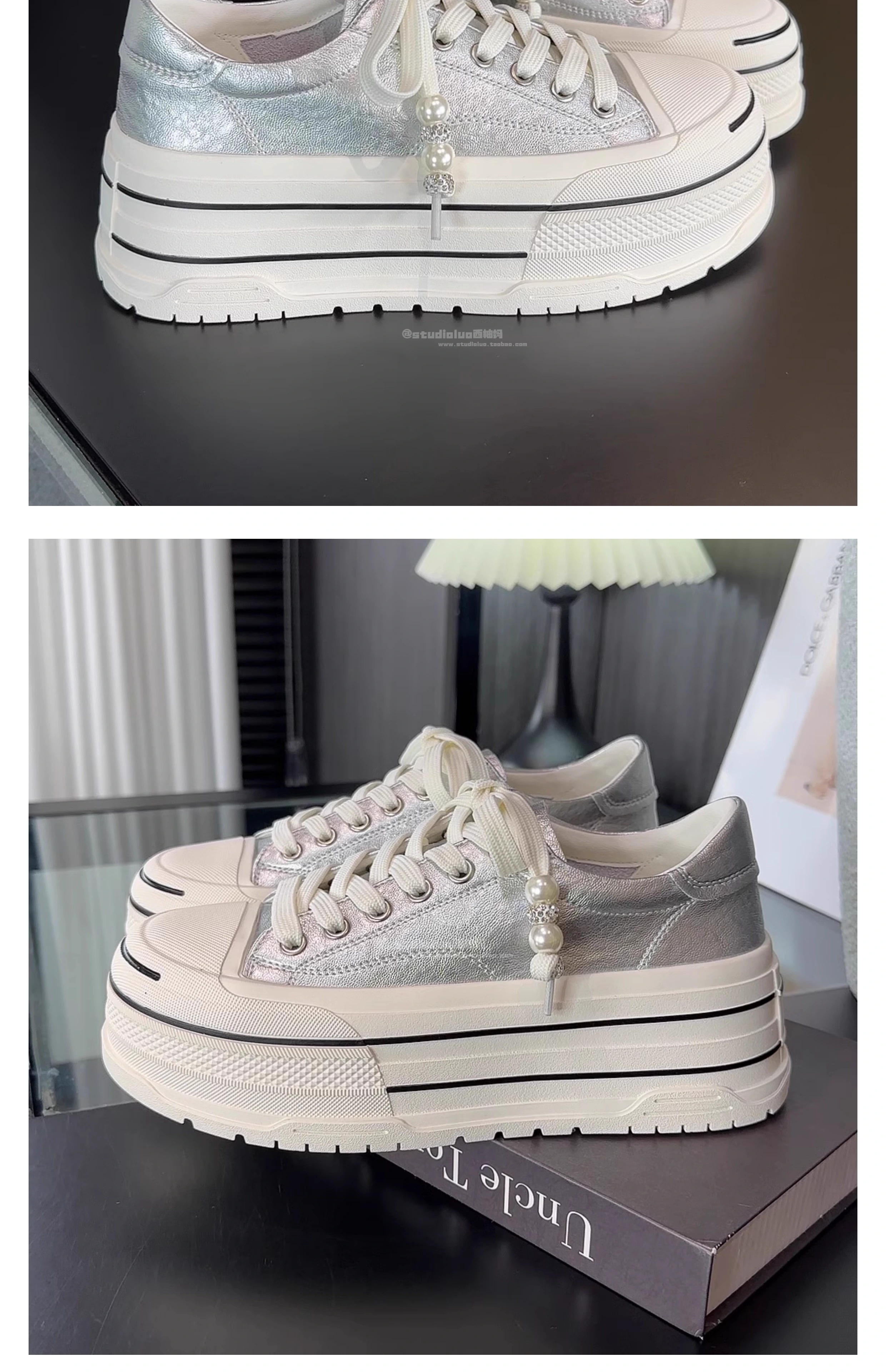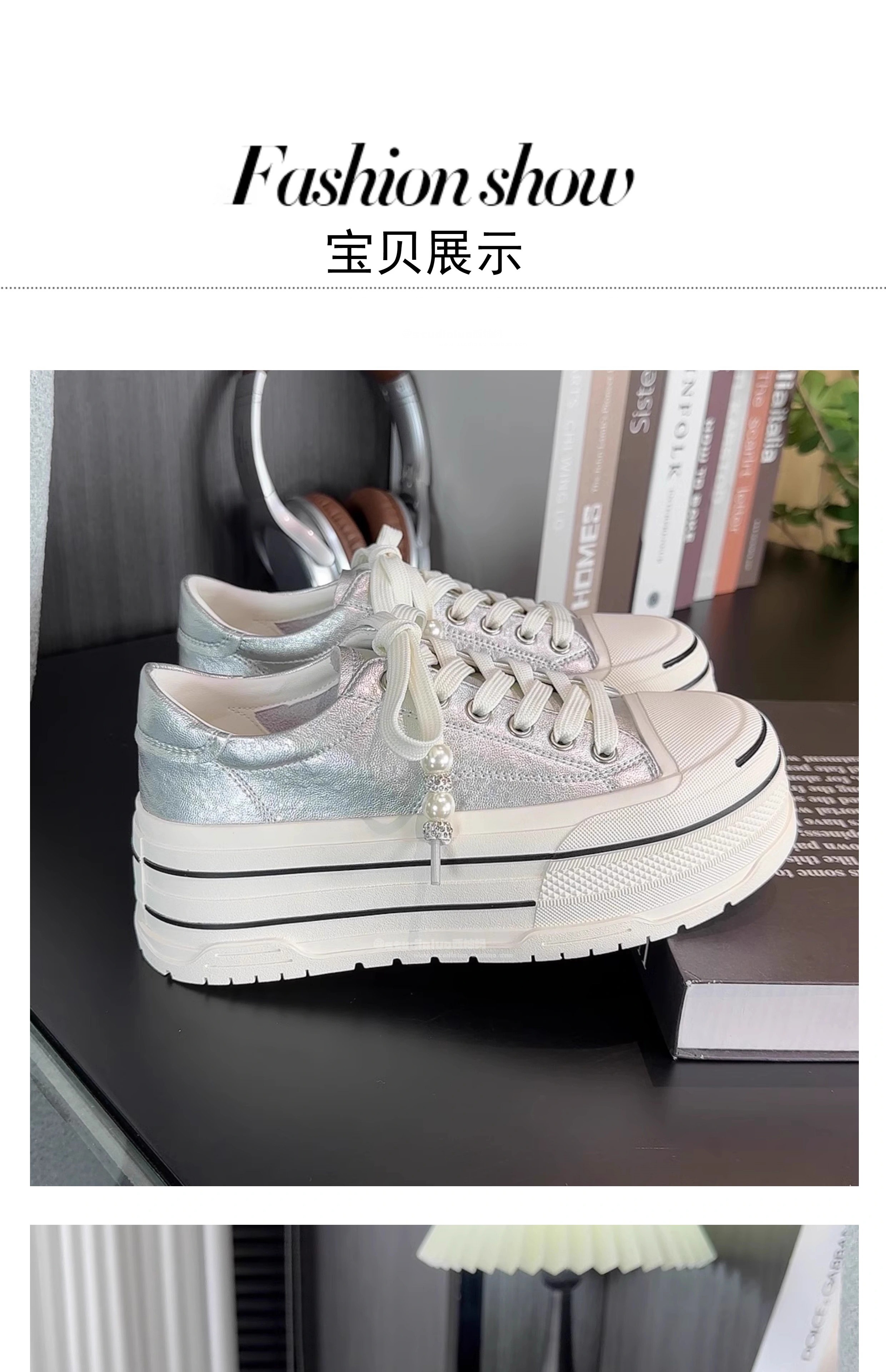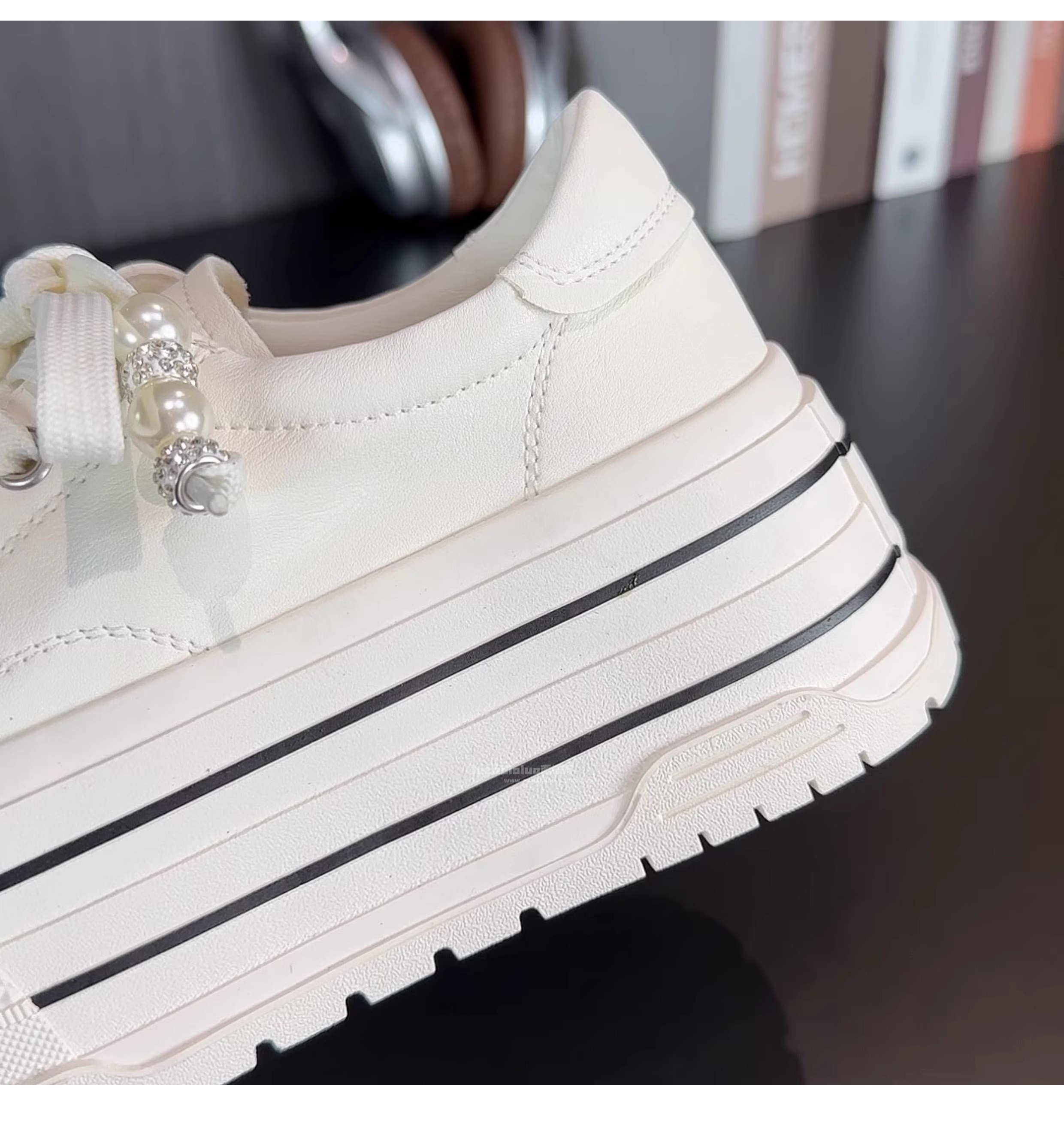 Hong Kong Style Platform Thick-Soled White Sneakers for Women 2025 Spring/Summer New Versatile Sports Fashion Genuine Leather Casual Sneakers