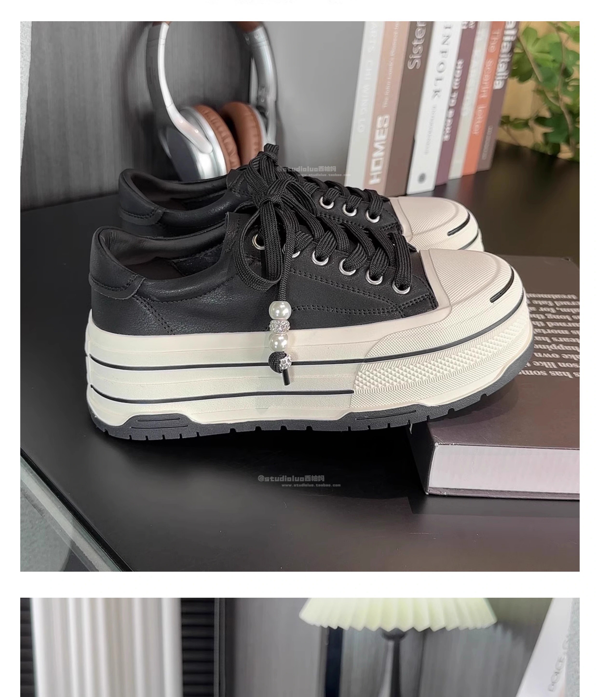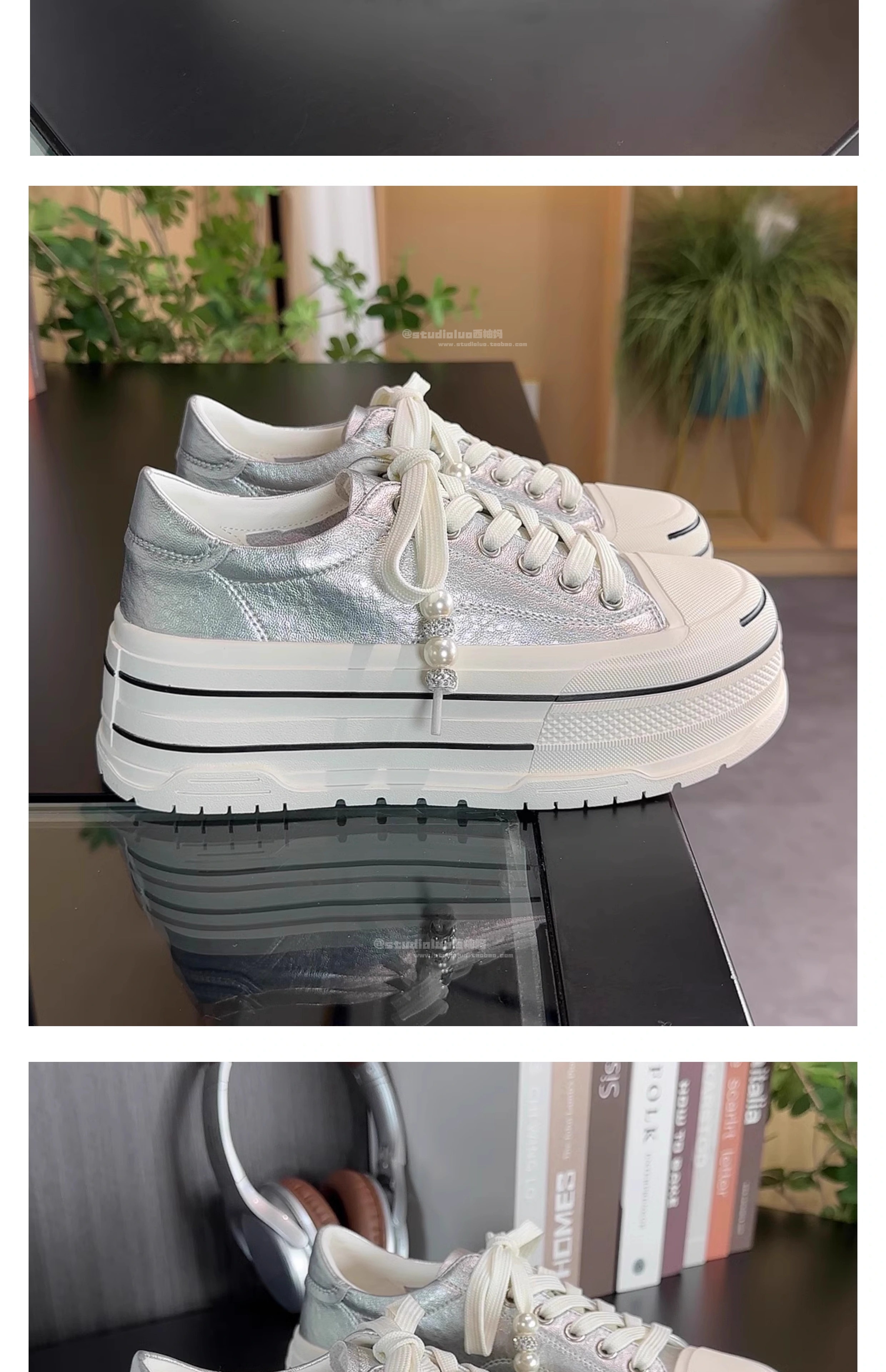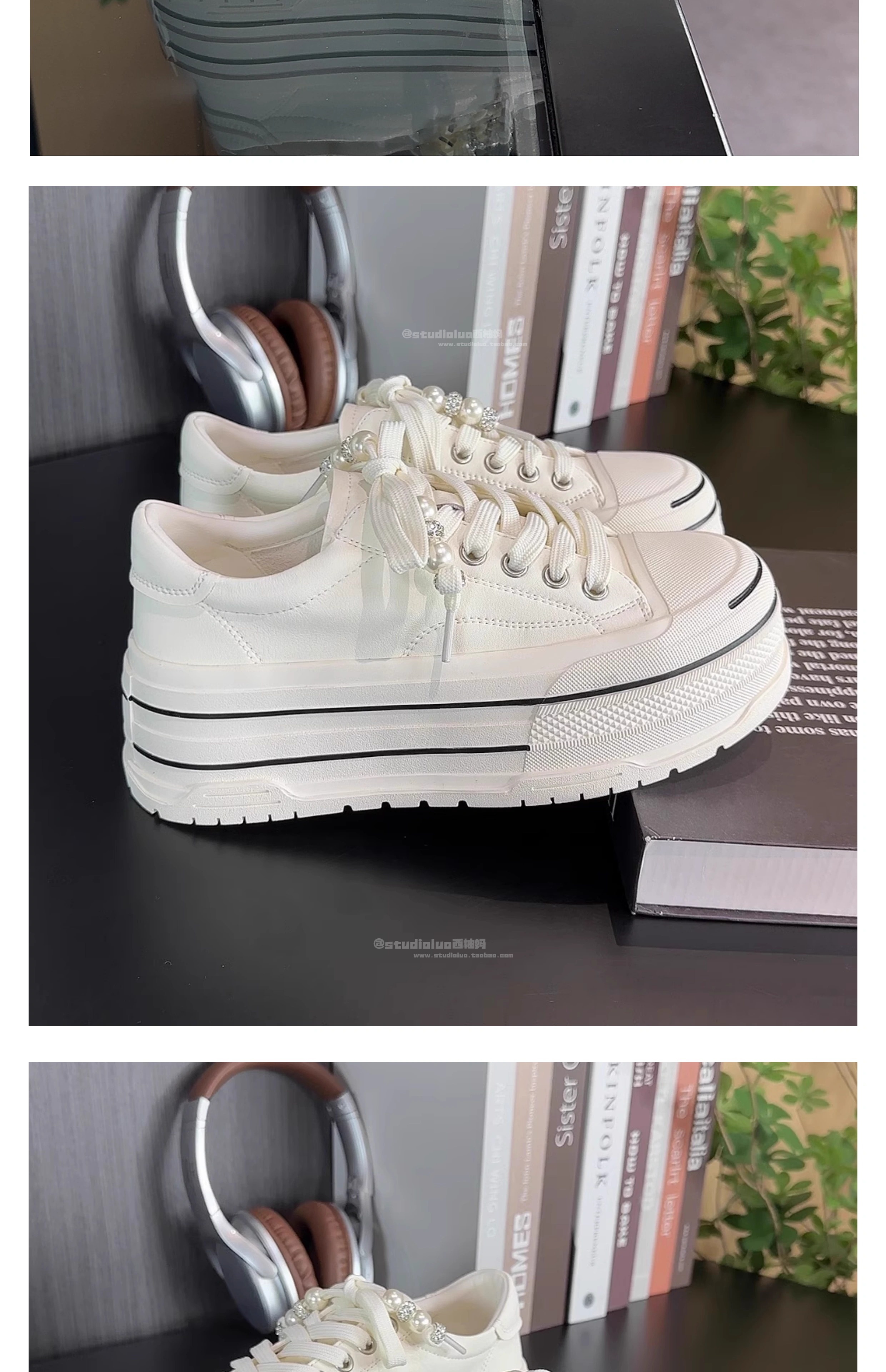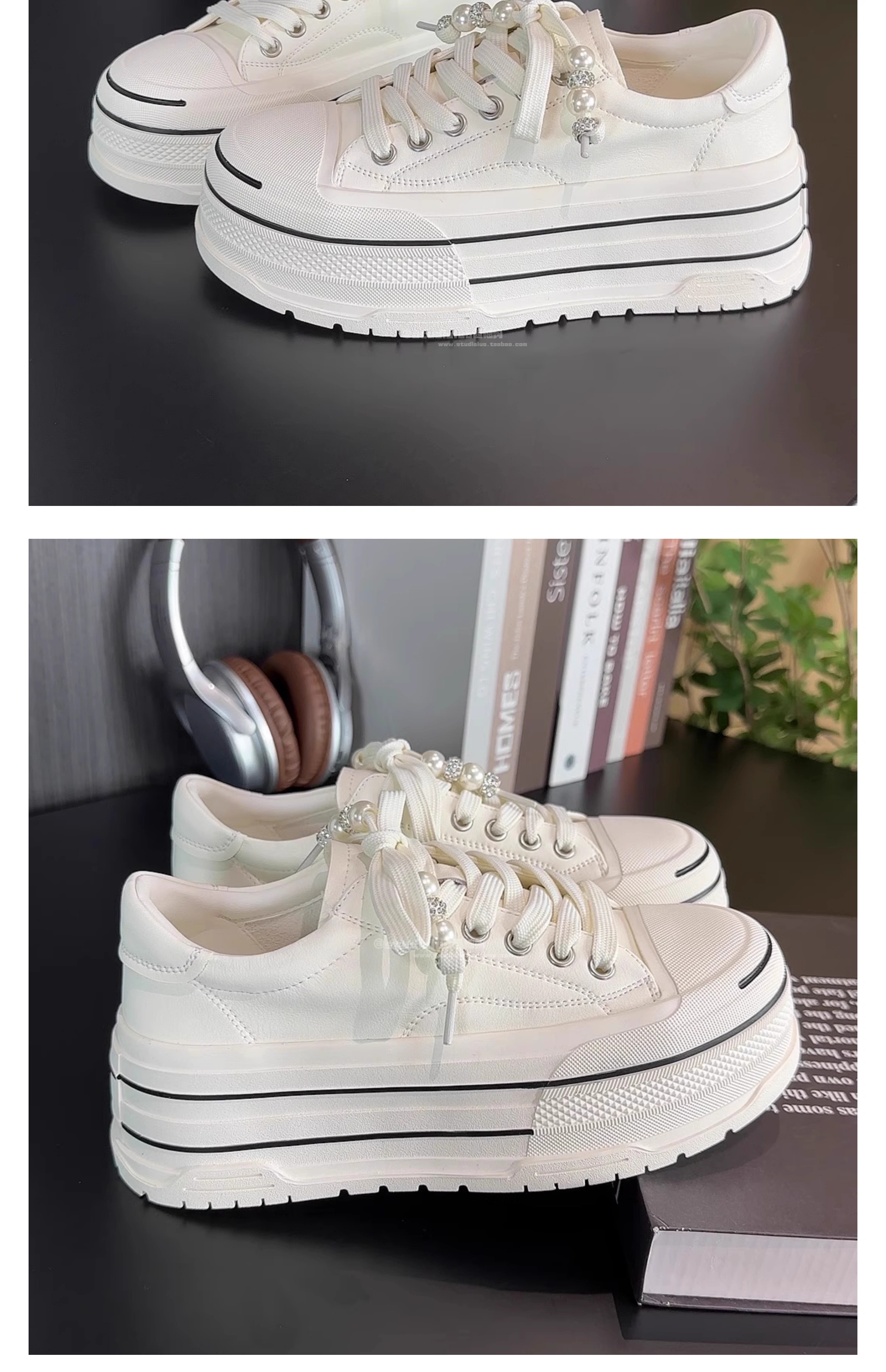 Hong Kong Style Platform Thick-Soled White Sneakers for Women 2025 Spring/Summer New Versatile Sports Fashion Genuine Leather Casual Sneakers