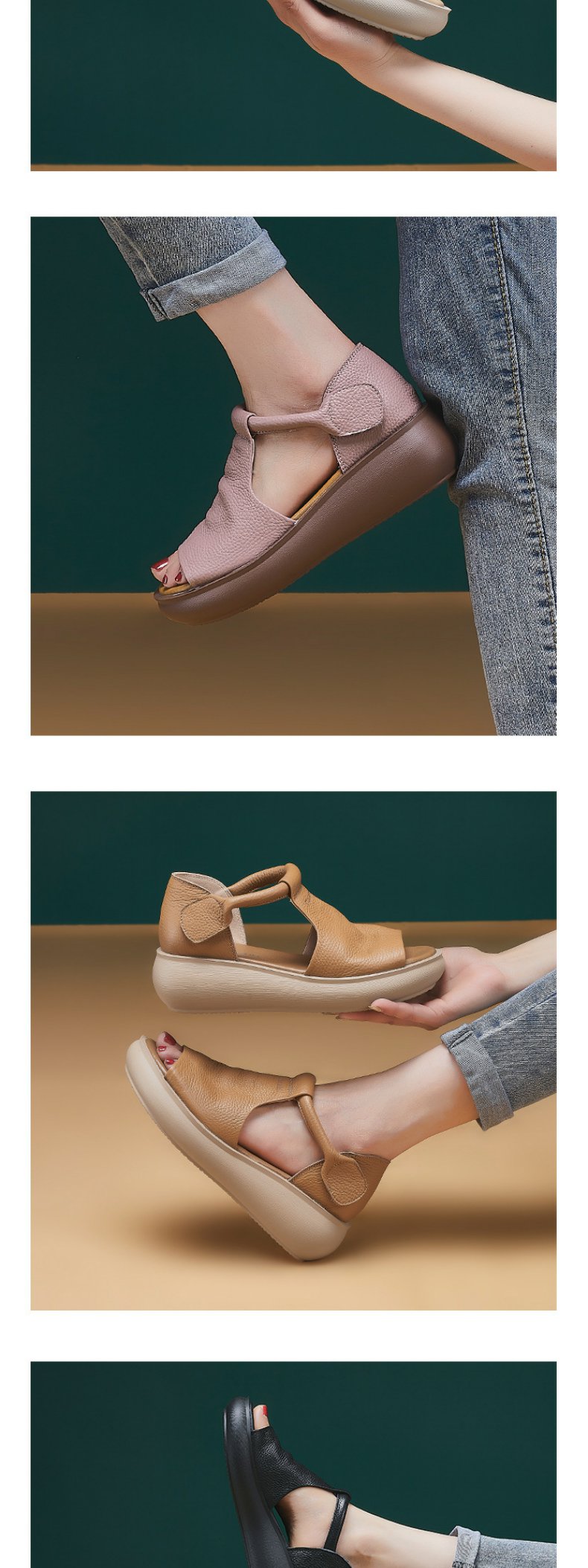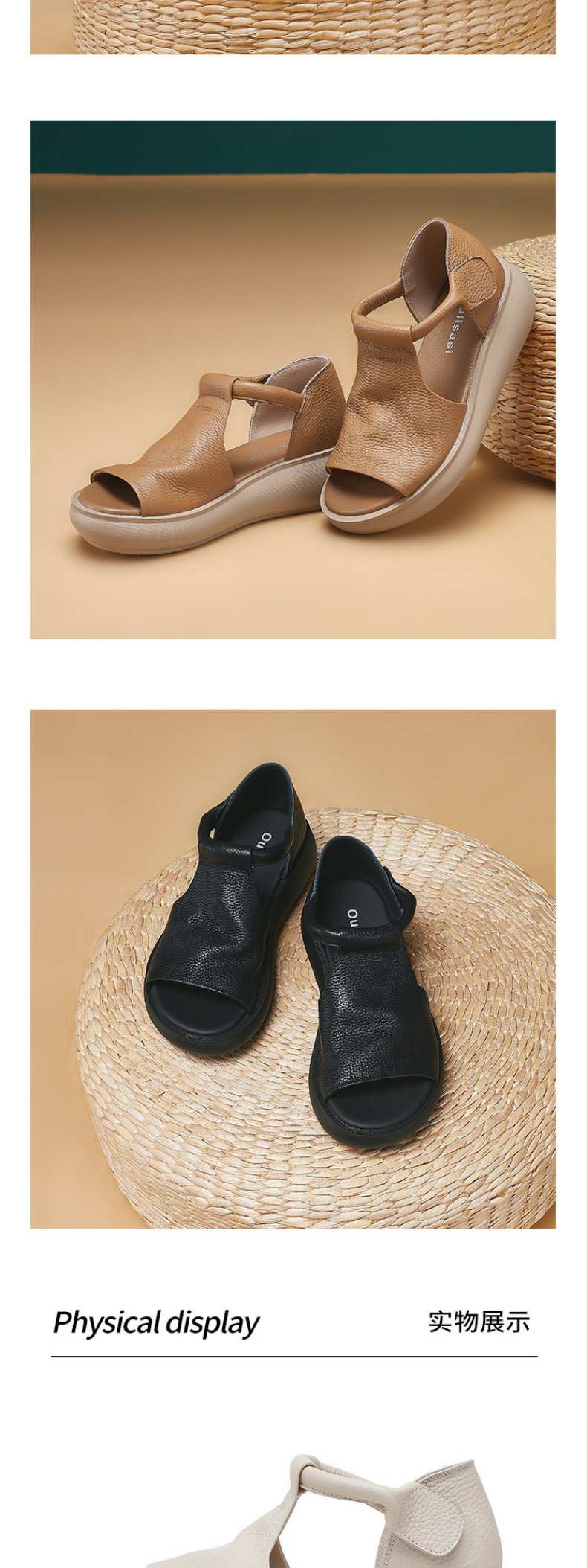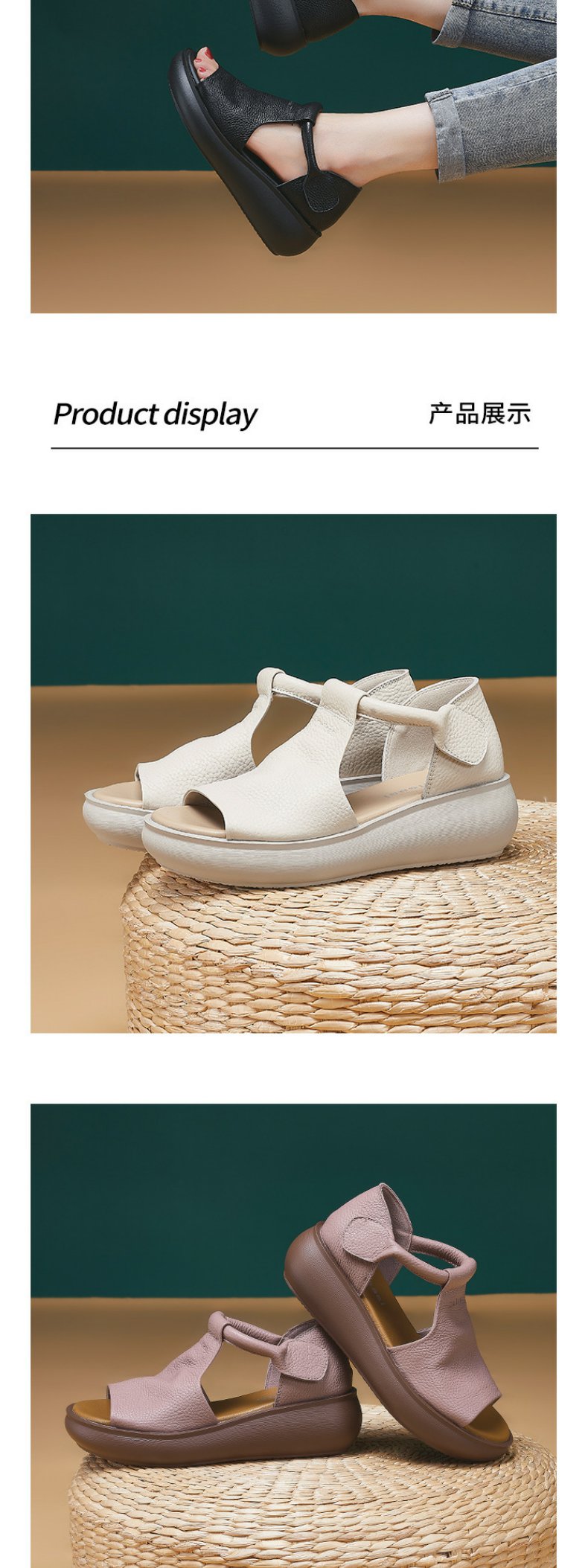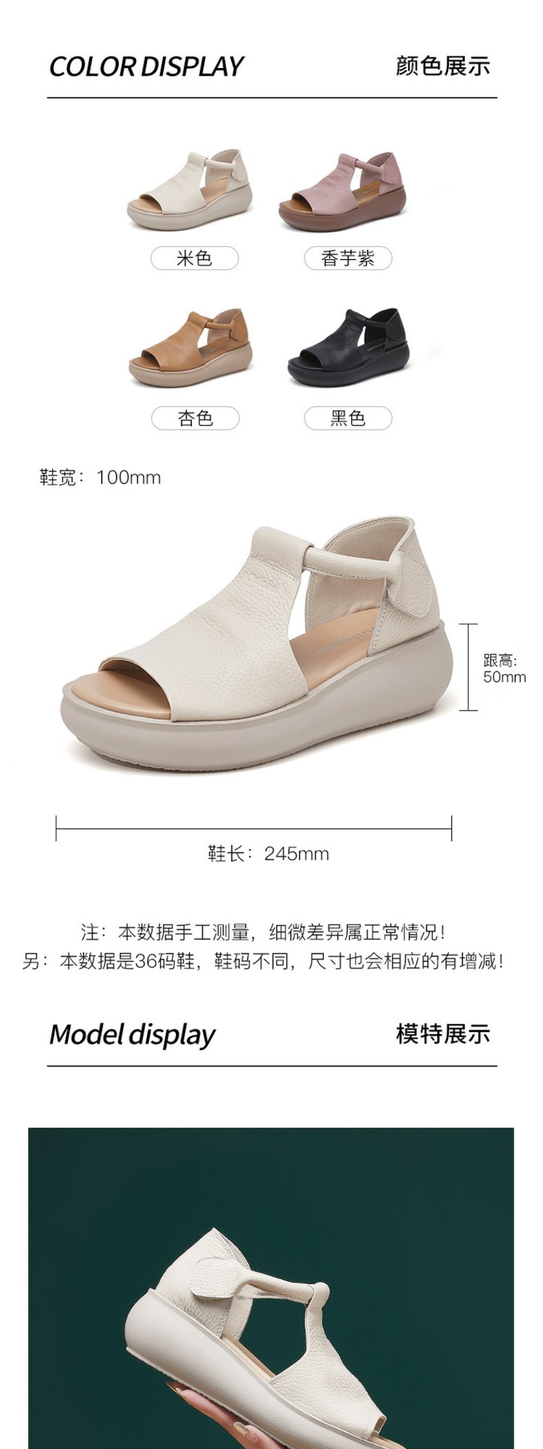 First-Layer Cowhide 2025 Summer New Style Fish-Mouth Thick-Soled Wedge Casual Lightweight Genuine Leather Velcro Sandals for Women