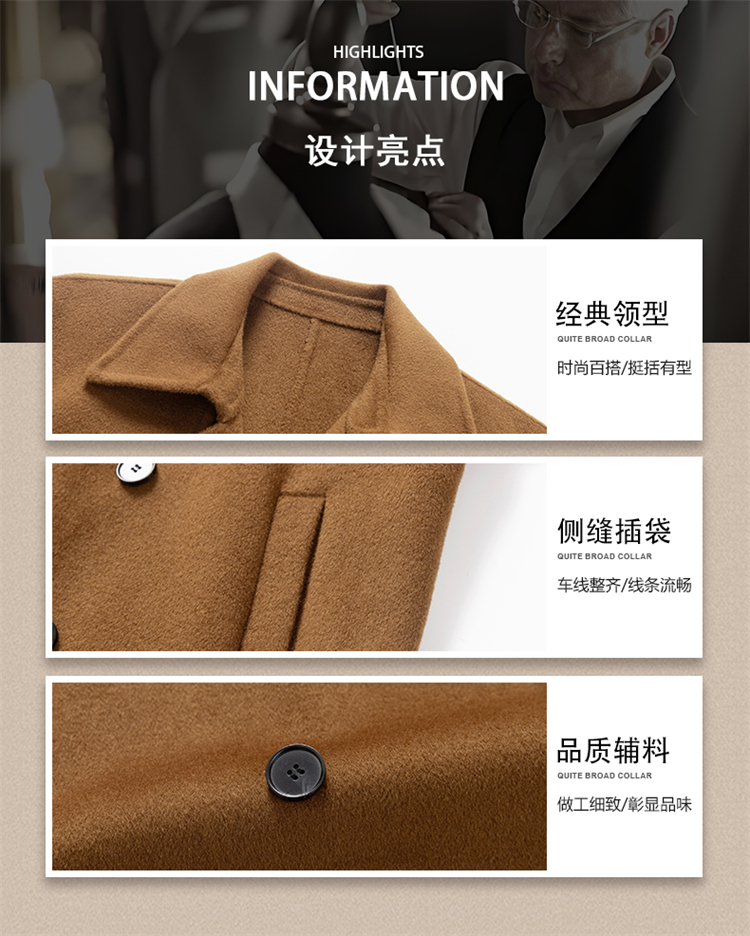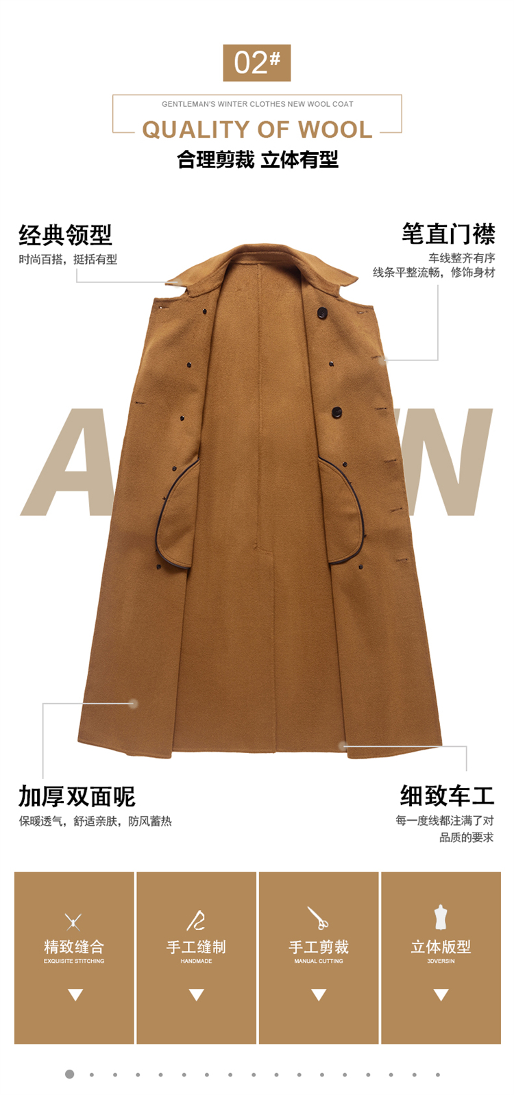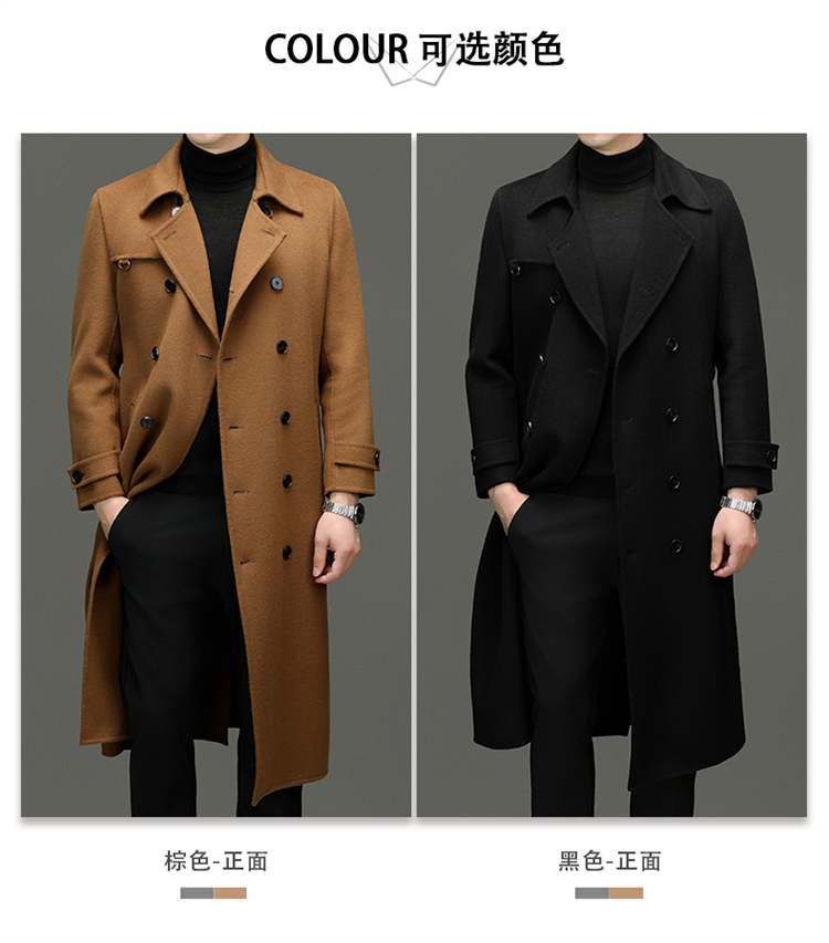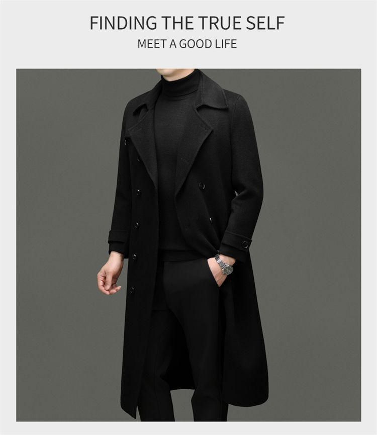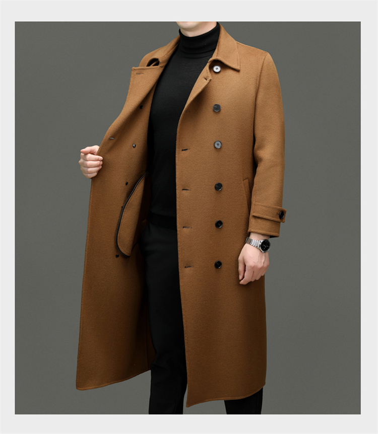 Paul 100% Wool Winter Thickened Warm Double-Sided Woolen Coat Over-The-Knee Long Business Men's Trench Coat Jacket