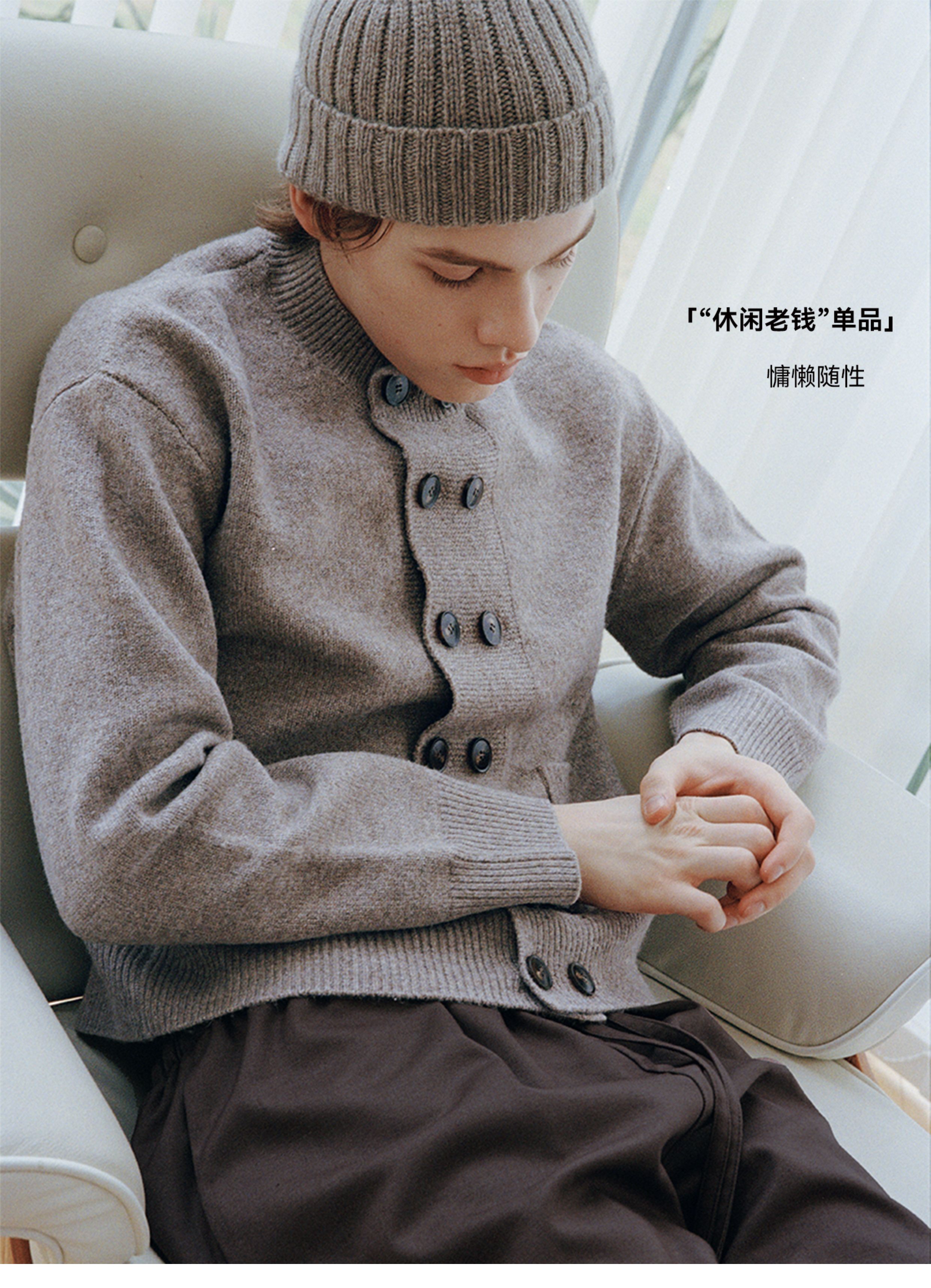 Vlabmade Retro Old Money Double-Breasted Velvet Sweater * Wool Blend Elegant Lazy Round Neck Knitted Cardigan
