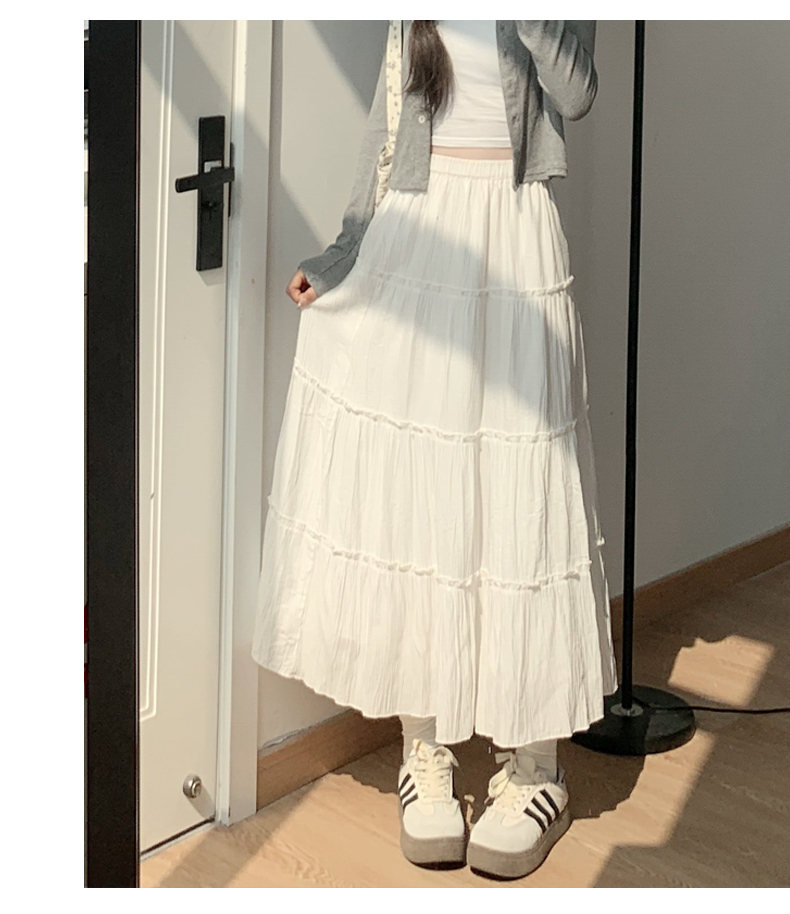 White Midi Skirt for Women, Summer 2025 New High-Waisted Spring and Autumn A-Line Ballet Style Puffy Tiered Skirt