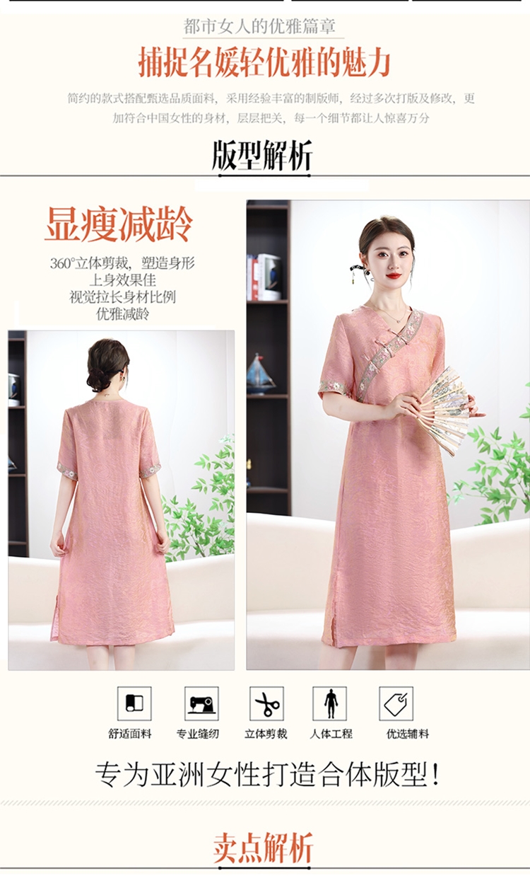 New Chinoiserie National Style Jacquard Versatile Dress for Women 2025 Summer New Mom Loose Slimming Look Mid-Length Skirt