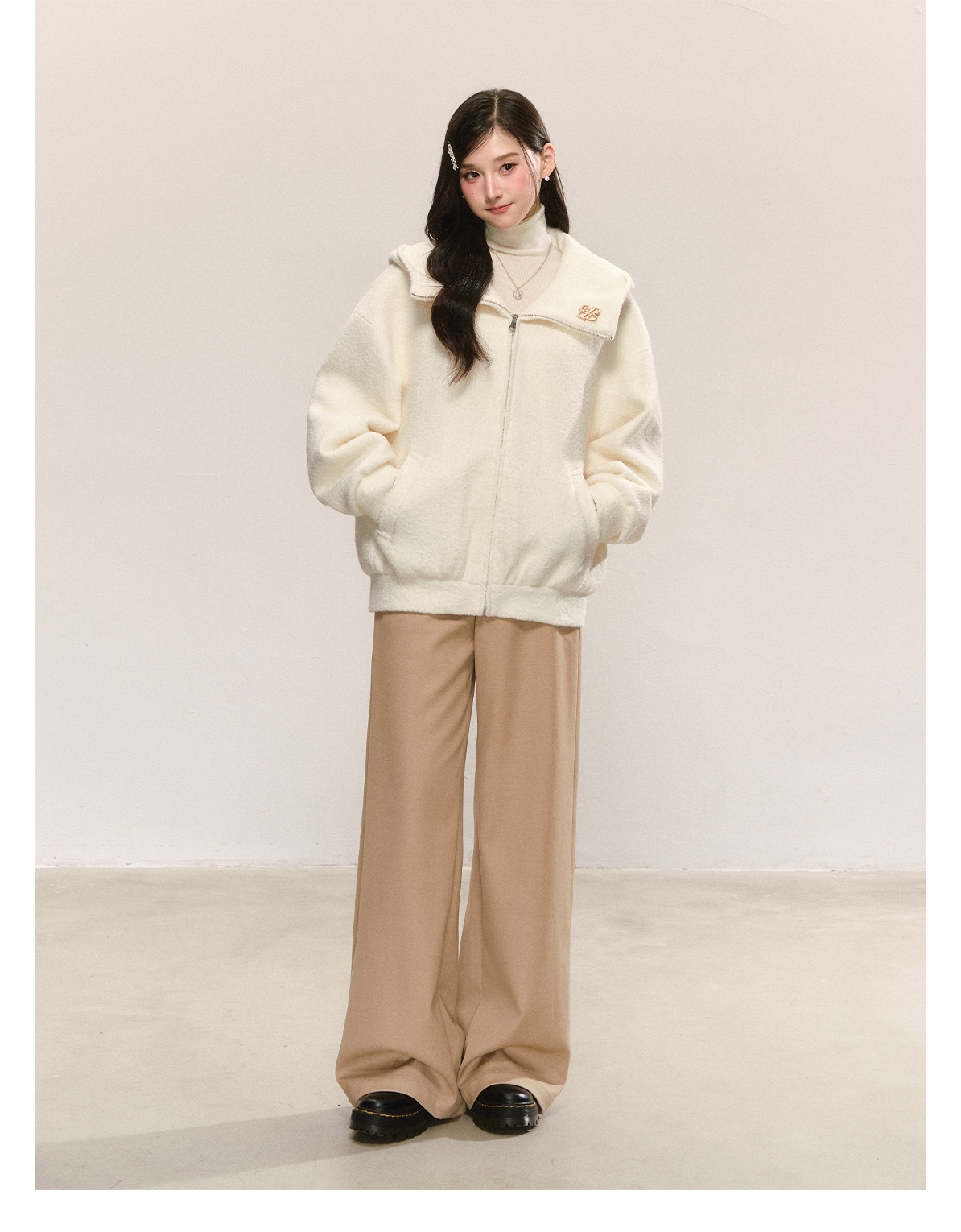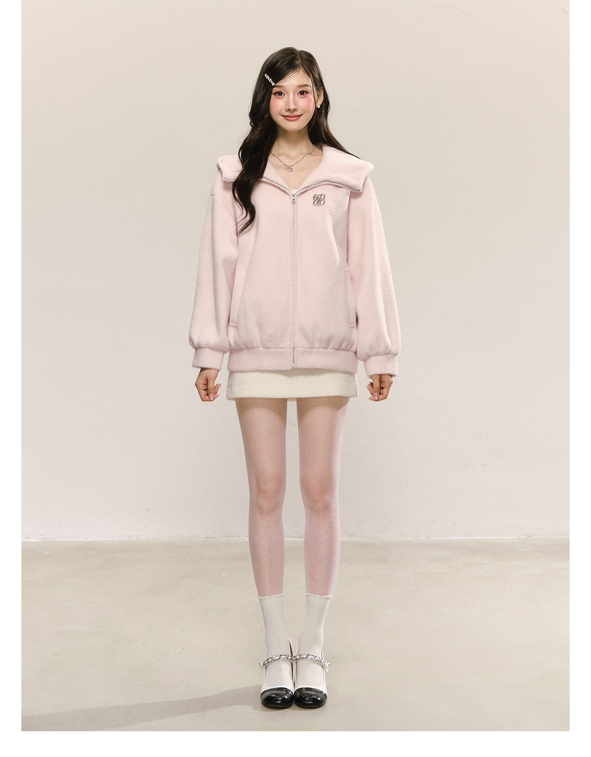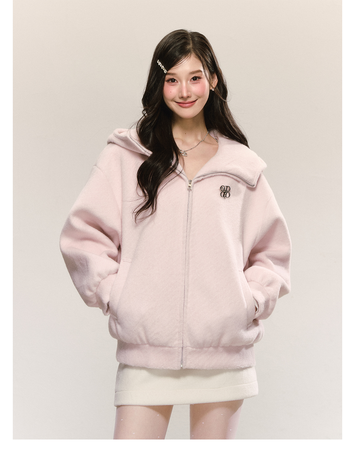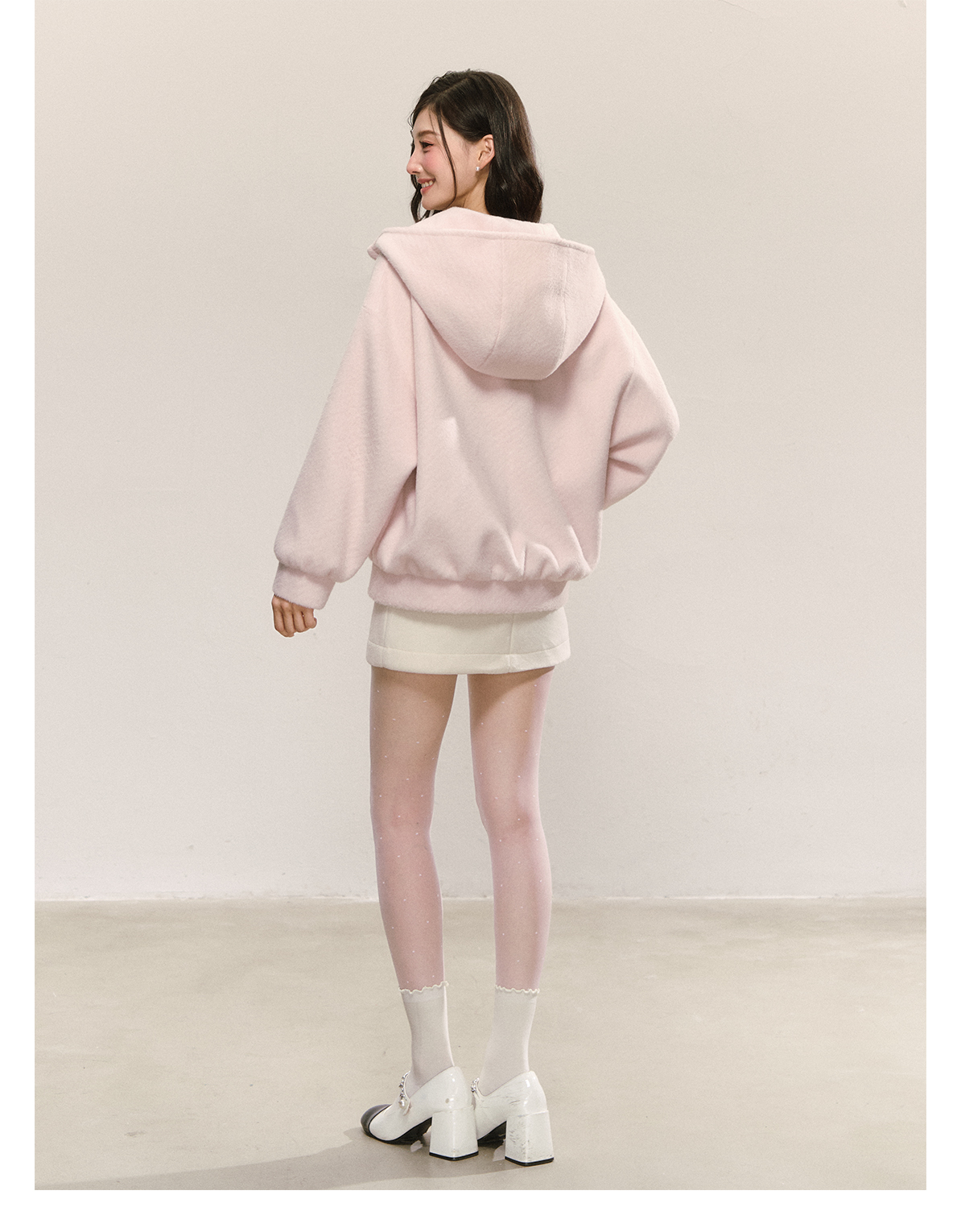Qdqd Chanel-Style White Looped Wool Coat, Sweet and Girly, Preppy Style, Large Lapel, Hooded Long-Sleeve Top