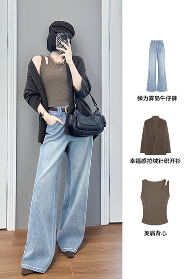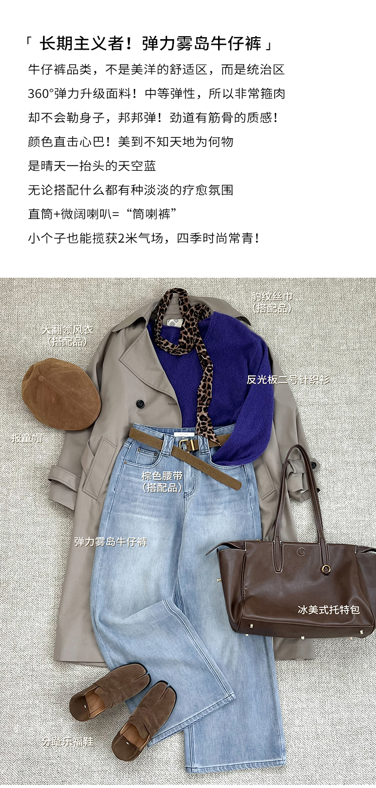 Meiyang Stretch Mist Island Jeans Lycra Four-Way Stretch Flared Pants [Small 60 in Stock]-Monday