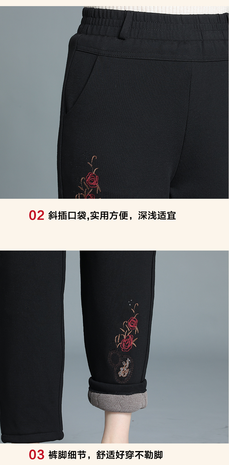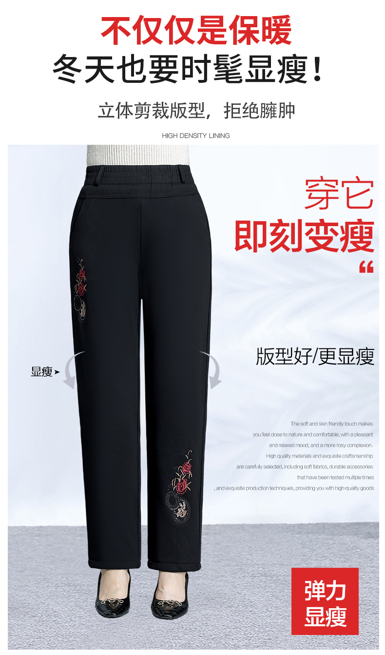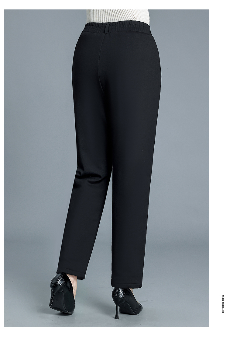 Romon's Mother's Autumn and Winter Silk Wool Pants, Fleece-Lined and Thickened, Elderly Women's Winter Warm Straight-Leg Cotton Pants for Outer Wear