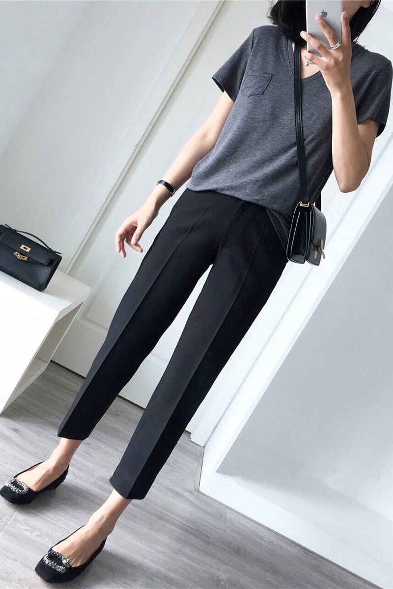 Women's Summer Cropped Suit Pants, Slimming Thin Casual Trousers, Plus Size Petite Summer Professional Cigarette Pants