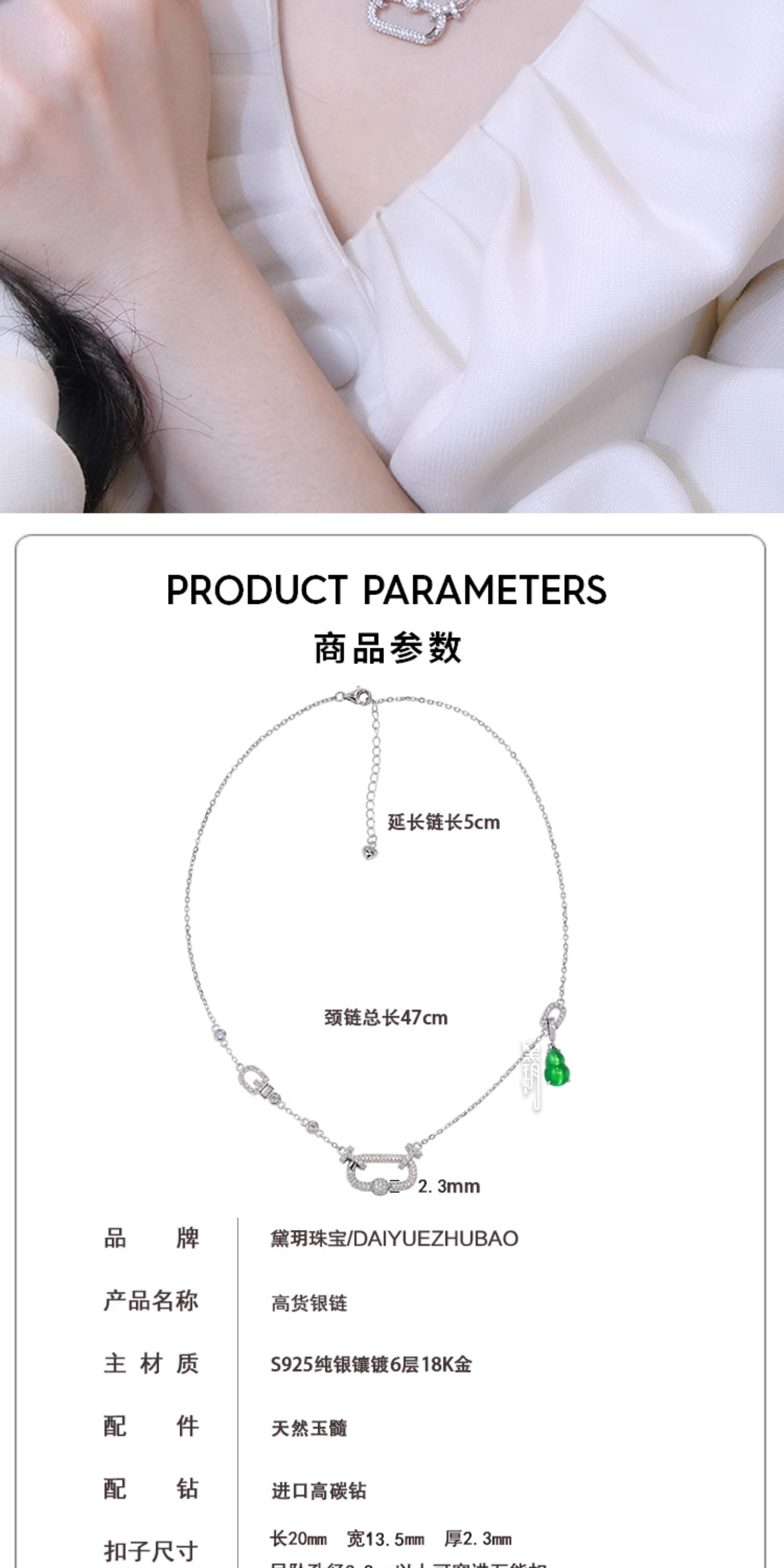 Dai Yue 925 Silver High-Quality Chain with Italian Craftsmanship, Adjustable Chain with Clasp, Chalcedony Green Drop Pendant