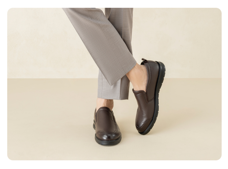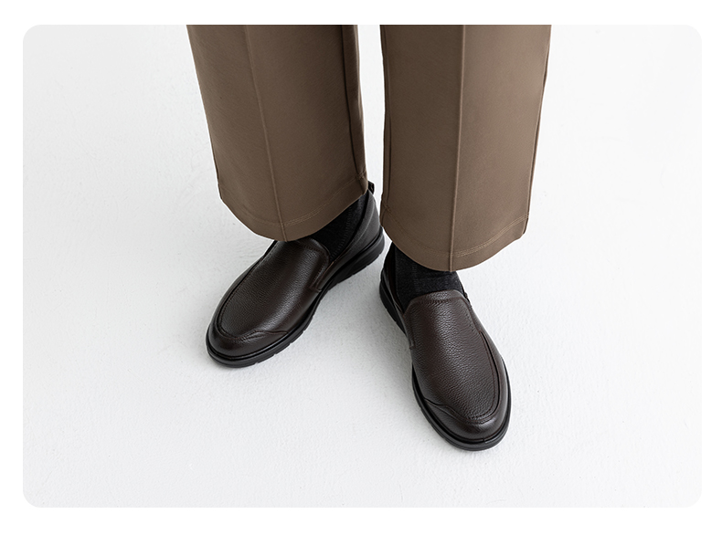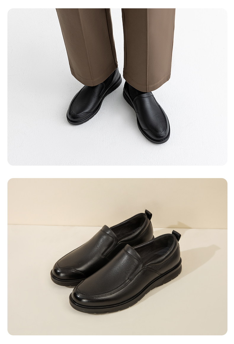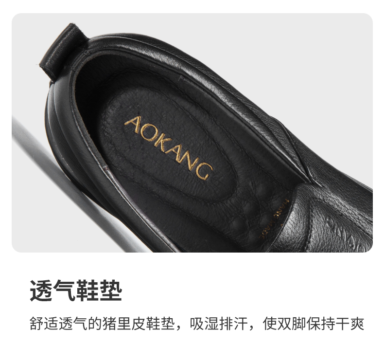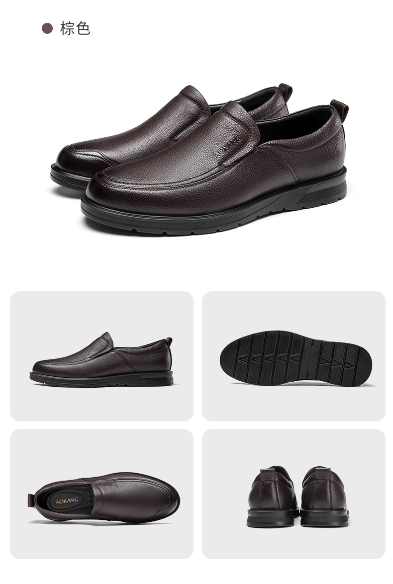 Aokang Official Men's Shoes, Spring and Autumn Genuine Leather Business Casual Shoes, Fashionable Slip-On Flat Shoes, Comfortable Dad Shoes