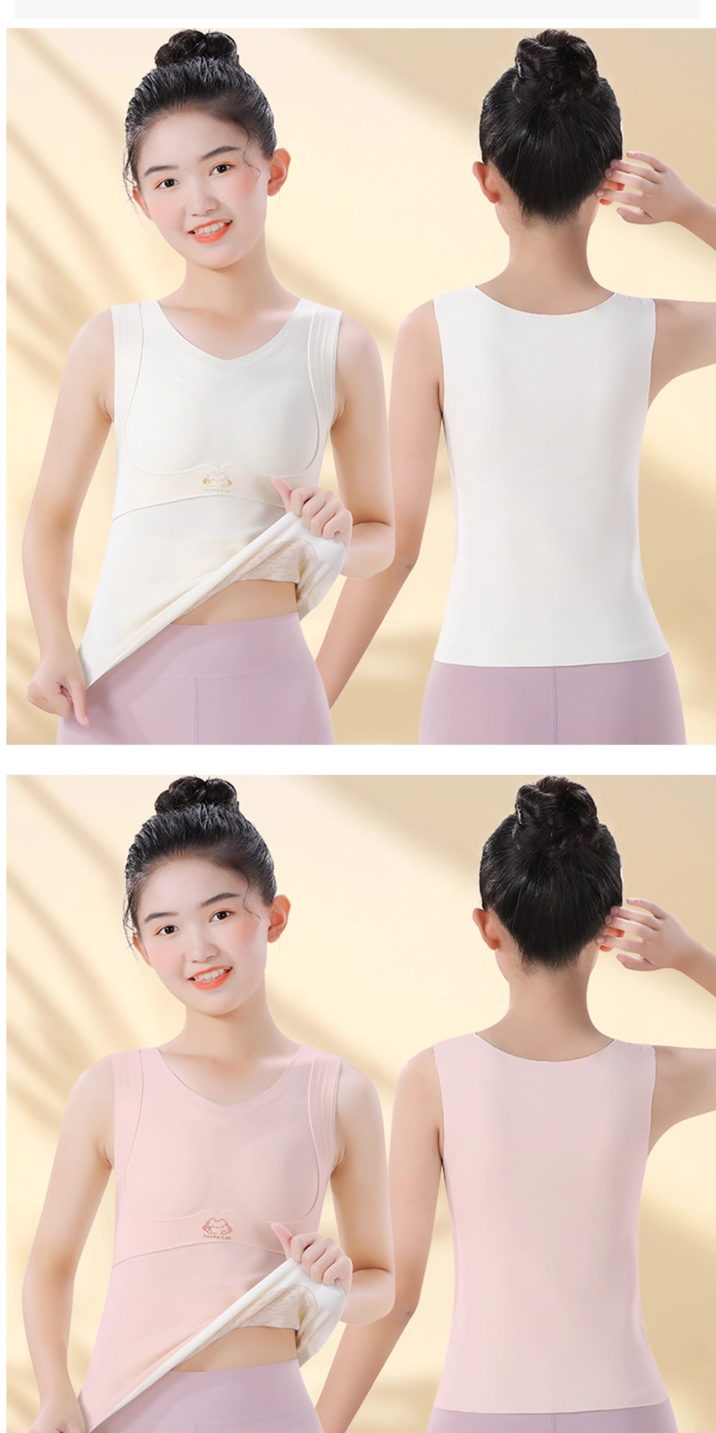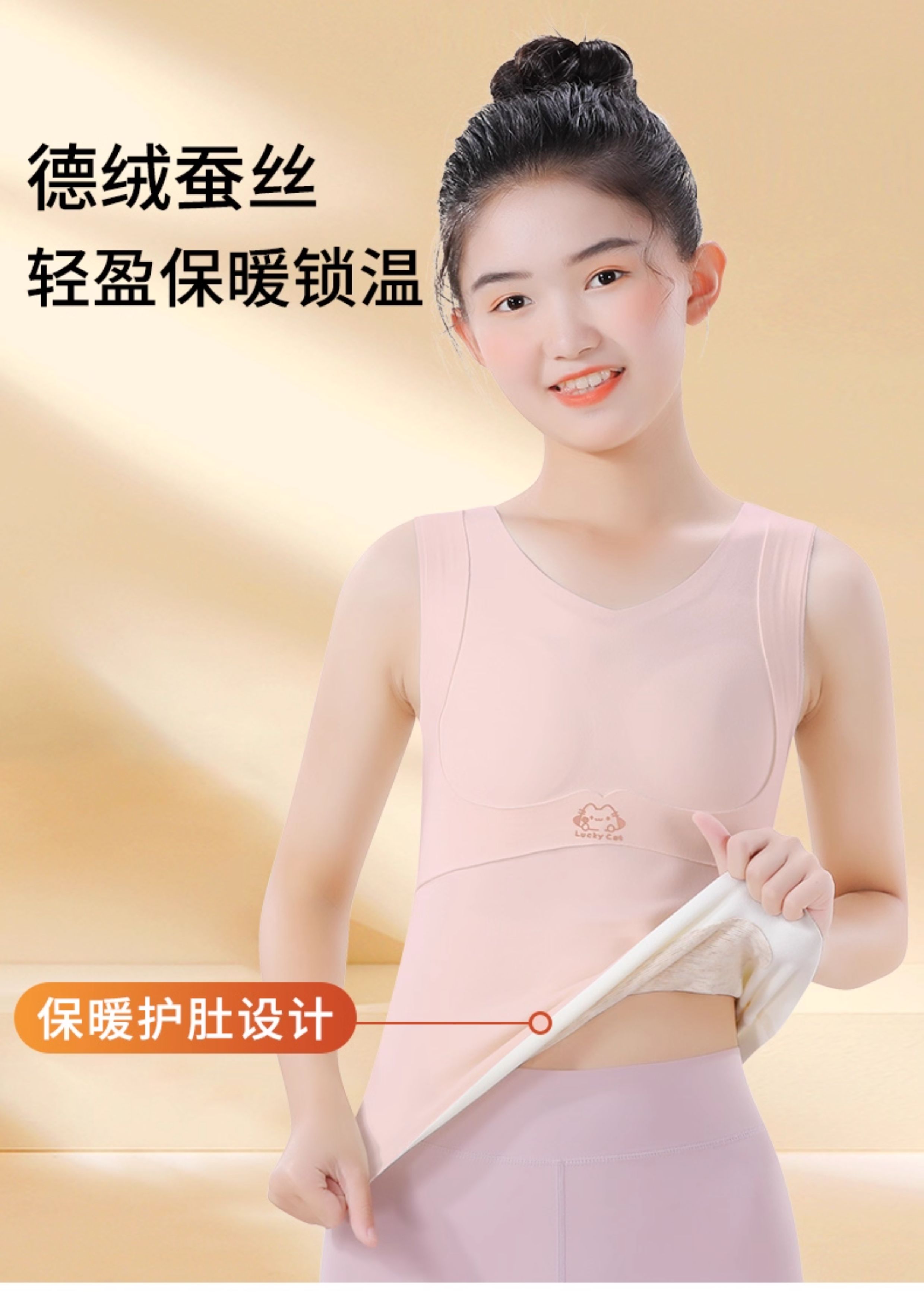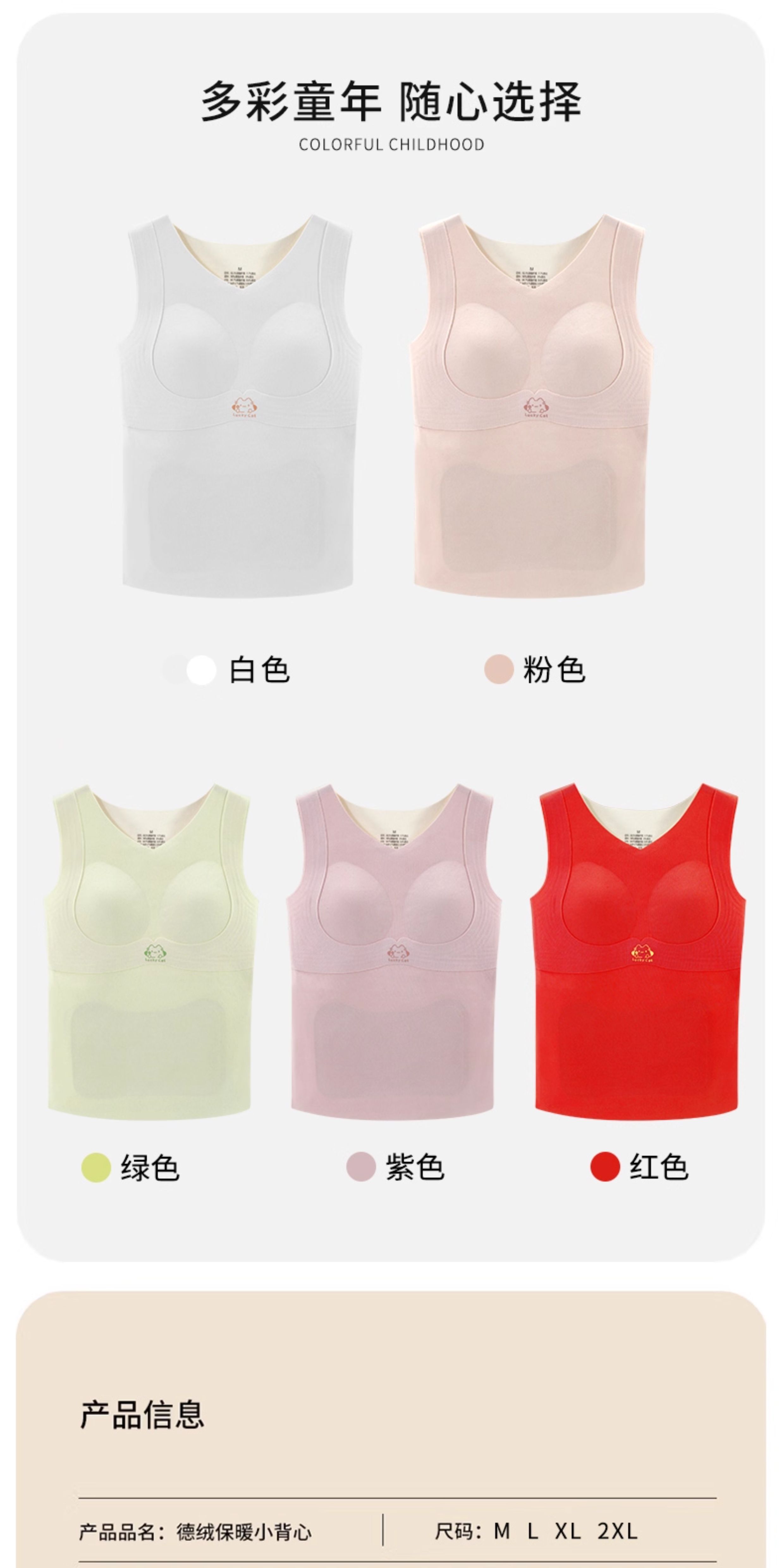 Cat Girl Thermal Vest with Chest Pads, Year of the Snake, Zodiac Year, Red, Autumn and Winter, Junior High School Girls' Development Underwear