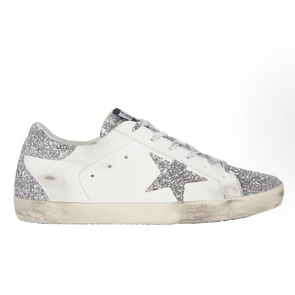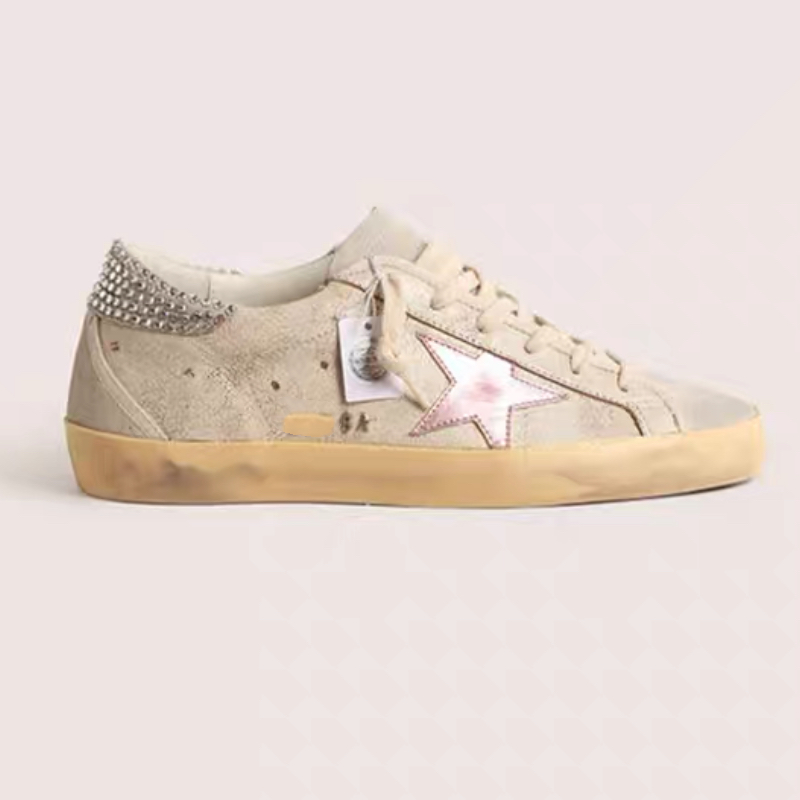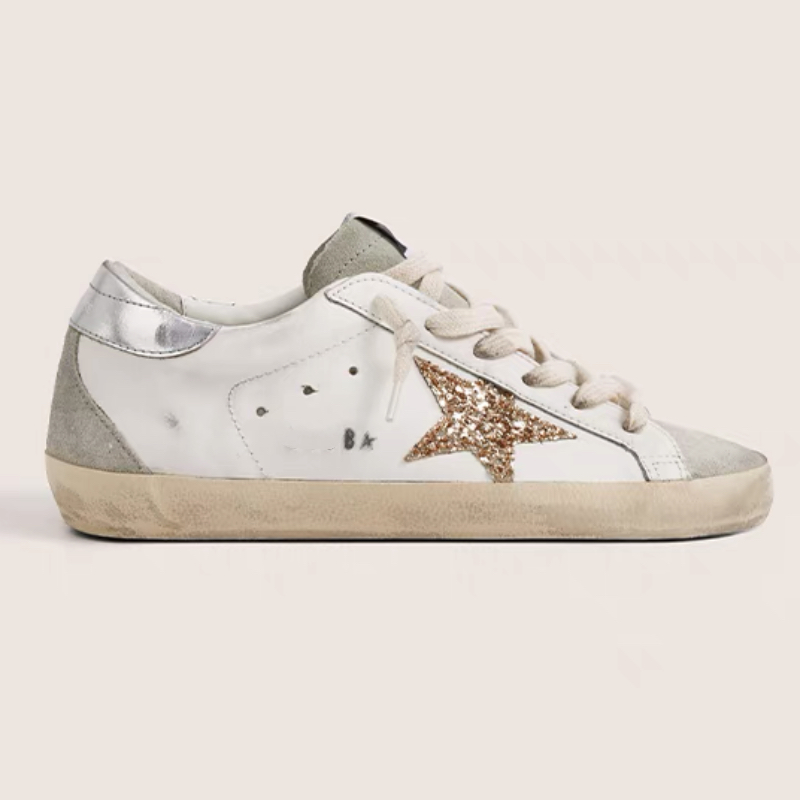 Korean Gg Versatile 2025 Distressed Star Sneakers for Women and Men, Trendy Height-Increasing White Shoes