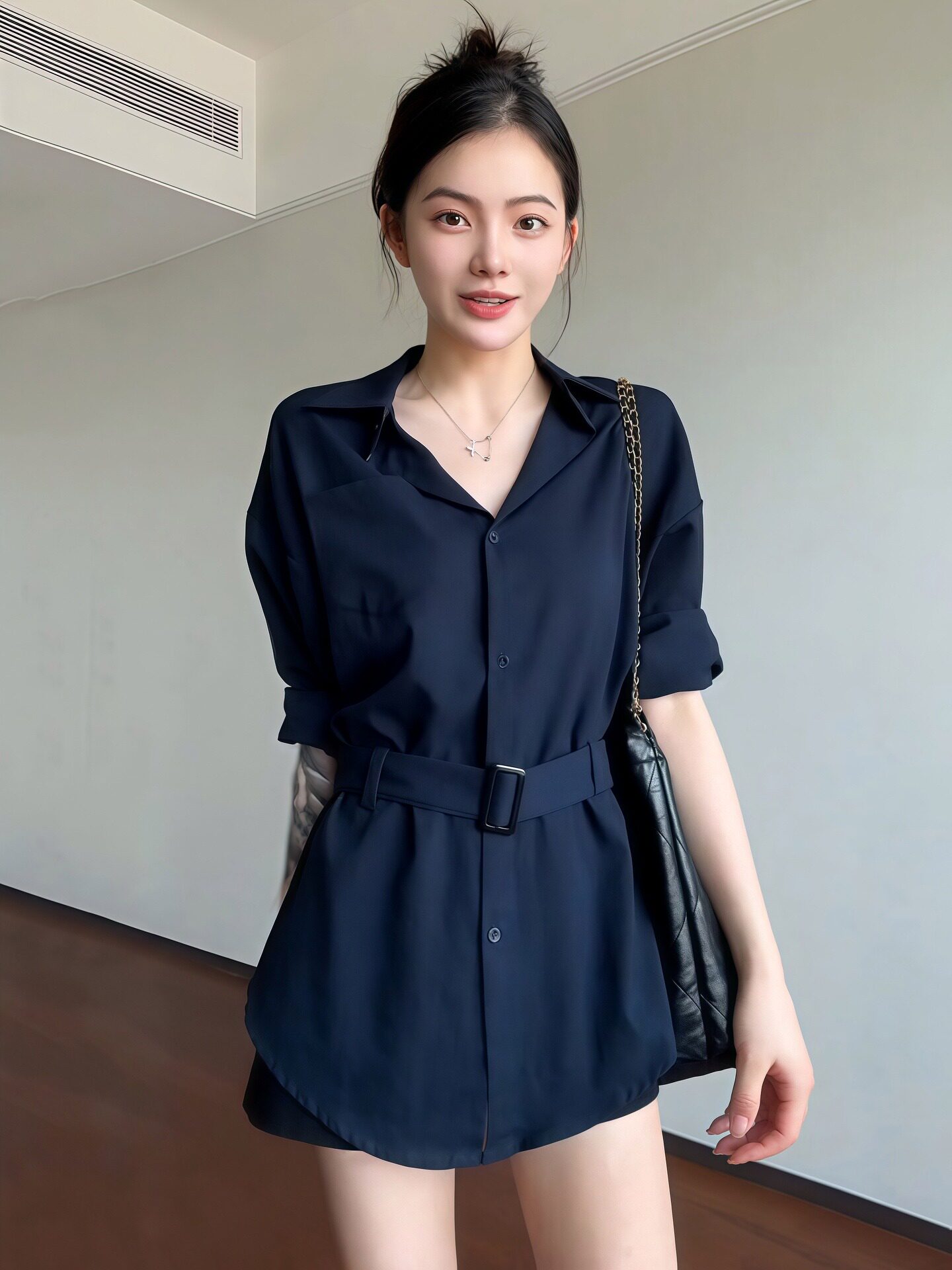 Plus Size Fat Girl French Retro Long-Sleeved Shirt for Women, New Summer Style with Tie Waist, Slimming Design, Unique Shirt