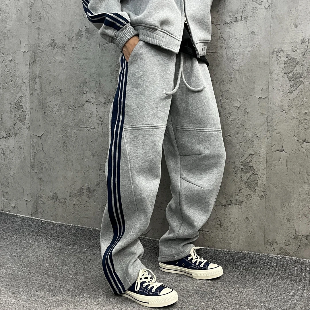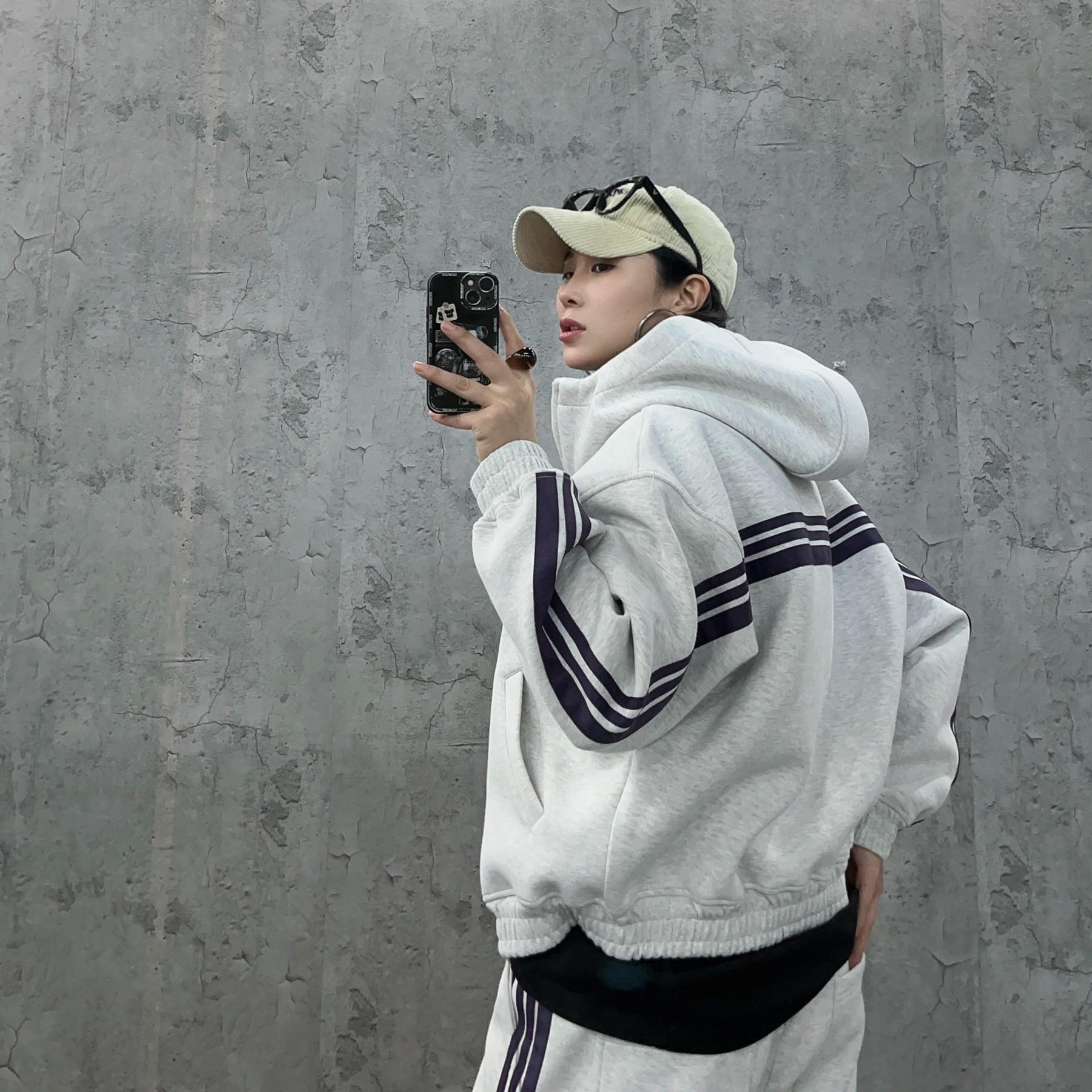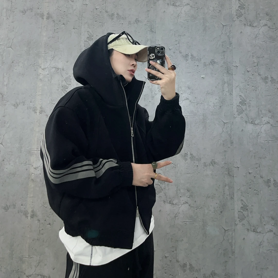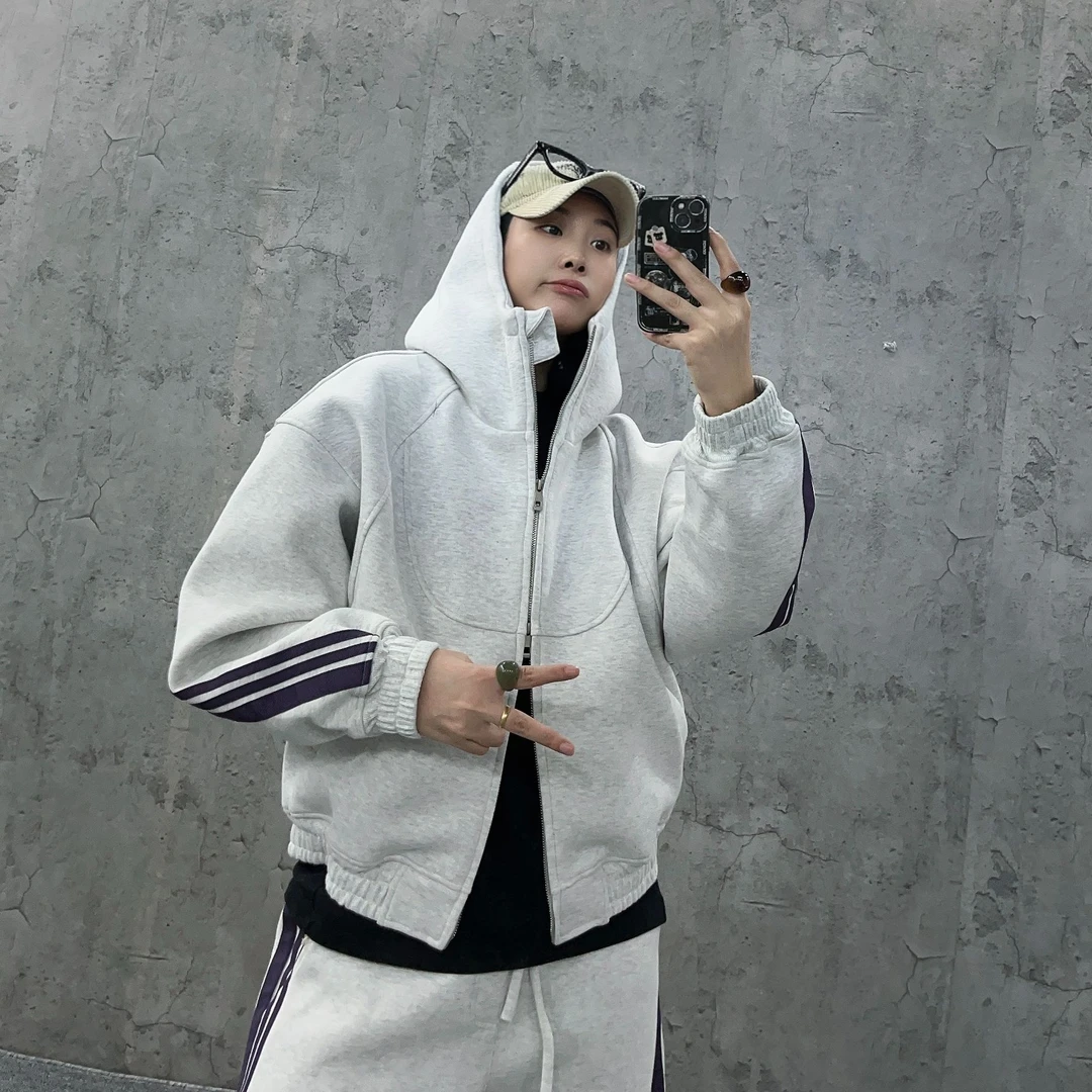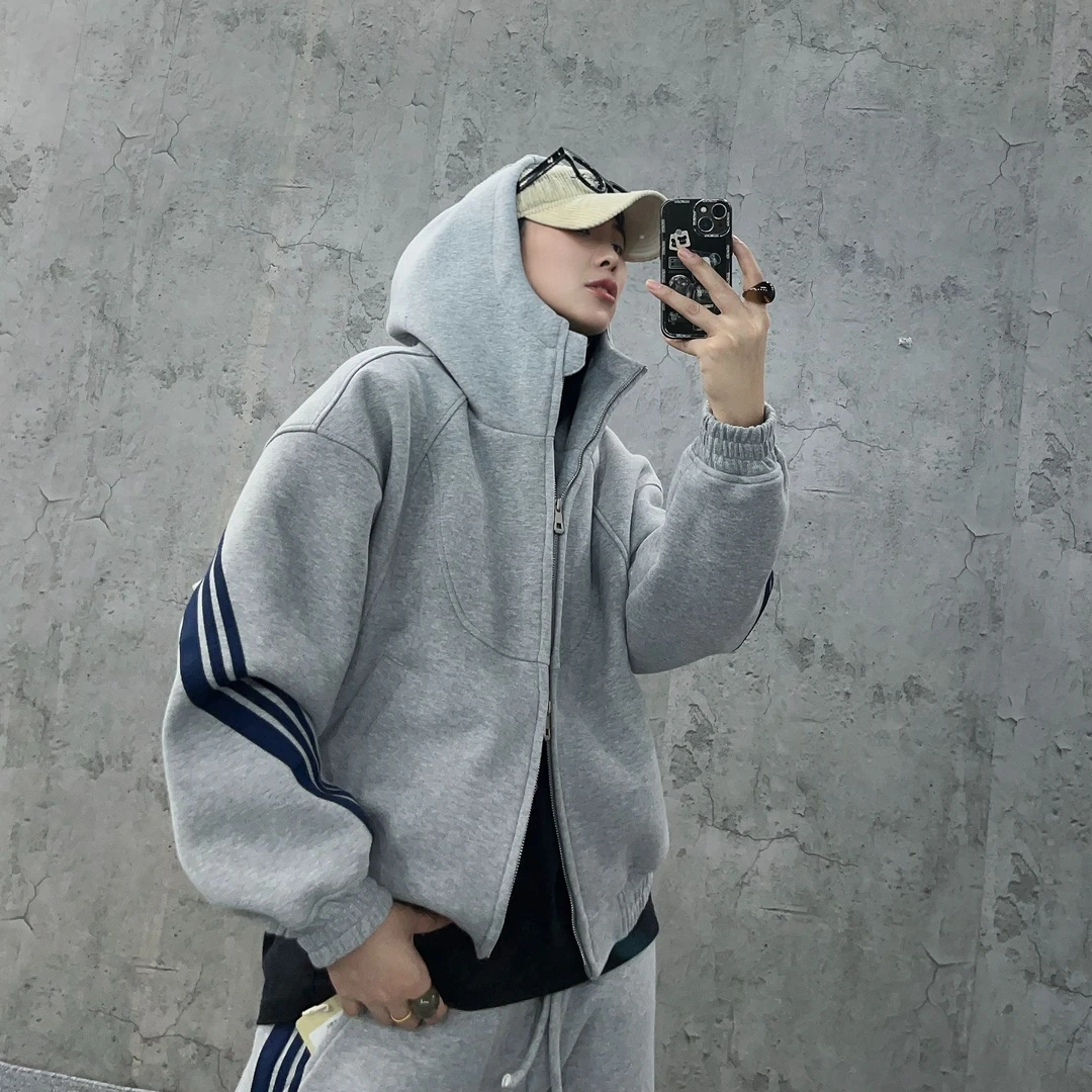 American Street Casual Sports Style Winter New Three-Stripe Hooded Cardigan Sweatshirt Jacket Sports Pants Set