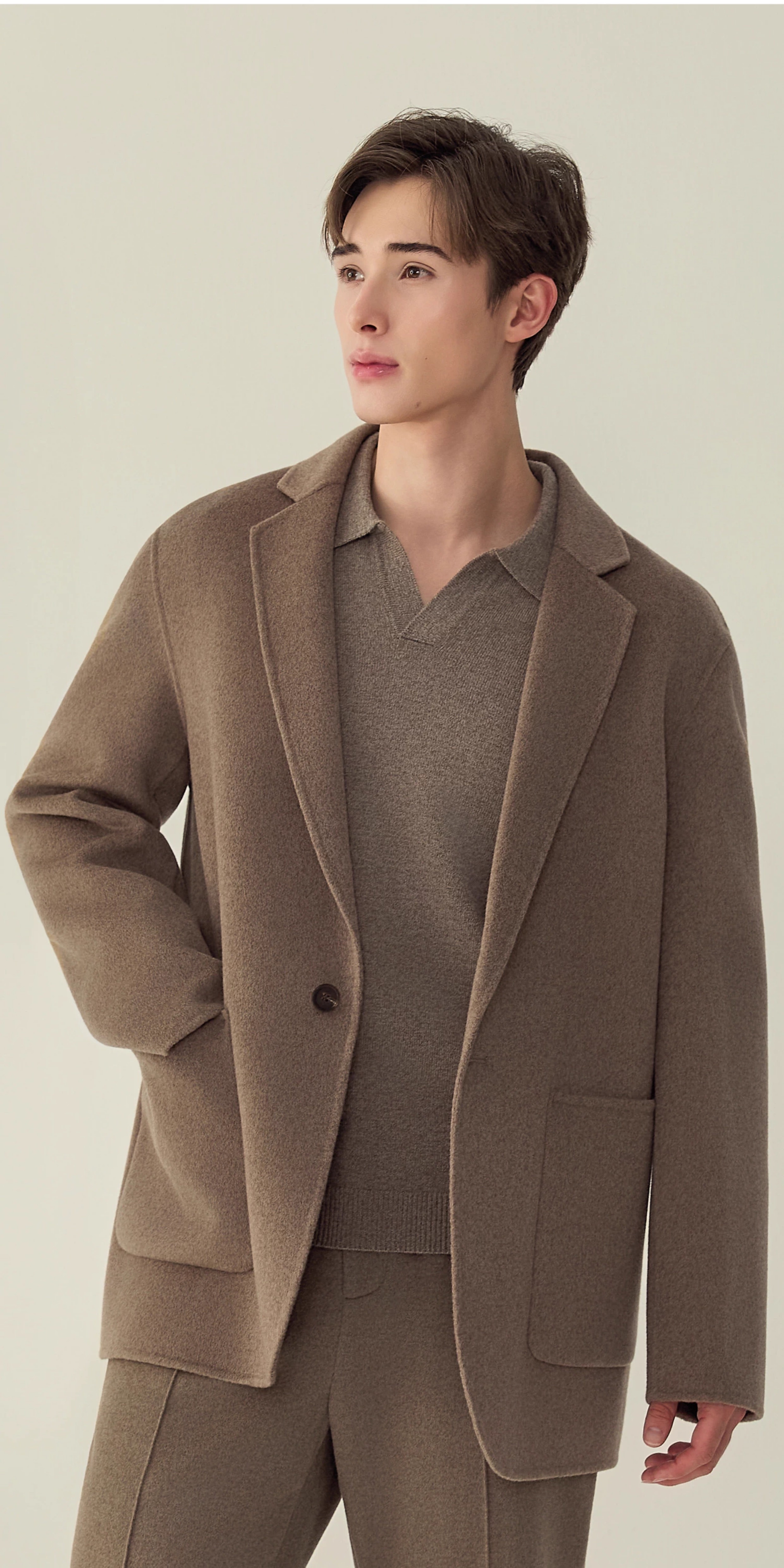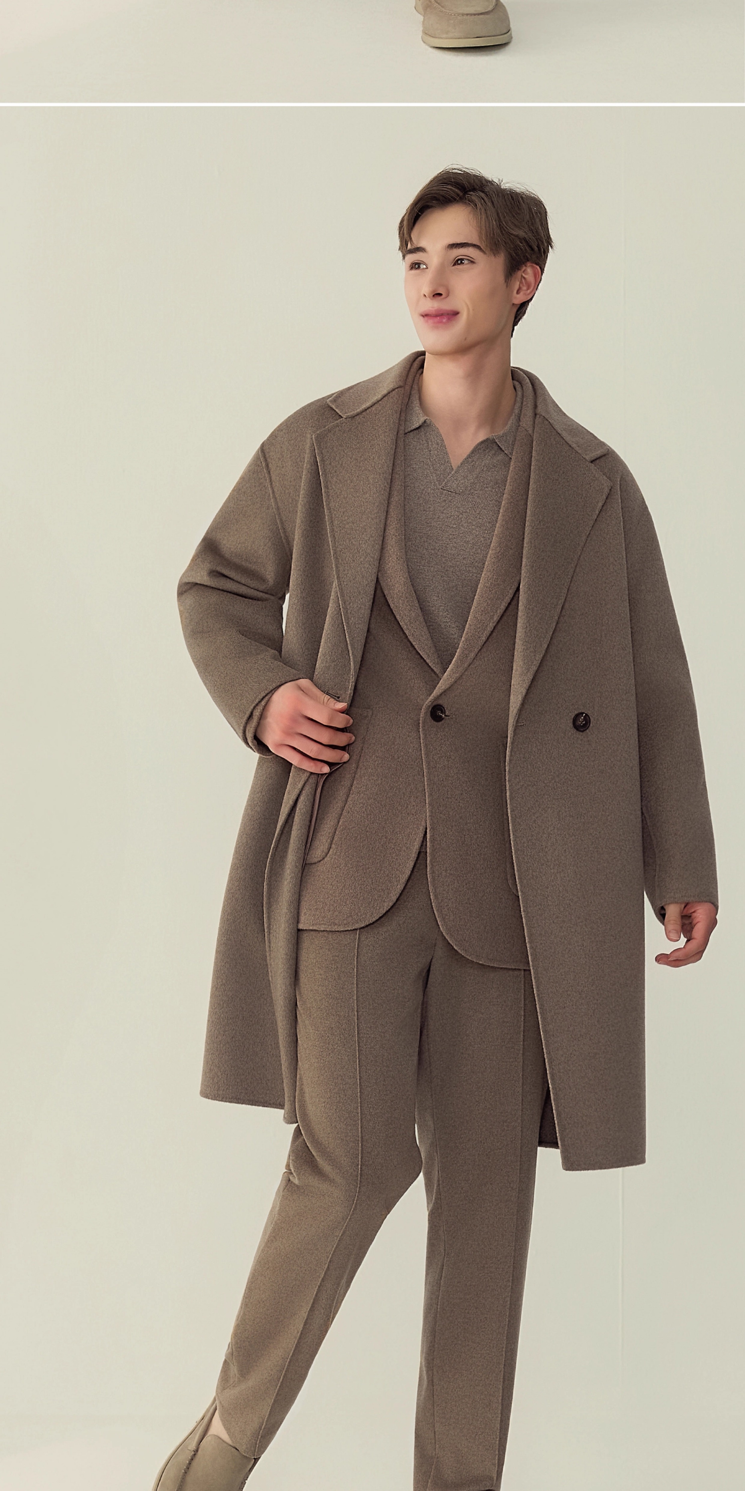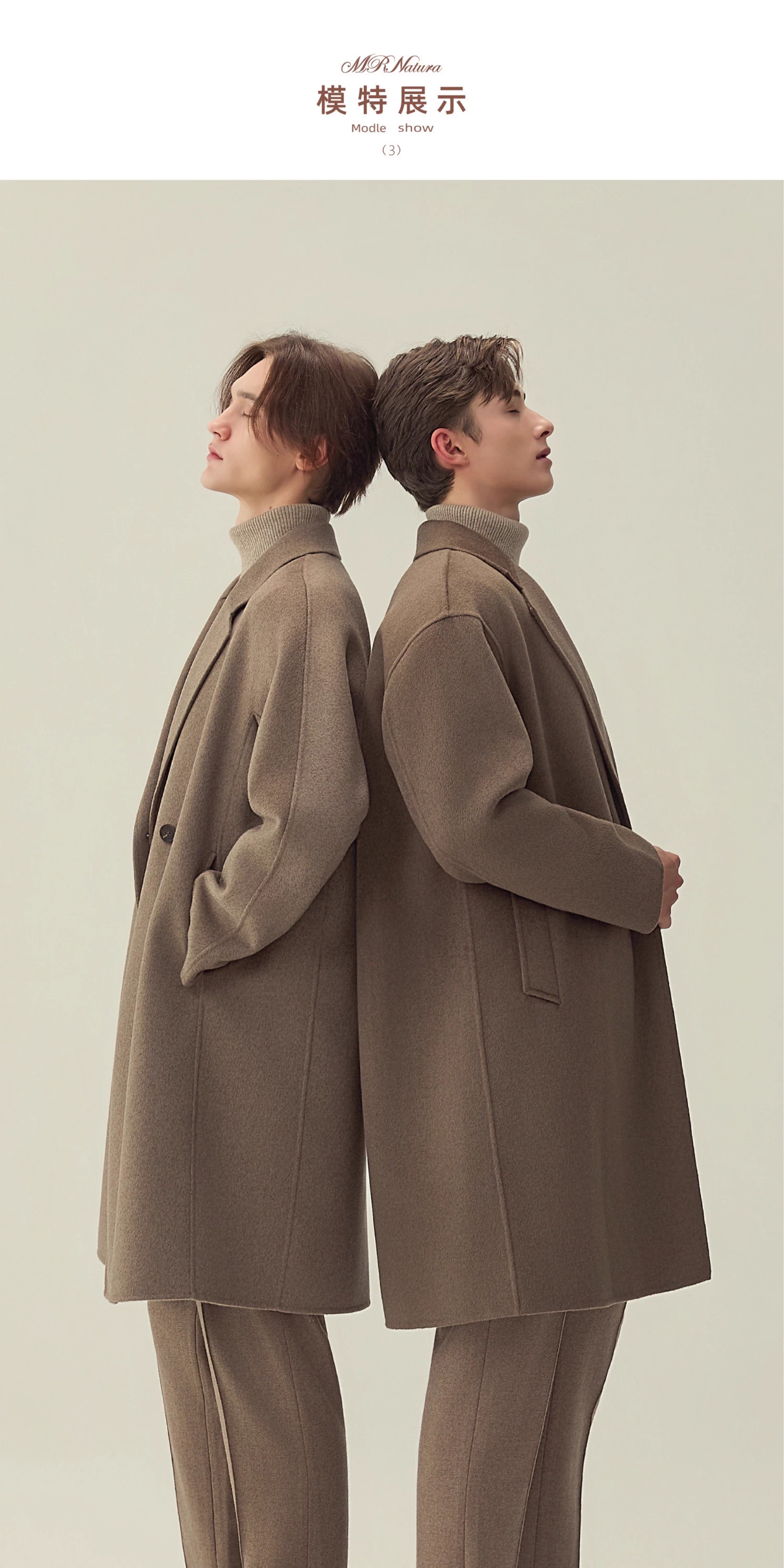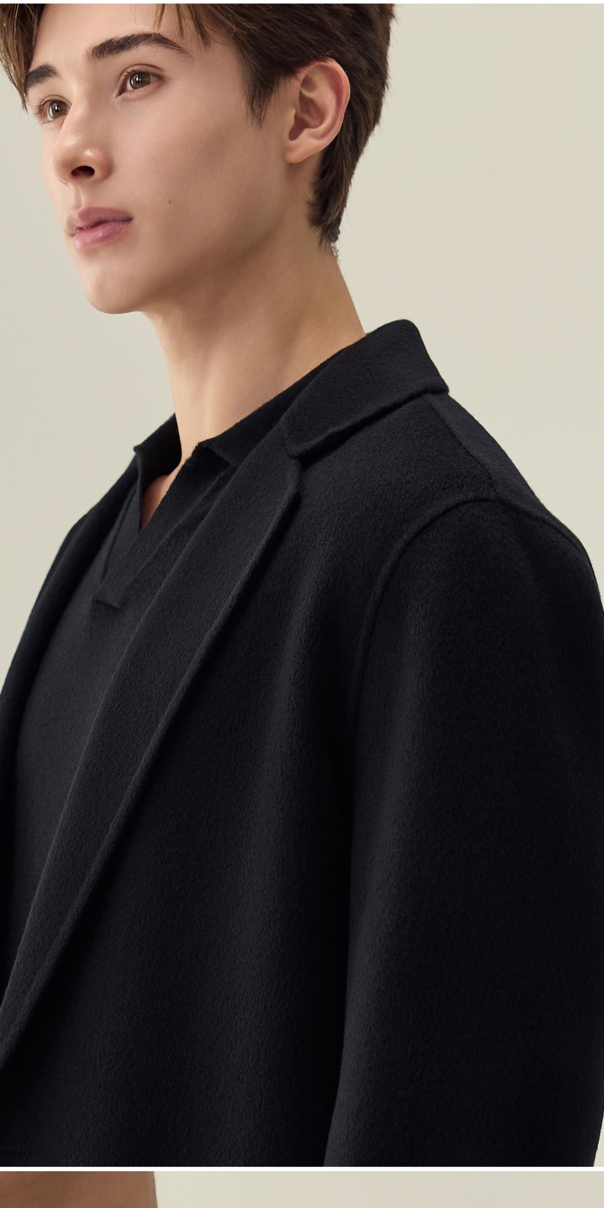 Men's Coat 100% Cashmere Lapel Short Blazer Men's Long Suit Collar Solid Color Double-Sided Woolen Coat