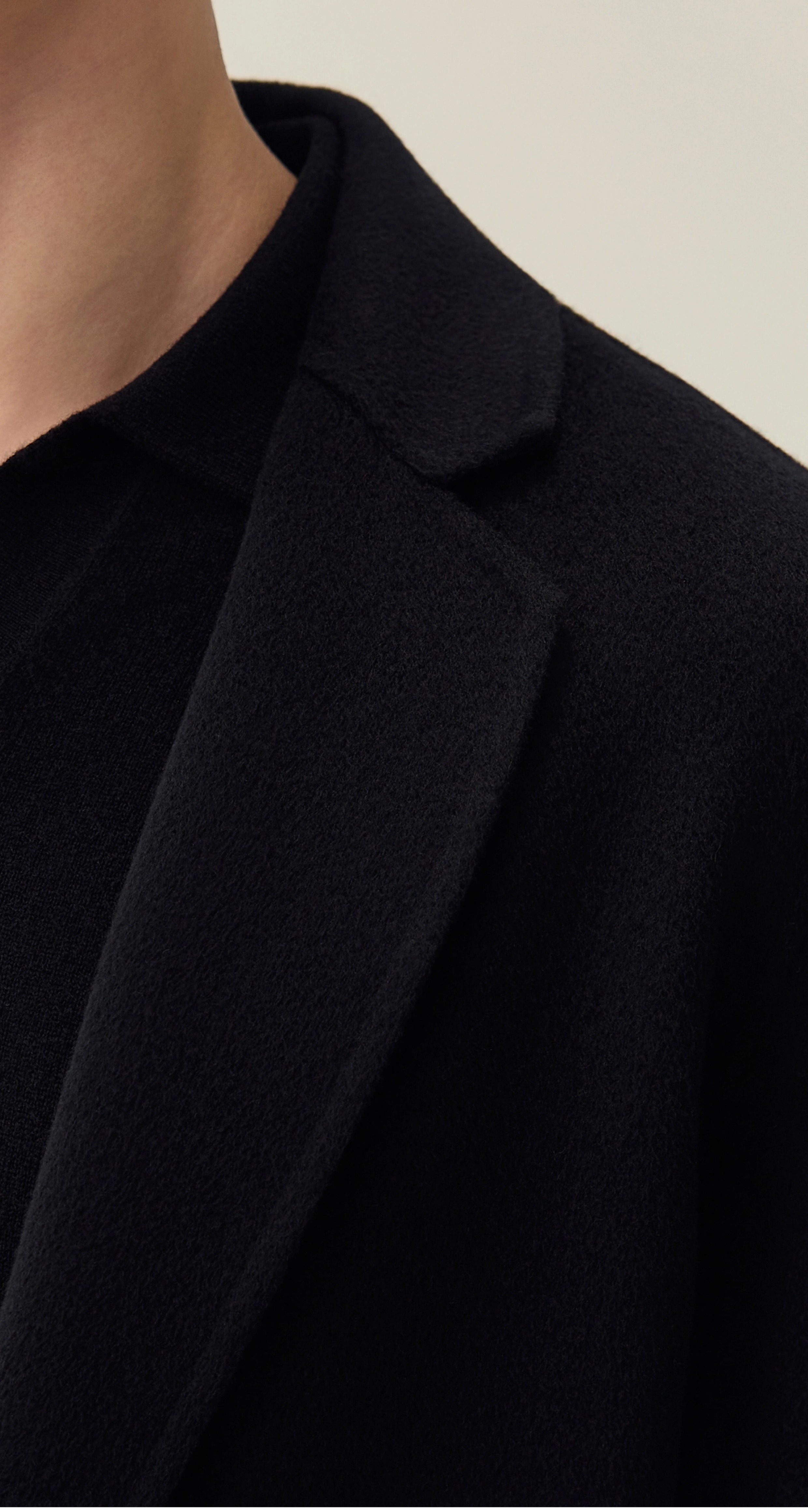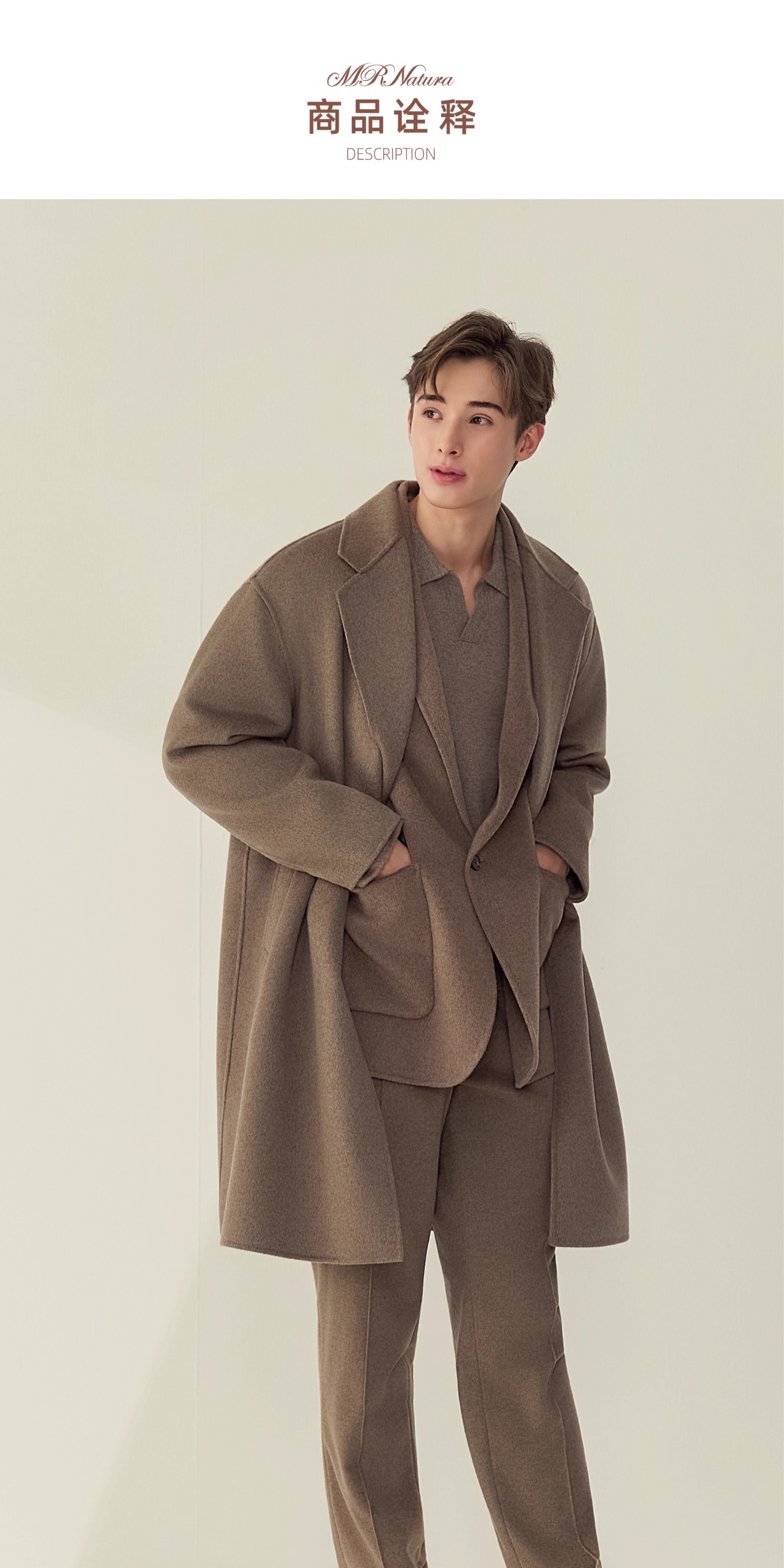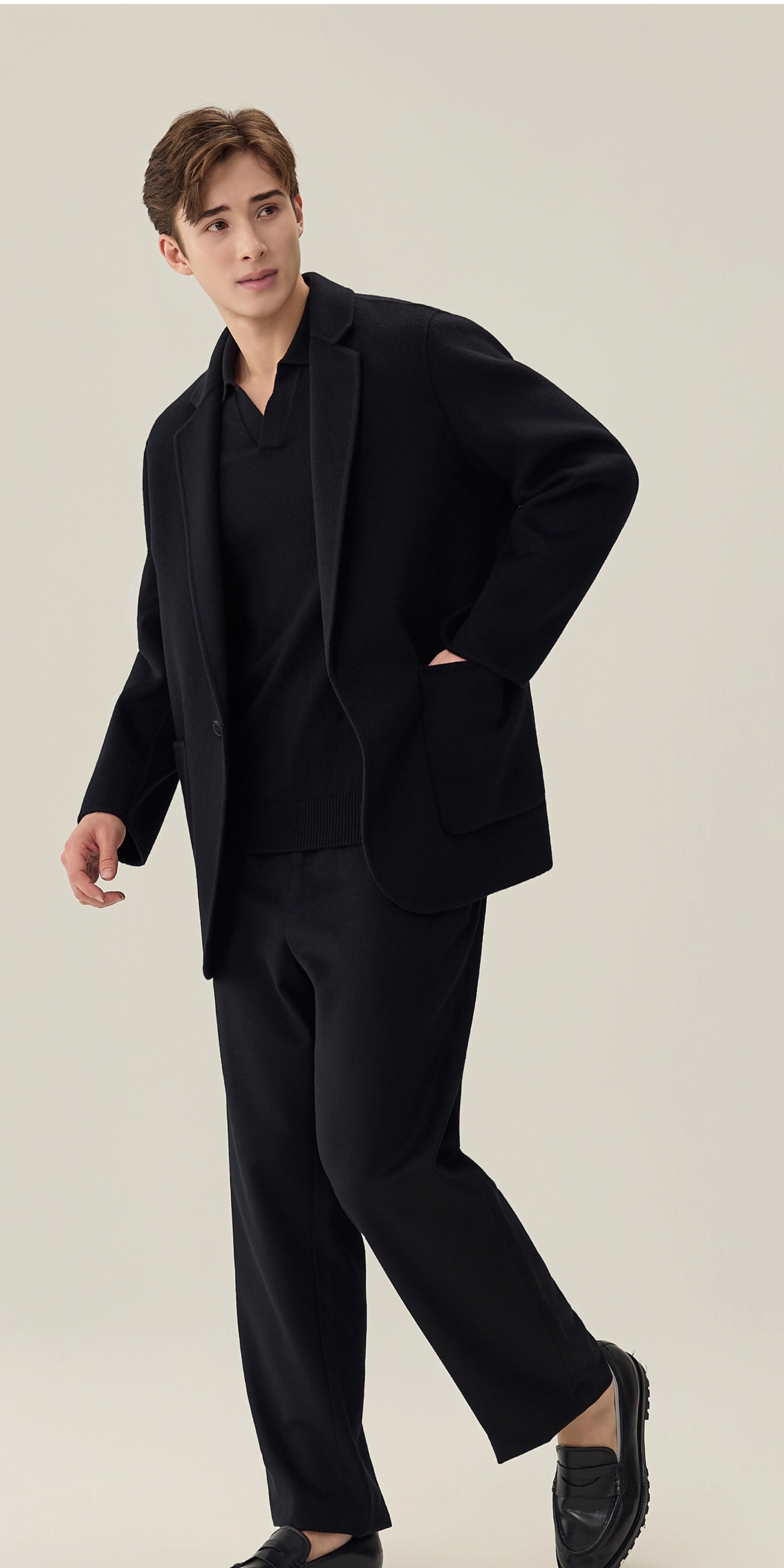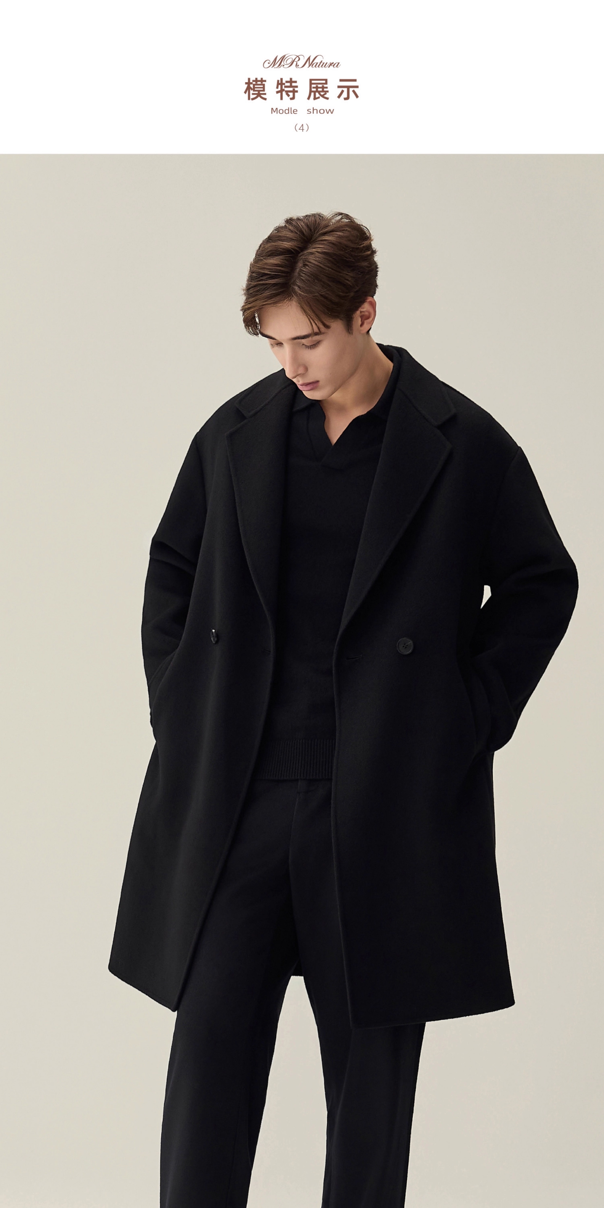 Men's Coat 100% Cashmere Lapel Short Blazer Men's Long Suit Collar Solid Color Double-Sided Woolen Coat