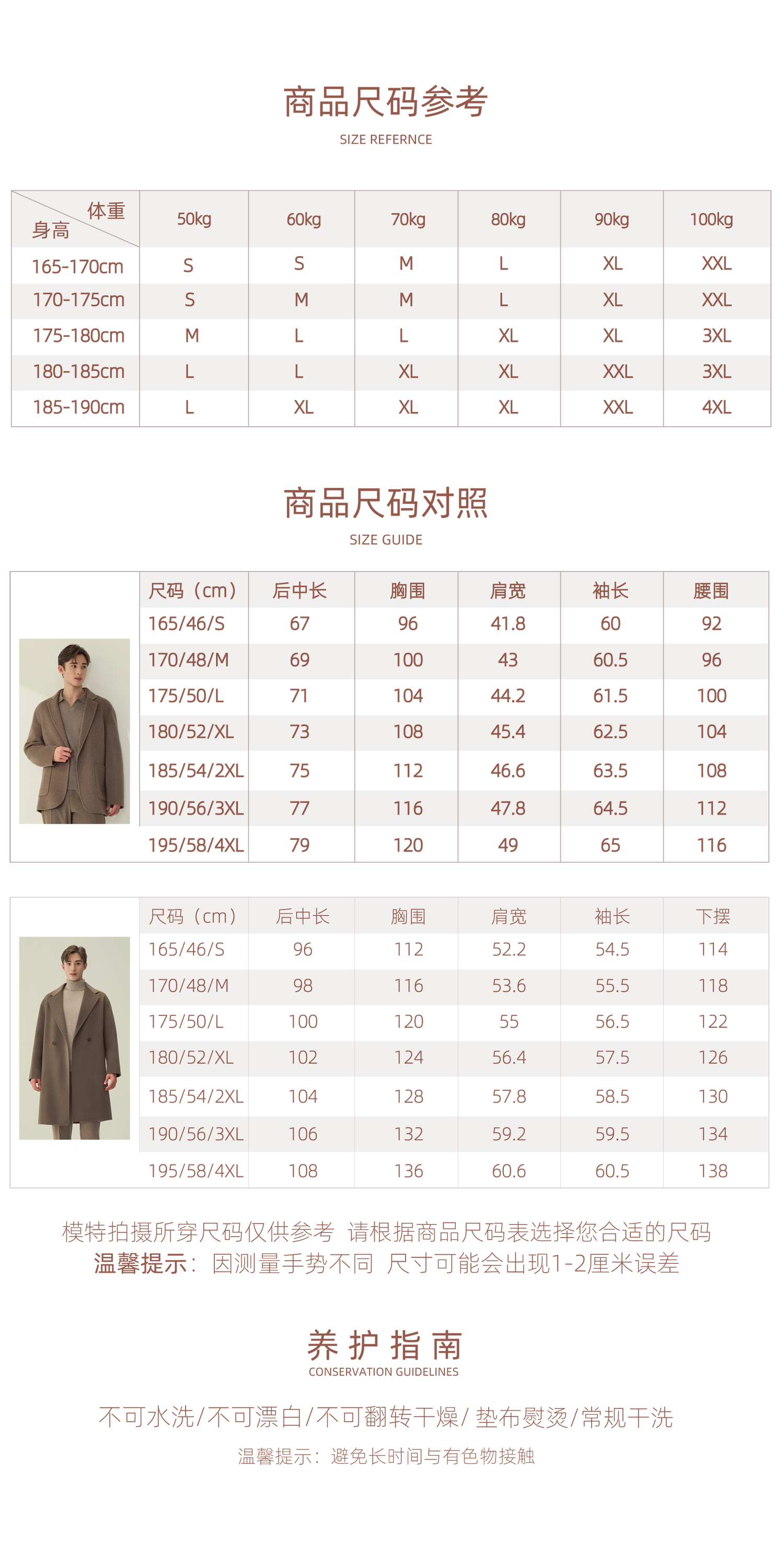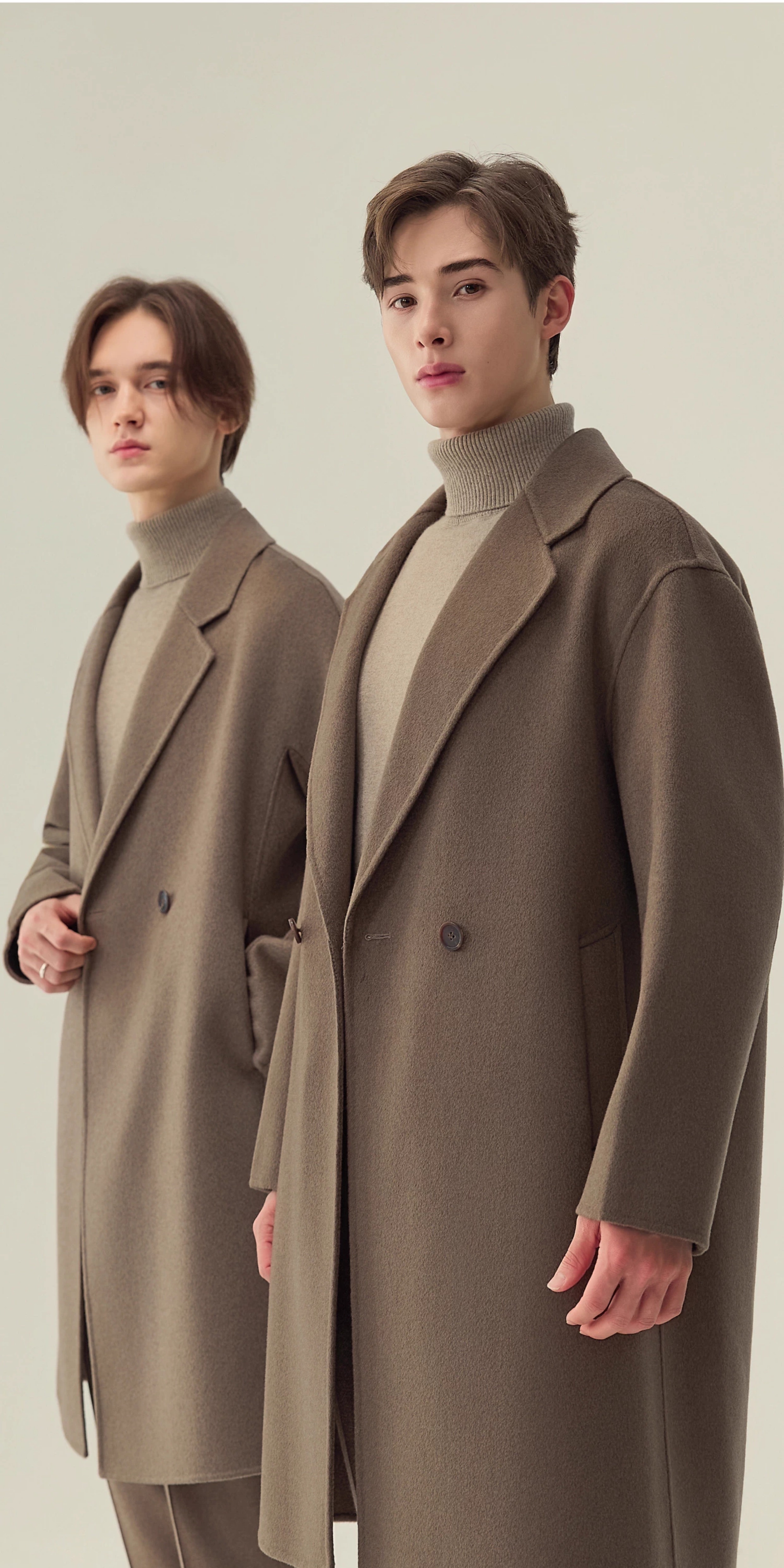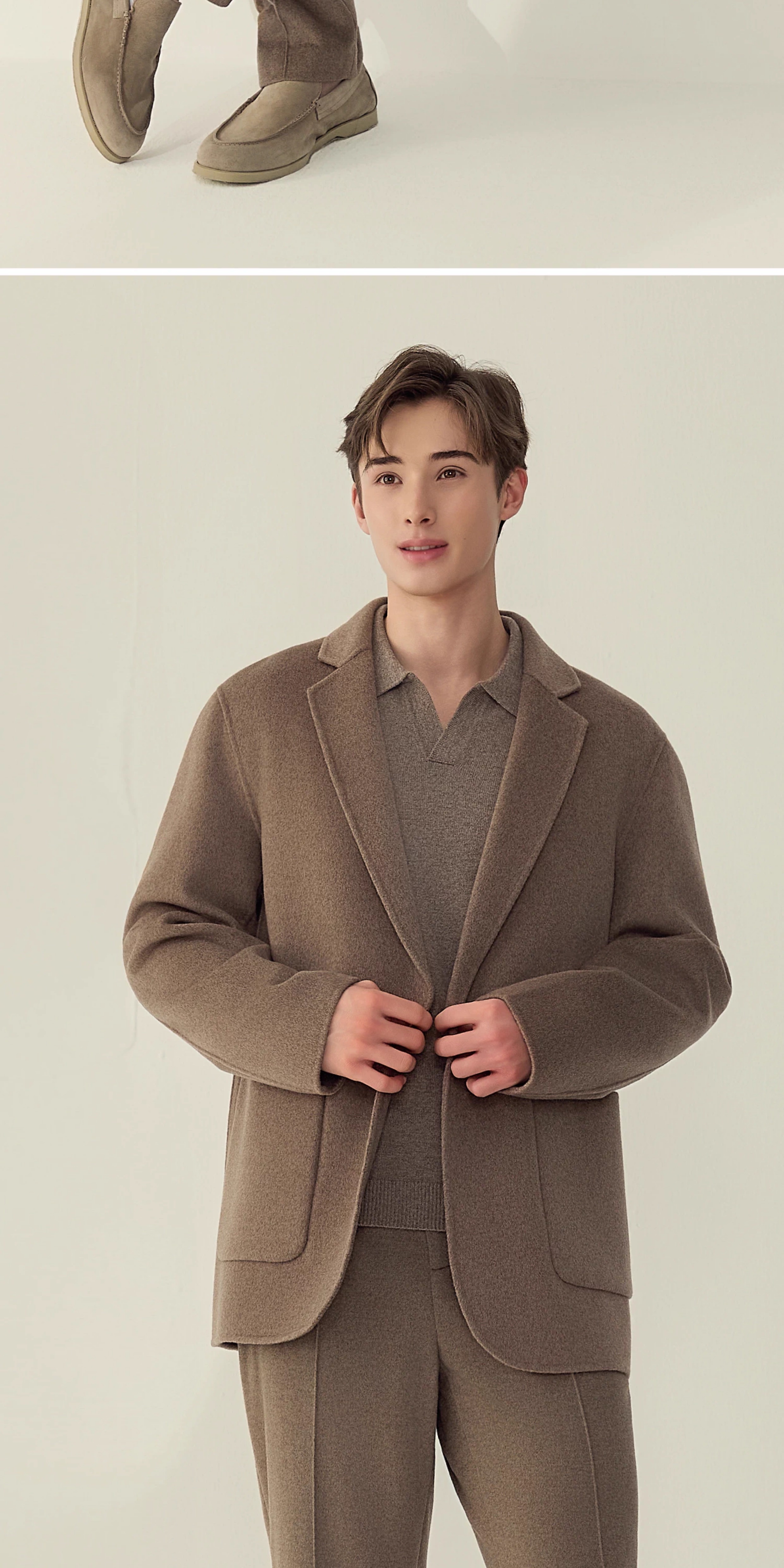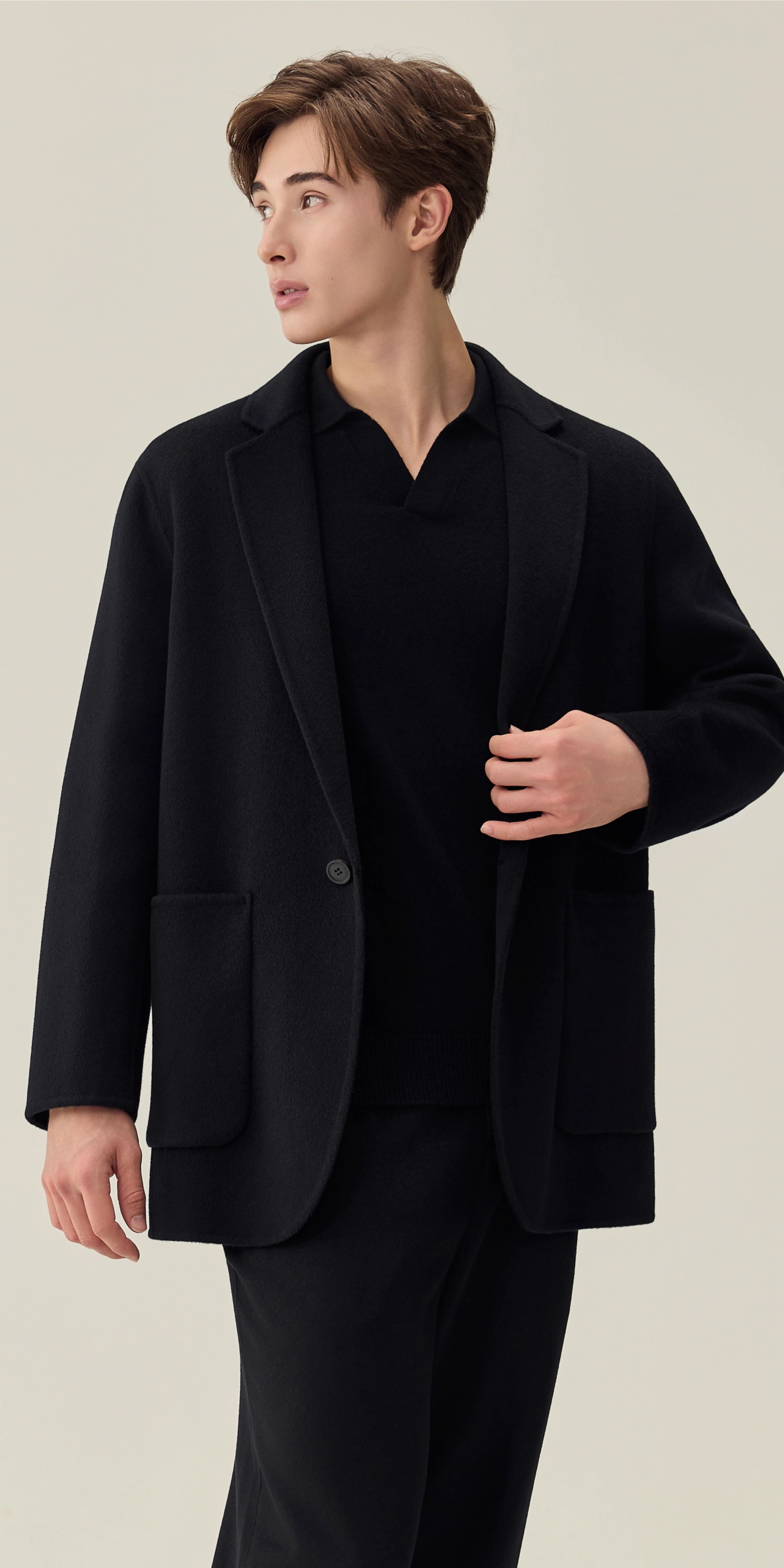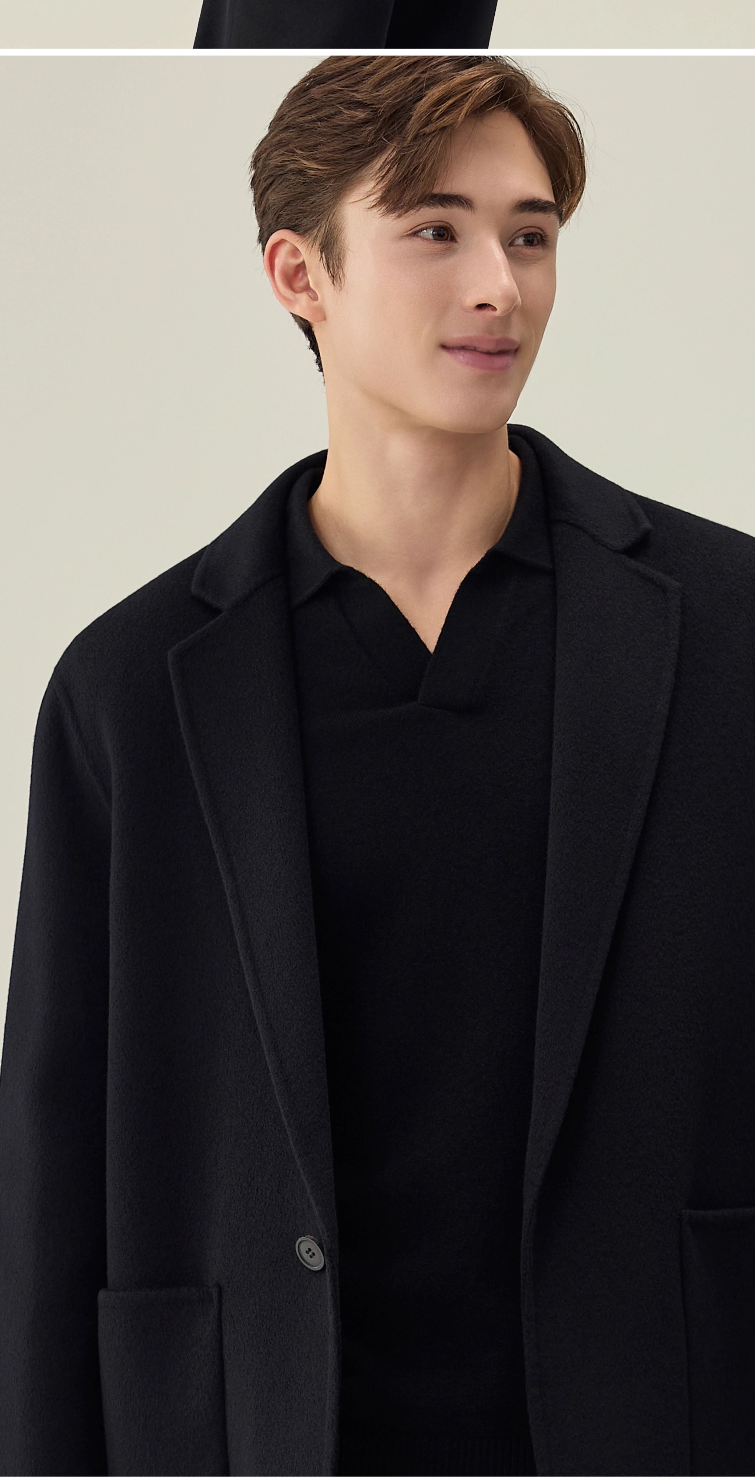 Men's Coat 100% Cashmere Lapel Short Blazer Men's Long Suit Collar Solid Color Double-Sided Woolen Coat