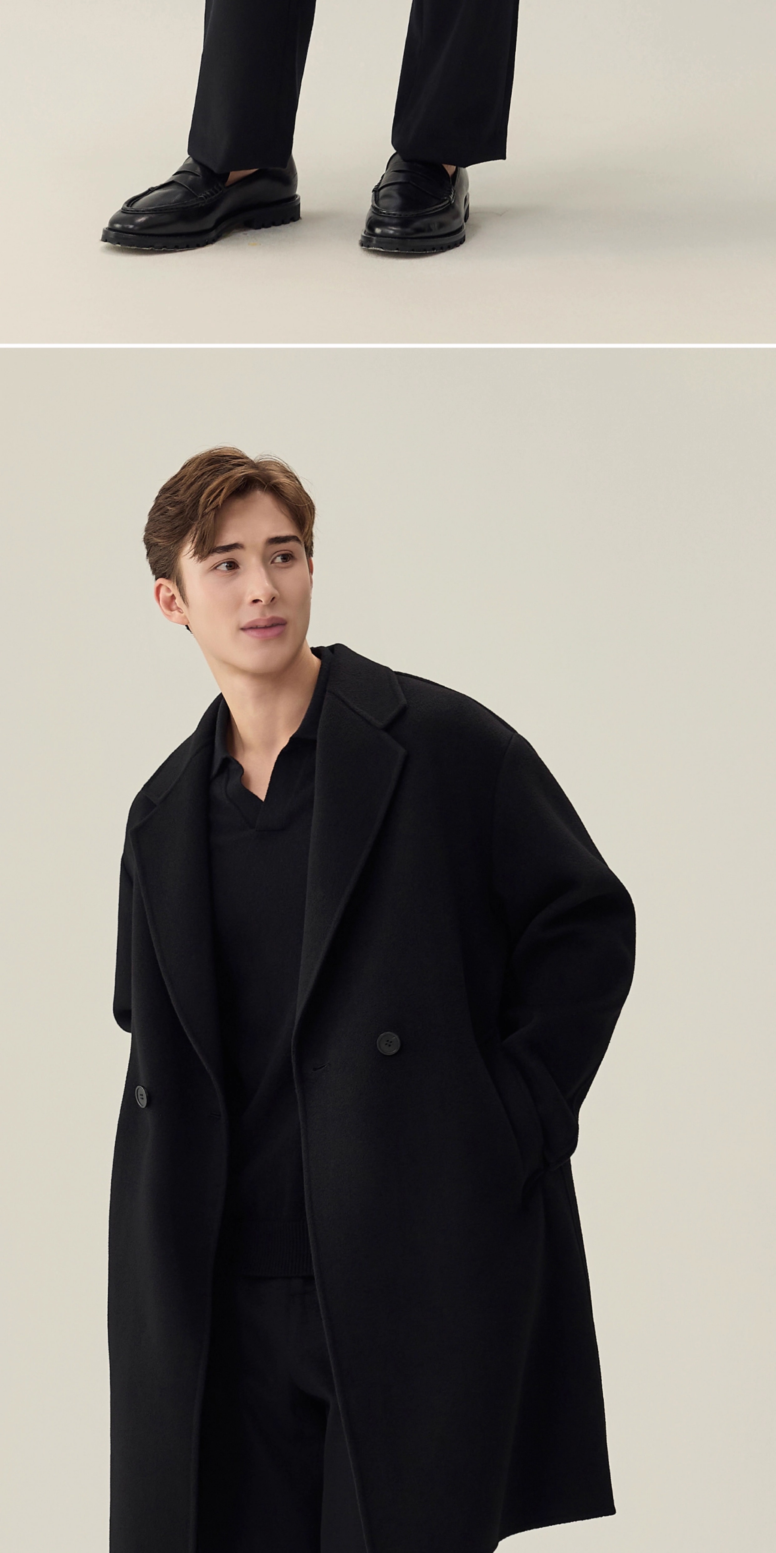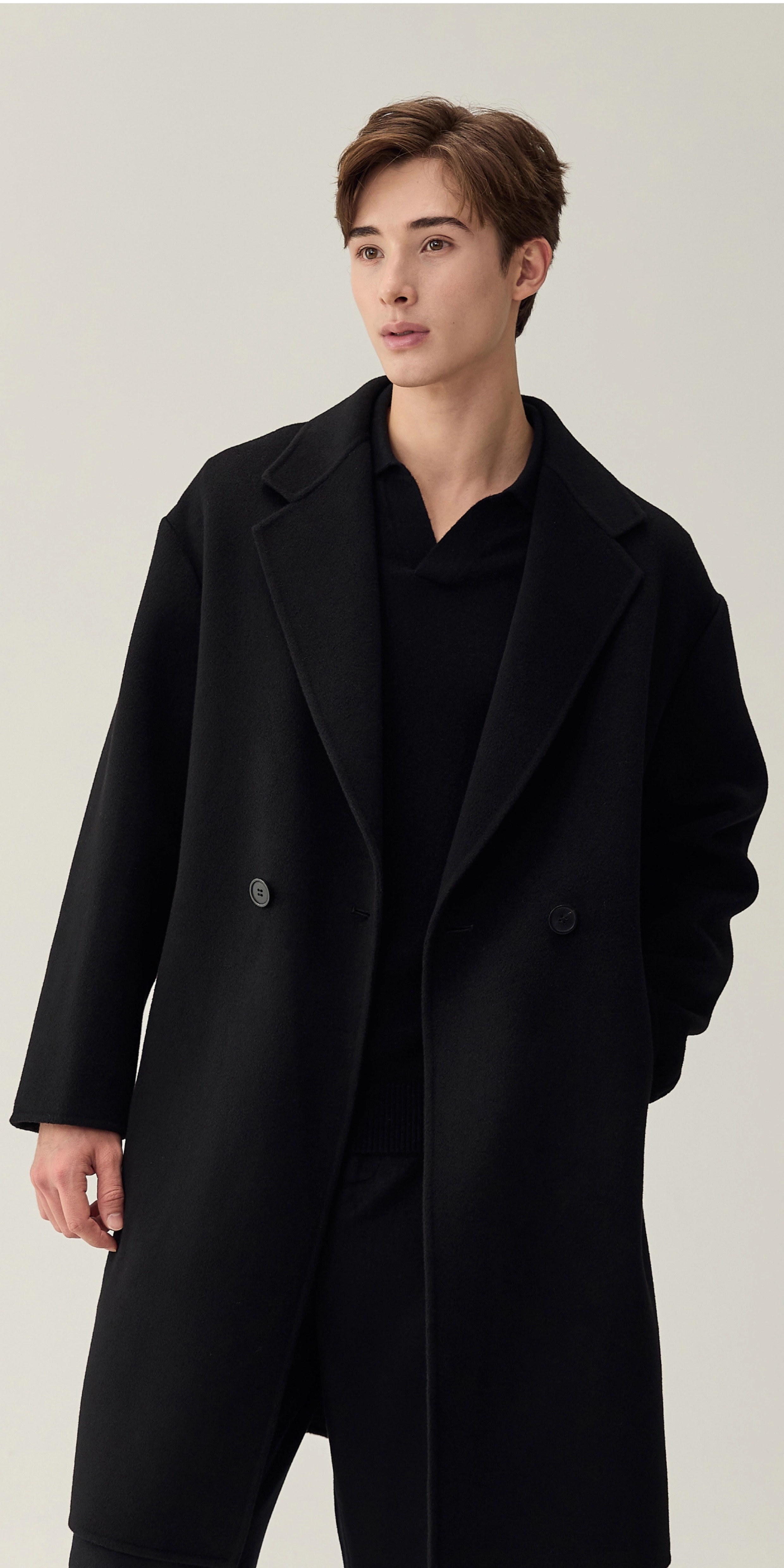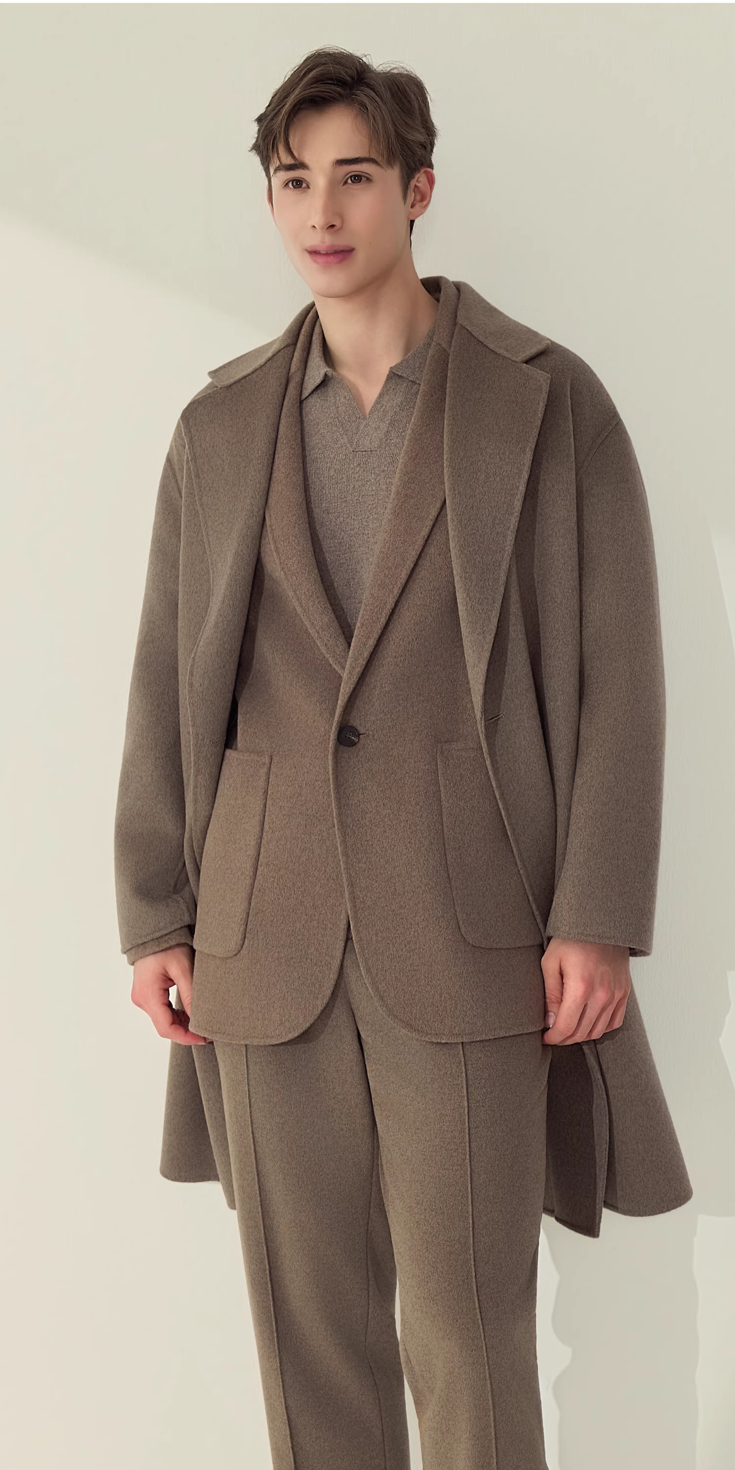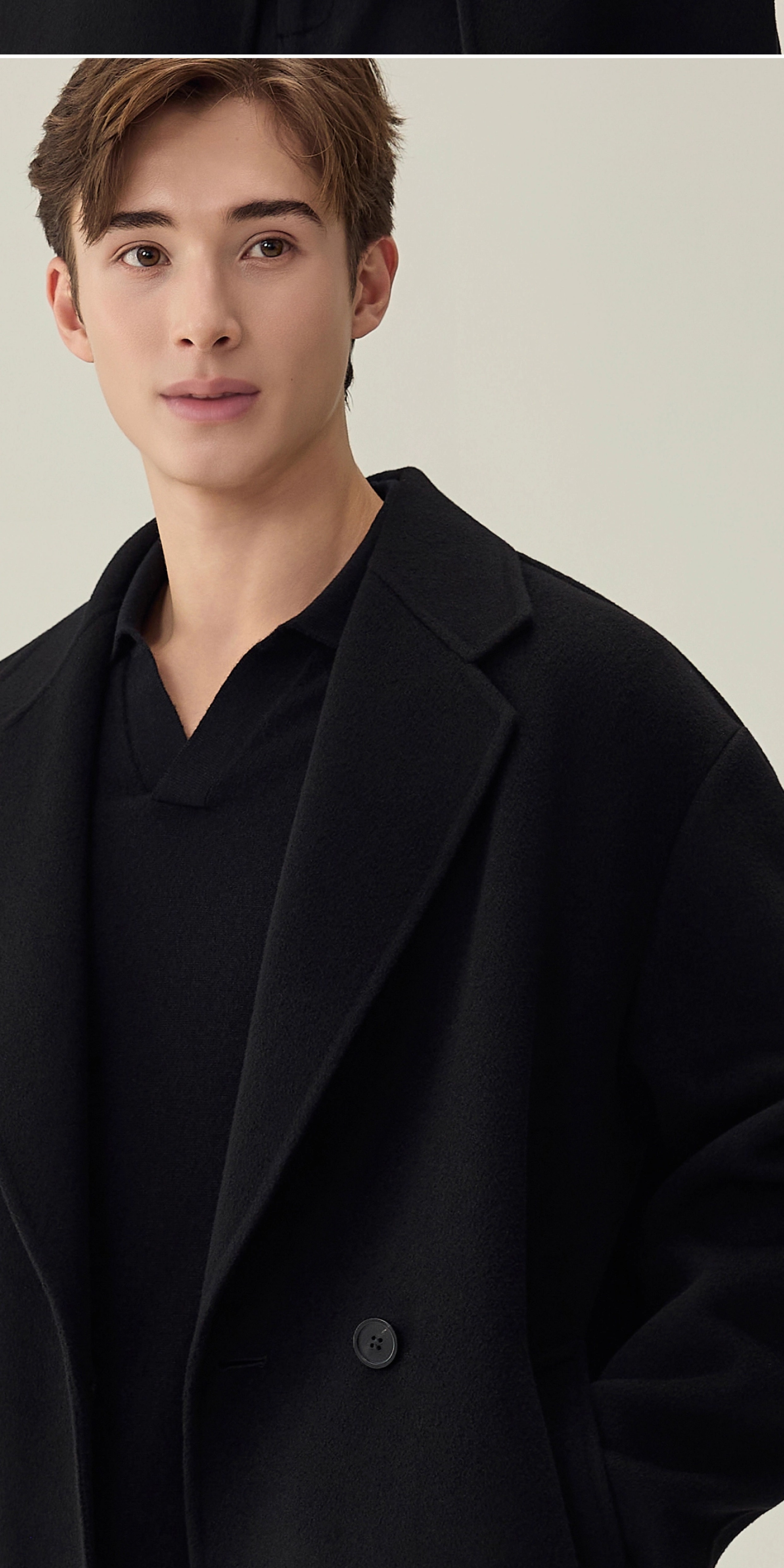 Men's Coat 100% Cashmere Lapel Short Blazer Men's Long Suit Collar Solid Color Double-Sided Woolen Coat