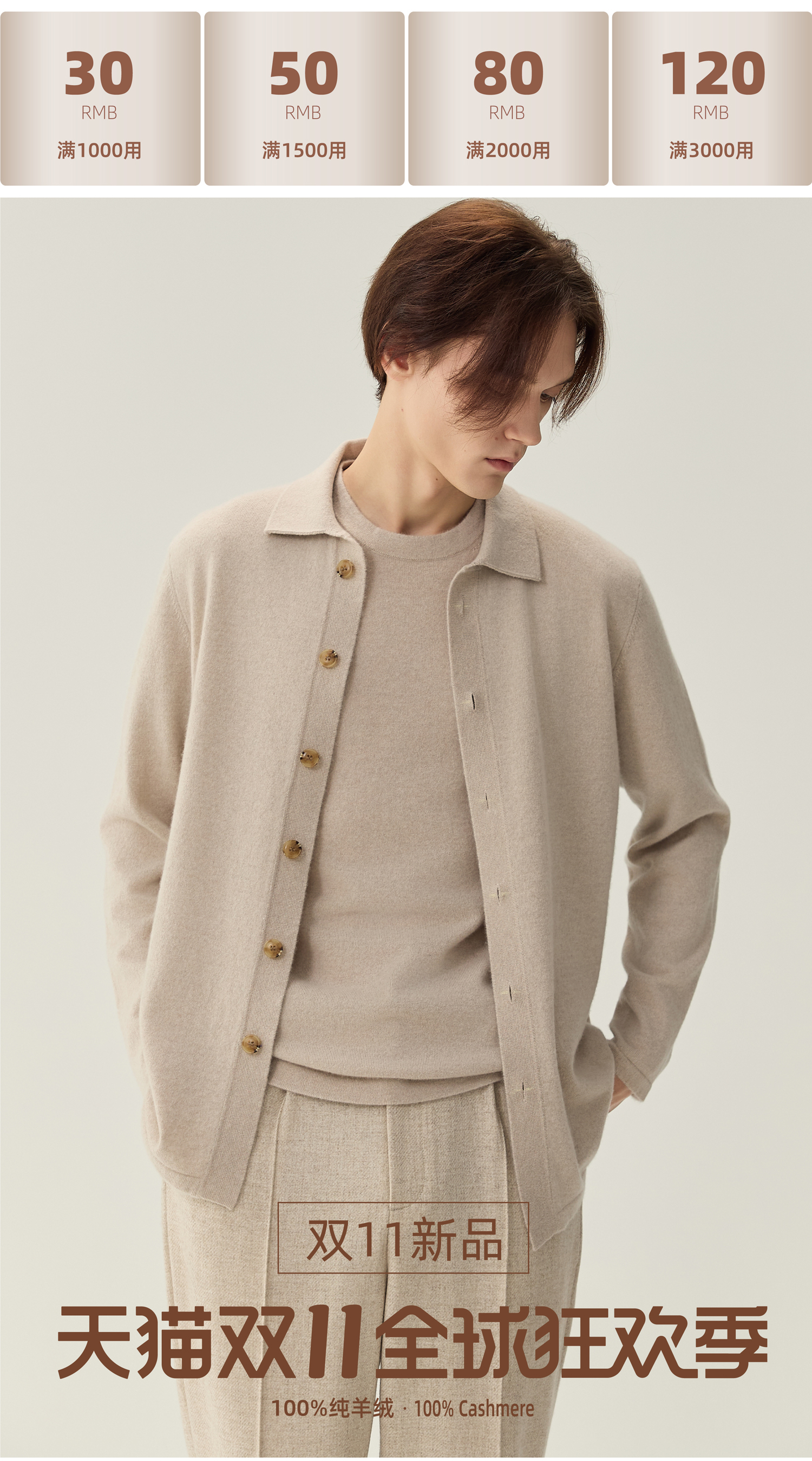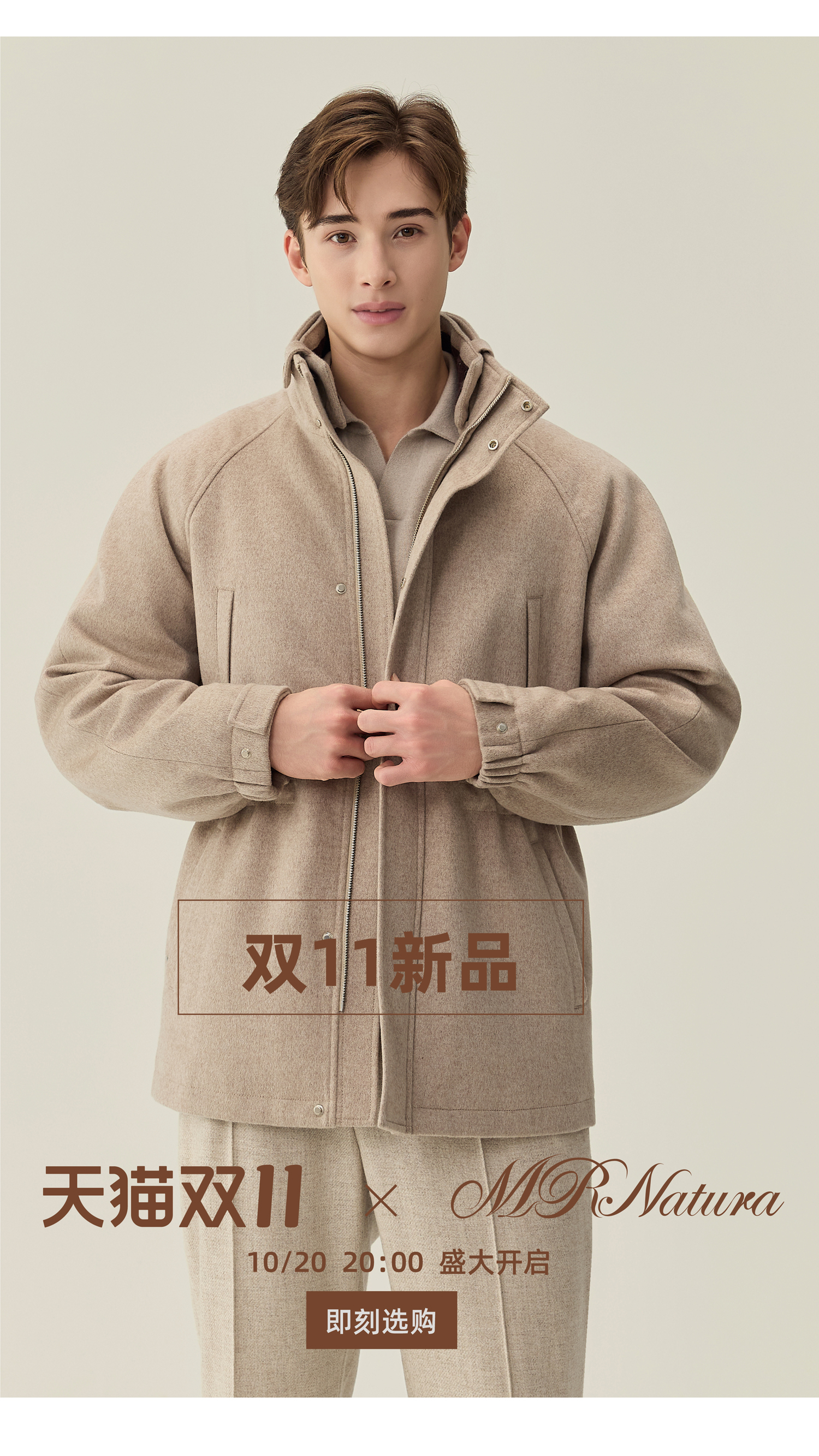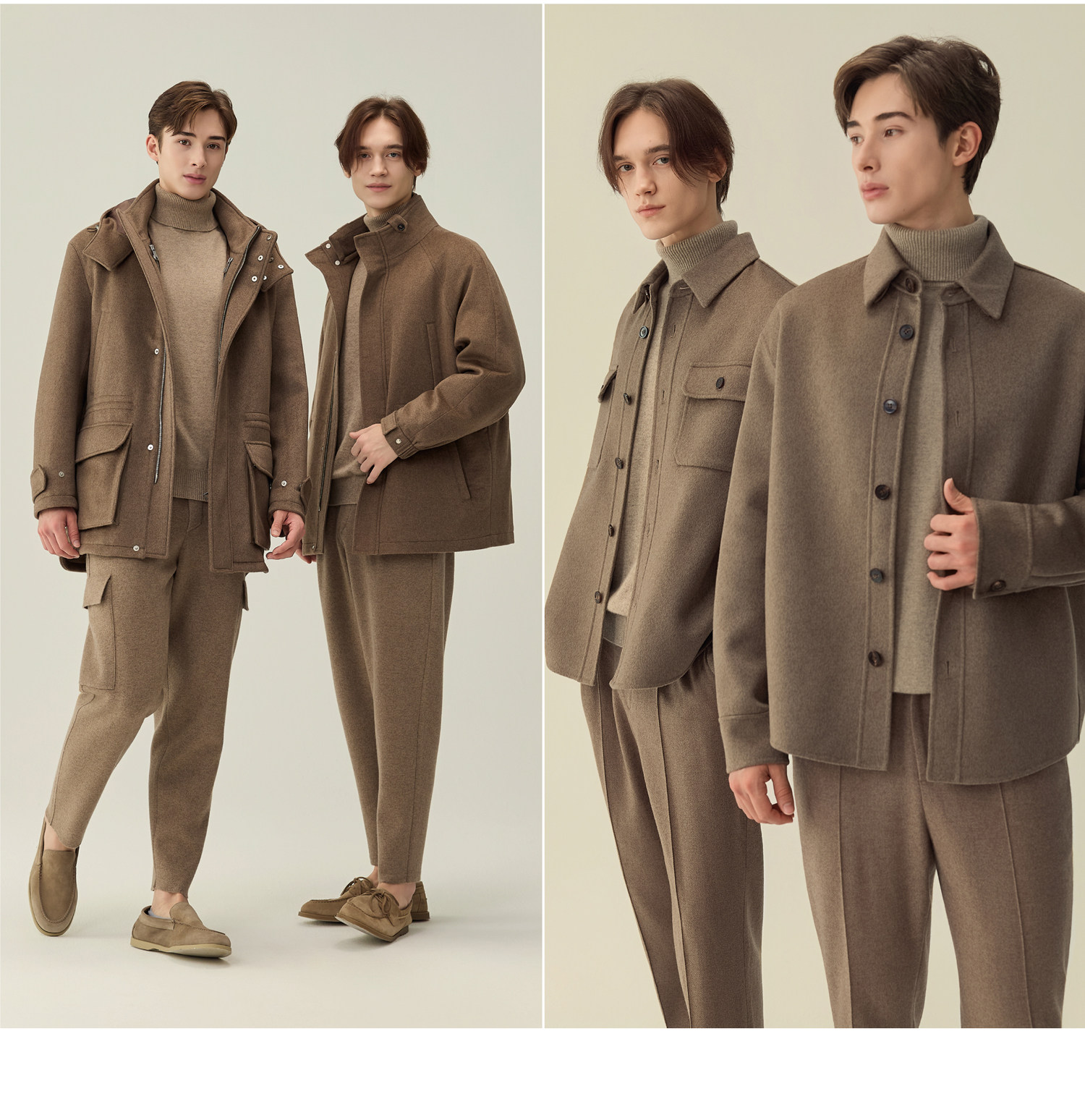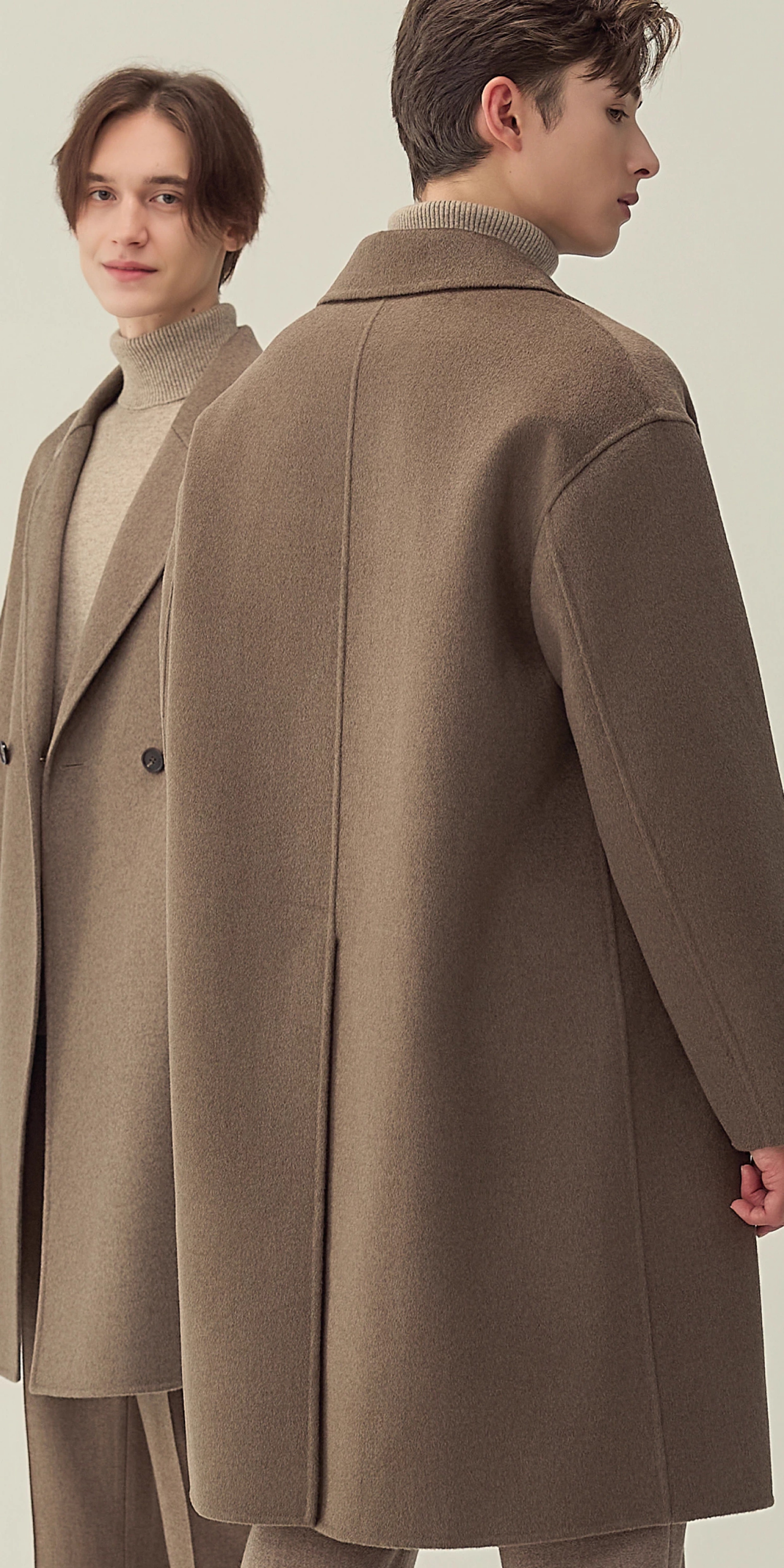 Men's Coat 100% Cashmere Lapel Short Blazer Men's Long Suit Collar Solid Color Double-Sided Woolen Coat