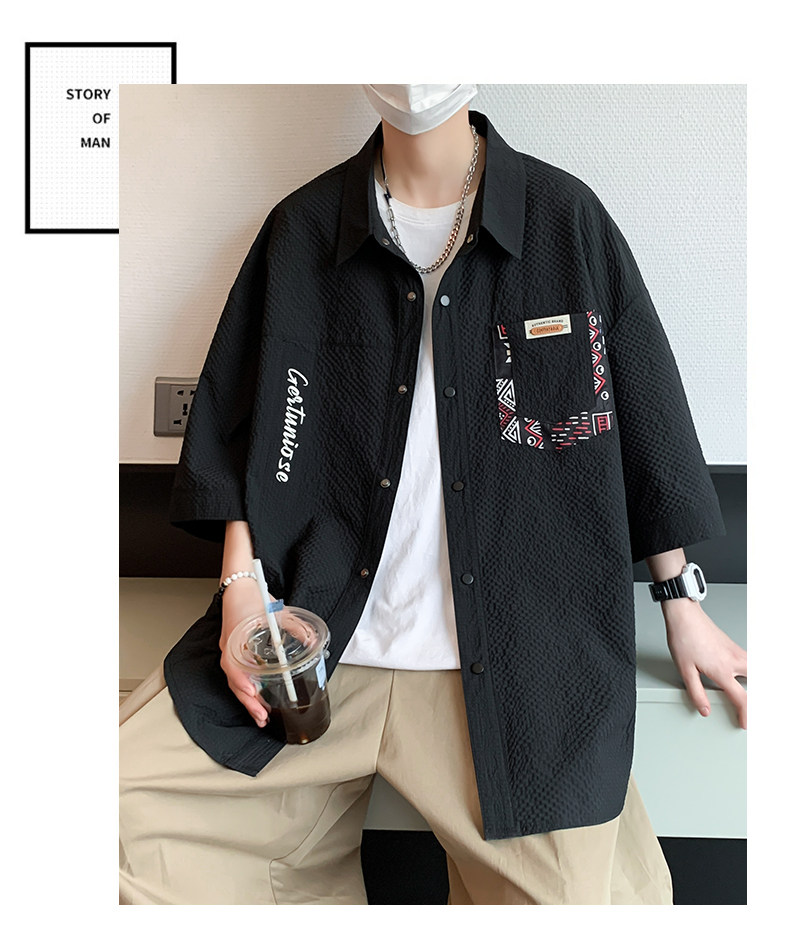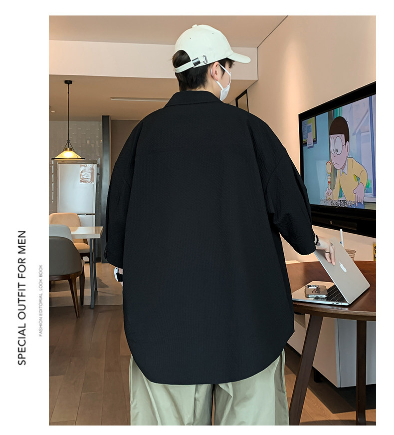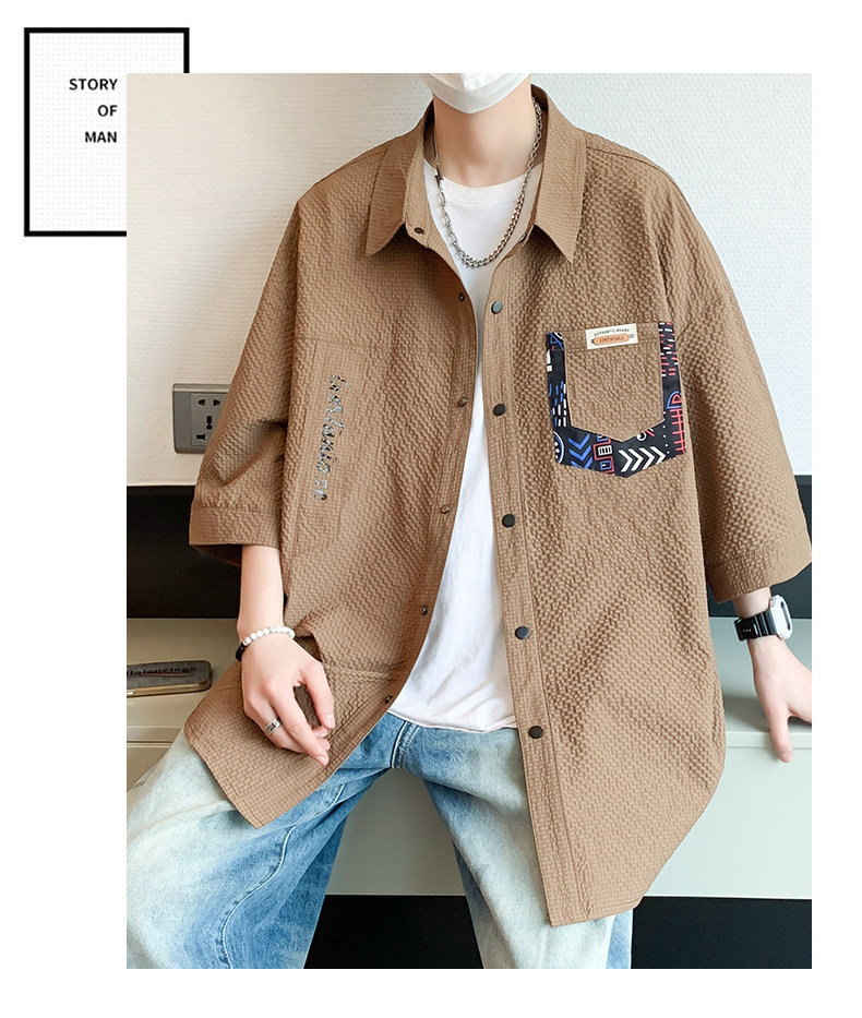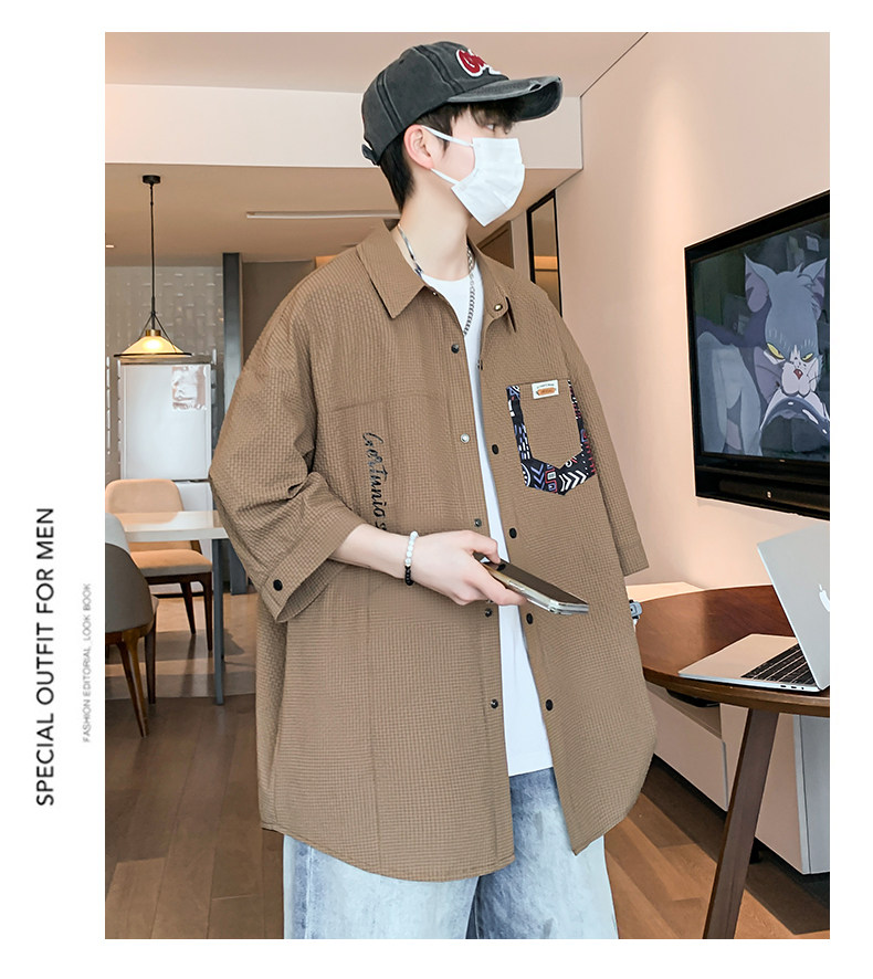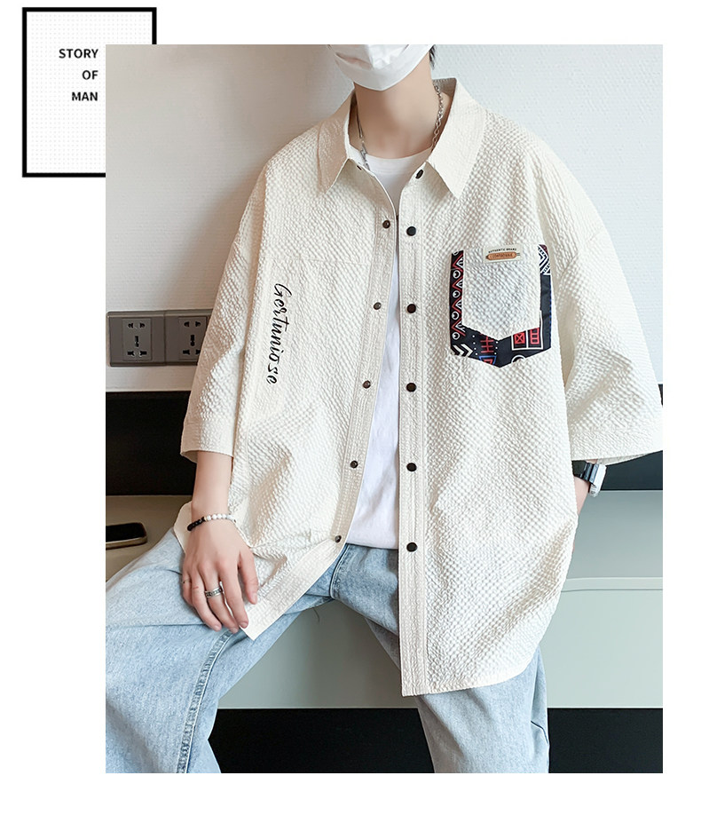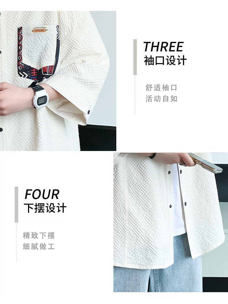 Summer Short-Sleeved Shirt for Men, Youth Hong Kong Style Trendy Brand Three-Quarter Sleeve Shirt, Junior High School and High School Student Sun Protection Jacket
