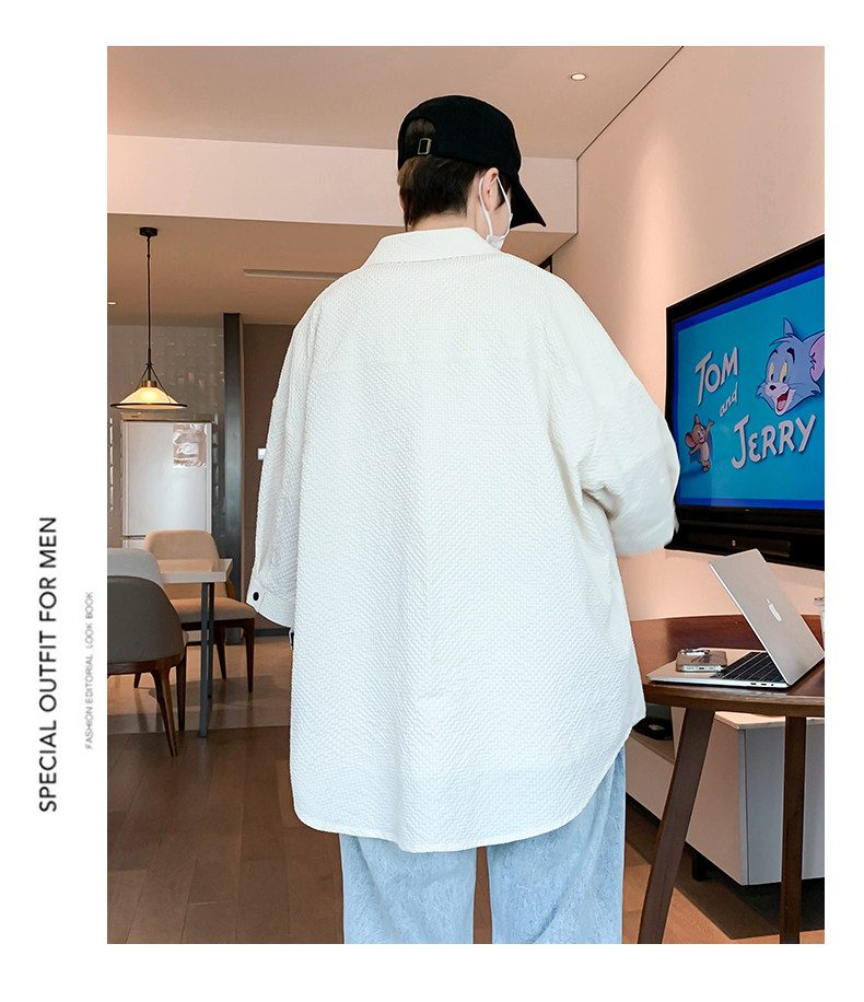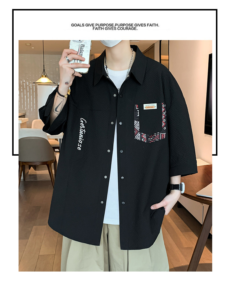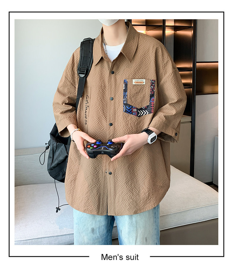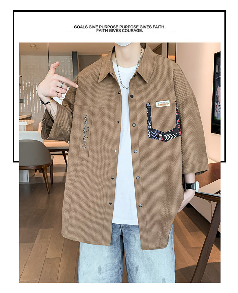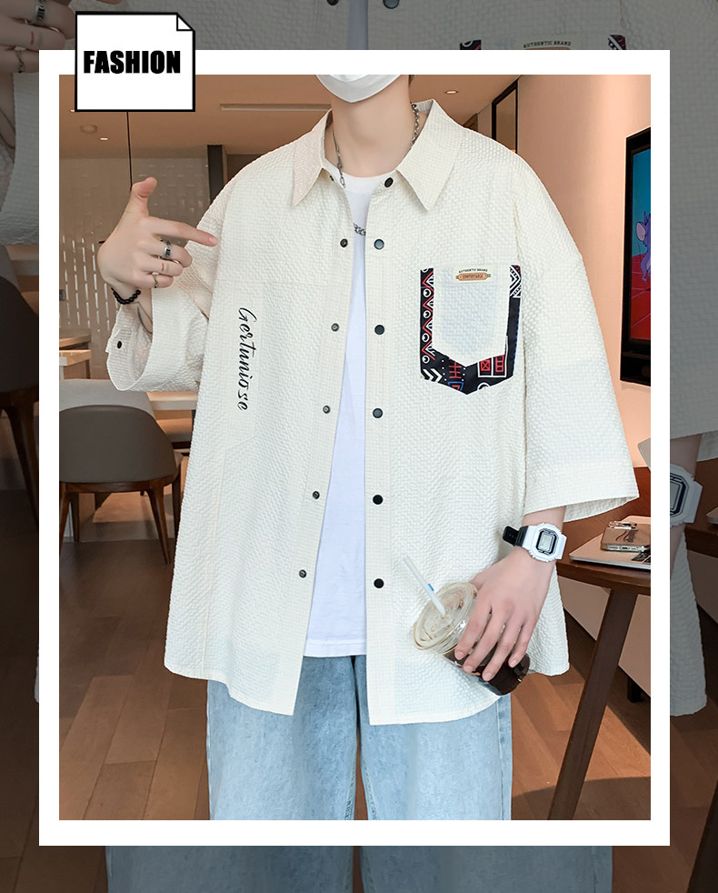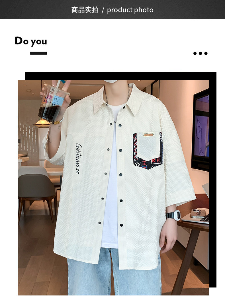 Summer Short-Sleeved Shirt for Men, Youth Hong Kong Style Trendy Brand Three-Quarter Sleeve Shirt, Junior High School and High School Student Sun Protection Jacket