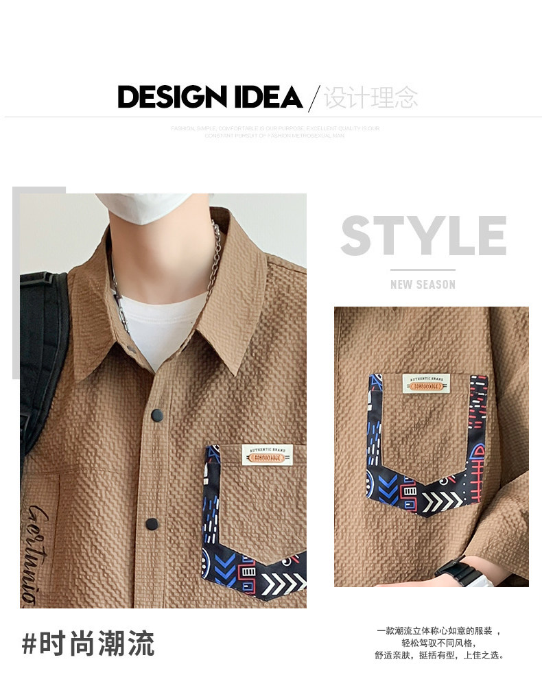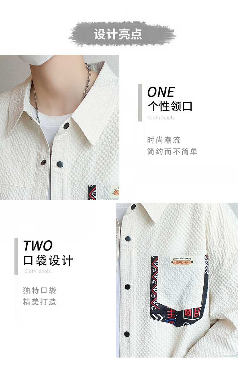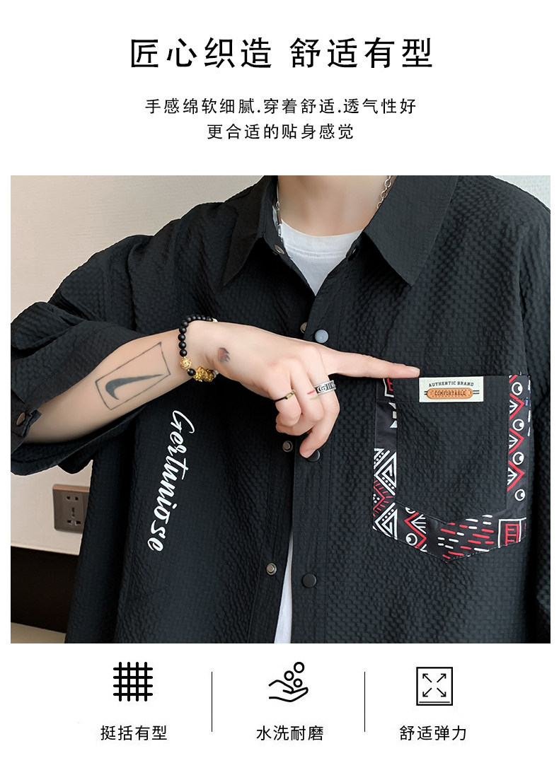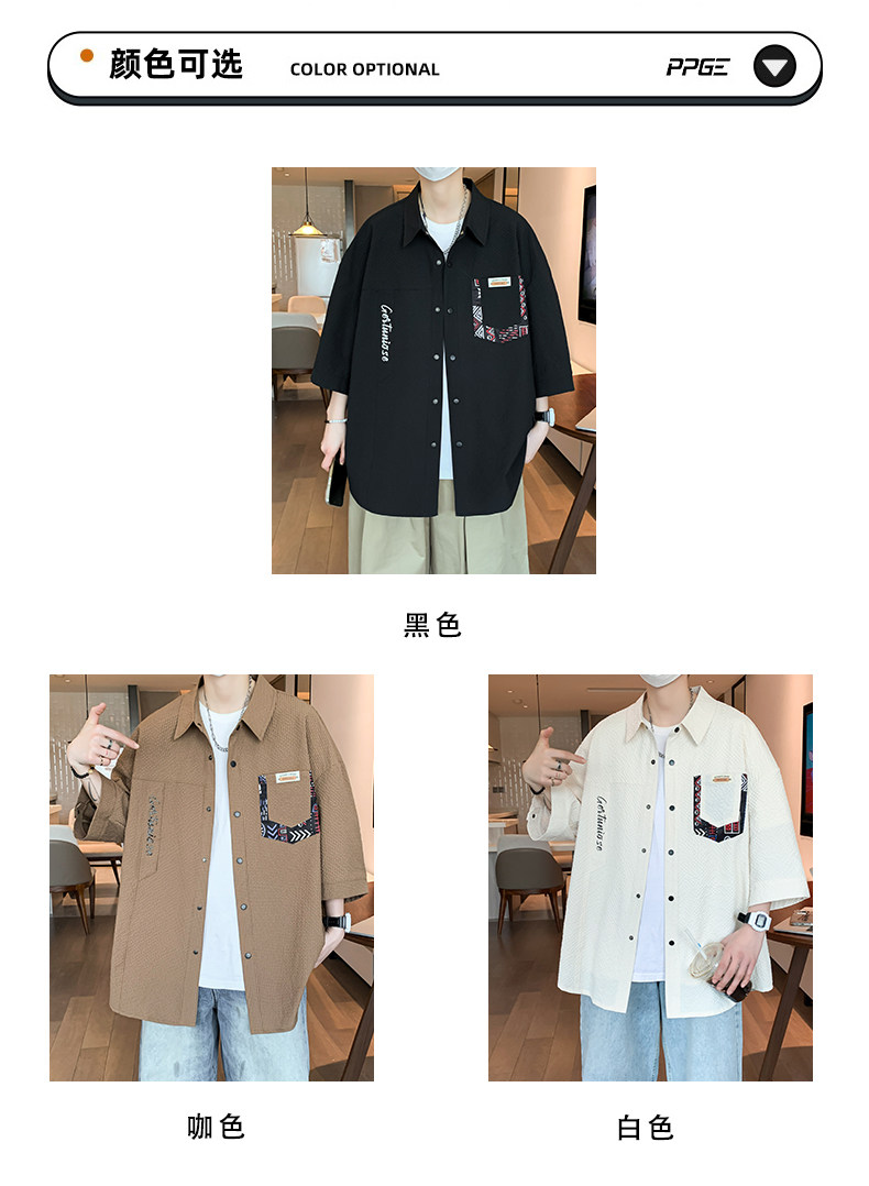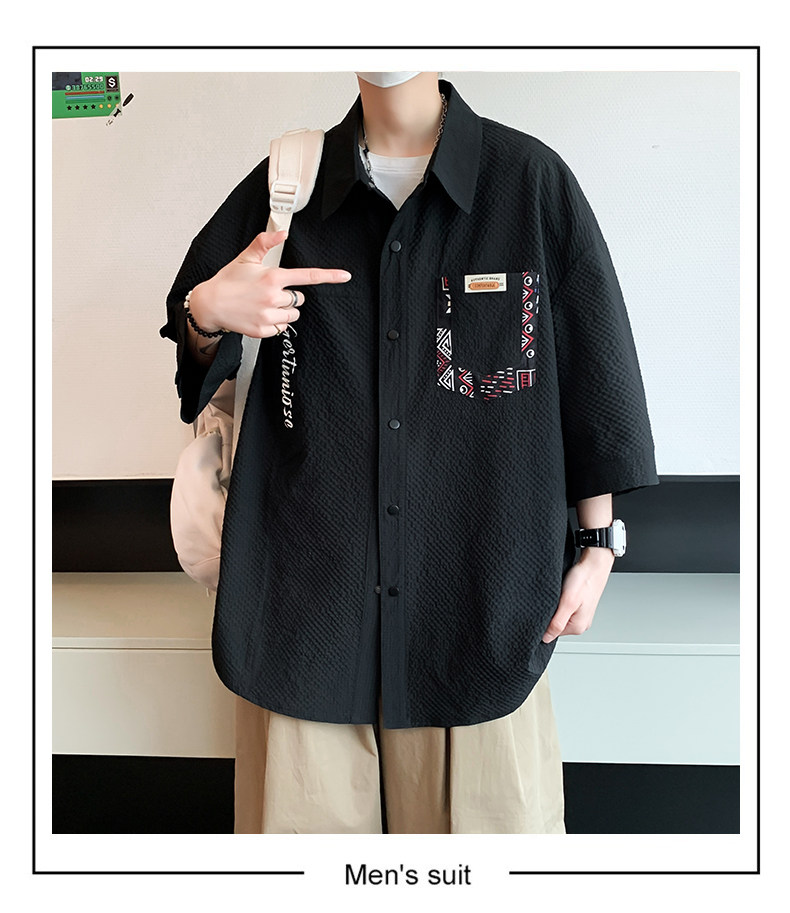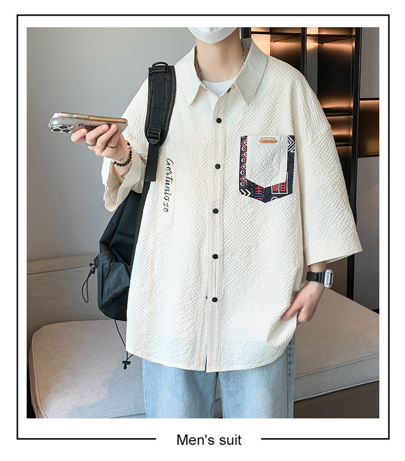 Summer Short-Sleeved Shirt for Men, Youth Hong Kong Style Trendy Brand Three-Quarter Sleeve Shirt, Junior High School and High School Student Sun Protection Jacket