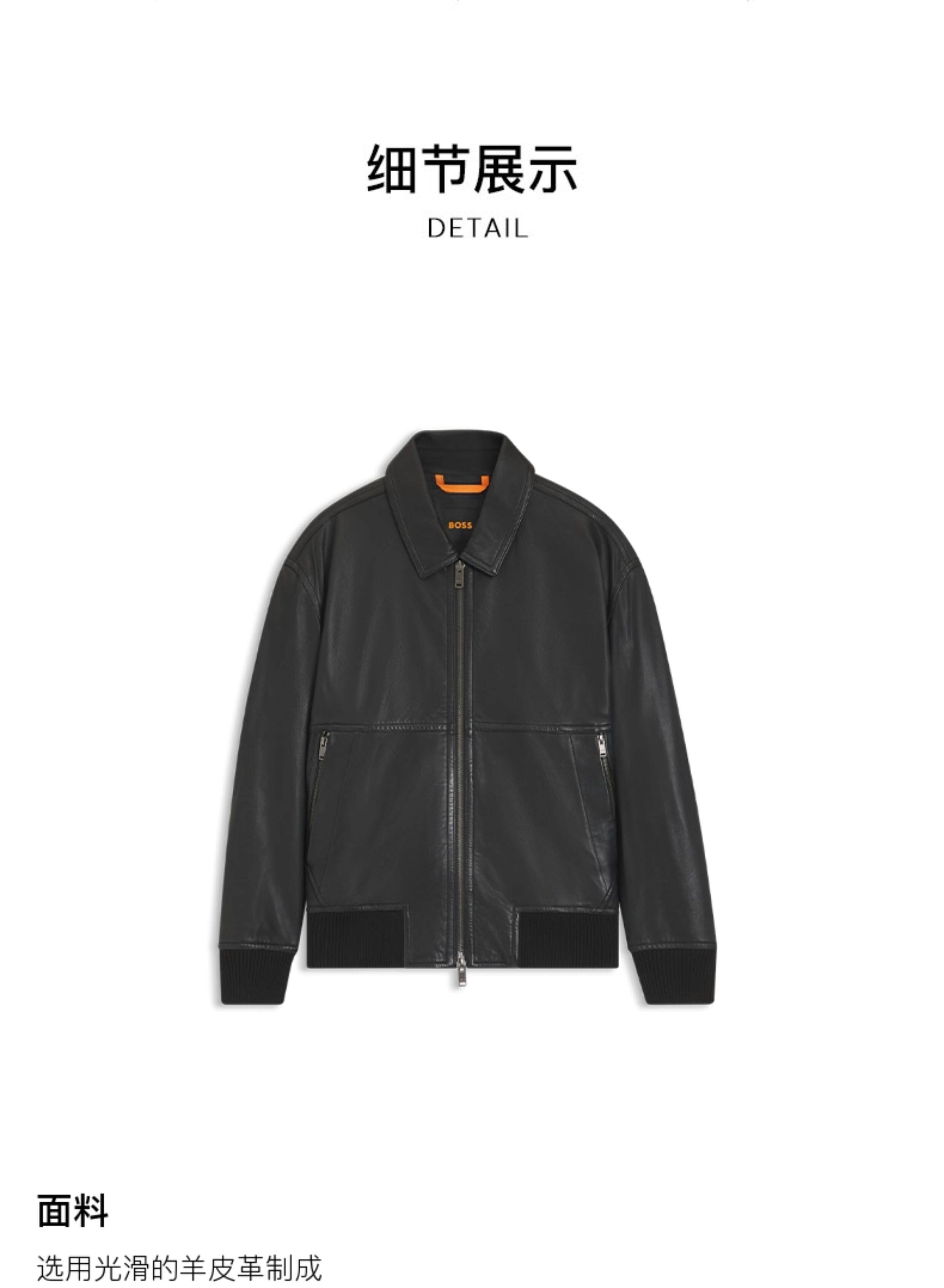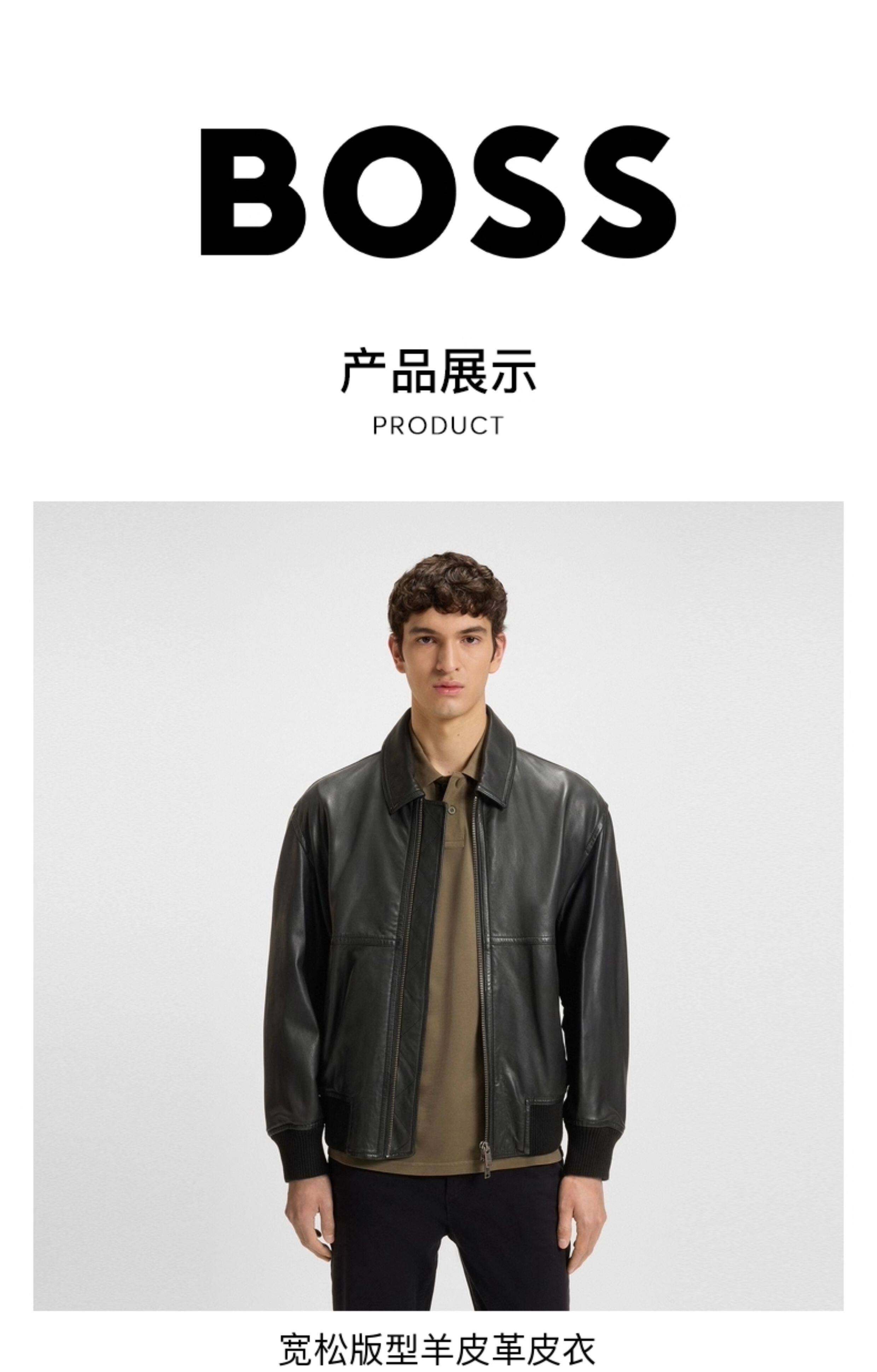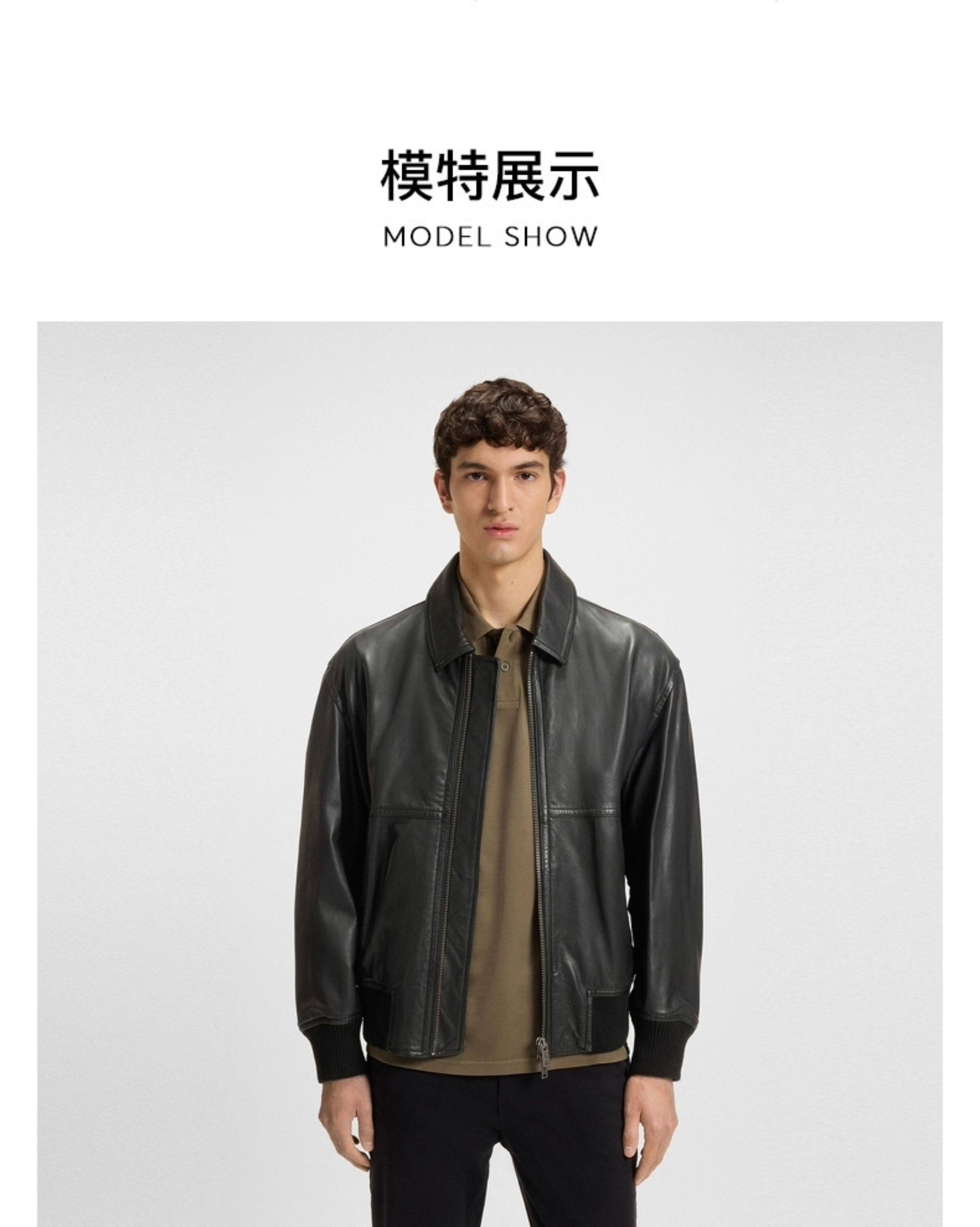 【Bomber Jacket Sheepskin】Boss Men's 25 Autumn Collection Loose Fit Sheepskin Leather Jacket