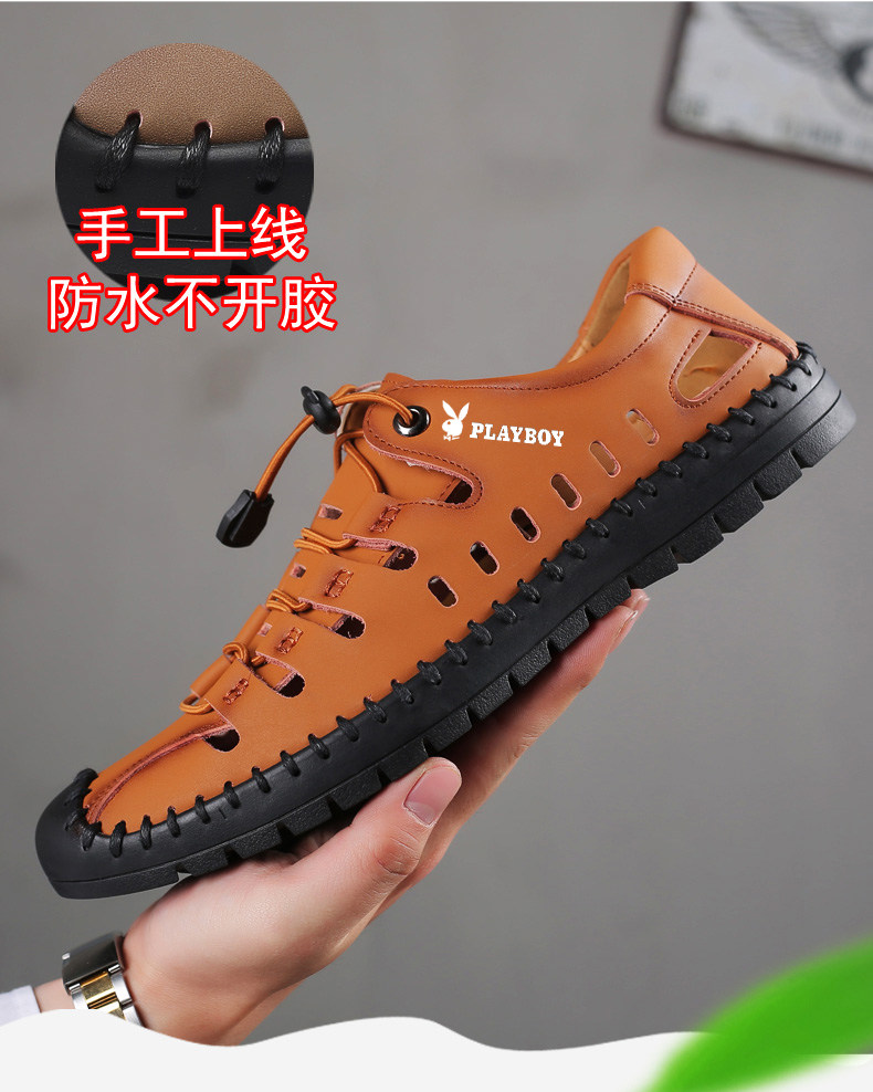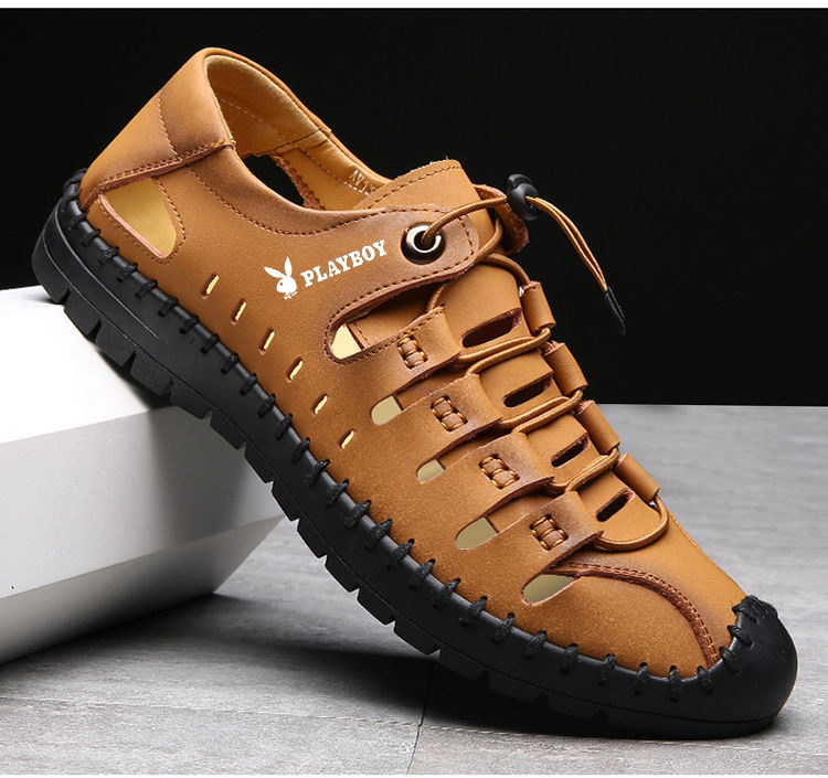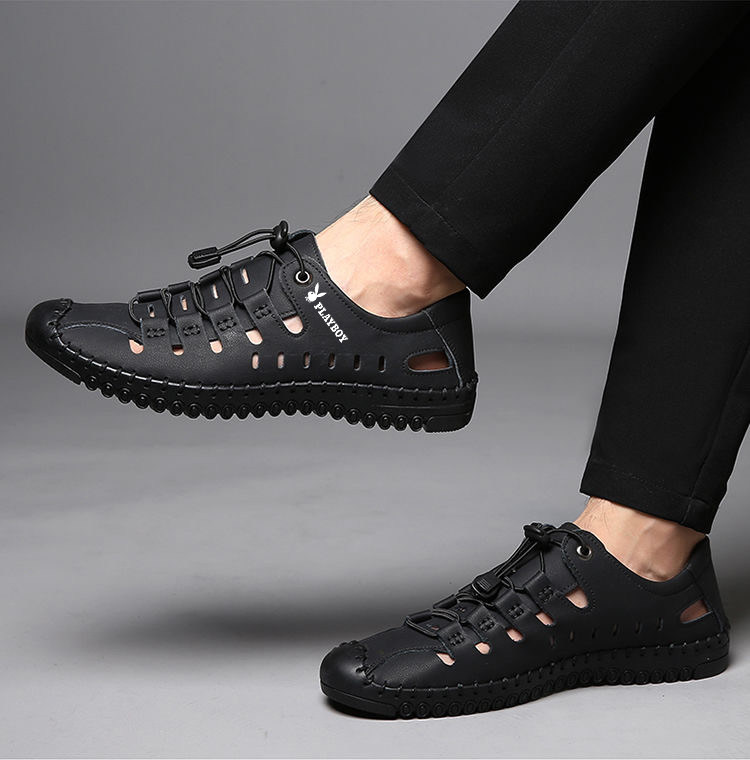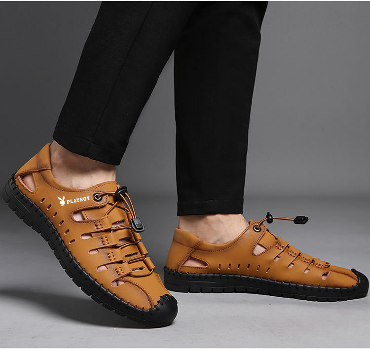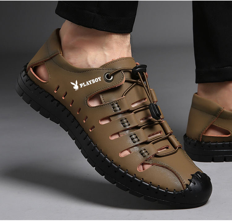 Playboy Men's Shoes 2025 Soft Sole Sandals Outdoor Casual Genuine Leather Clogs Summer Hollow Beach Sandals