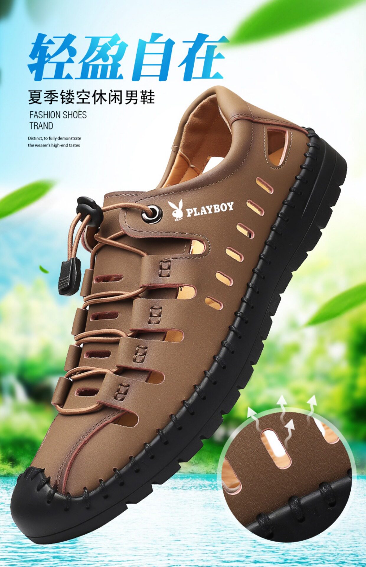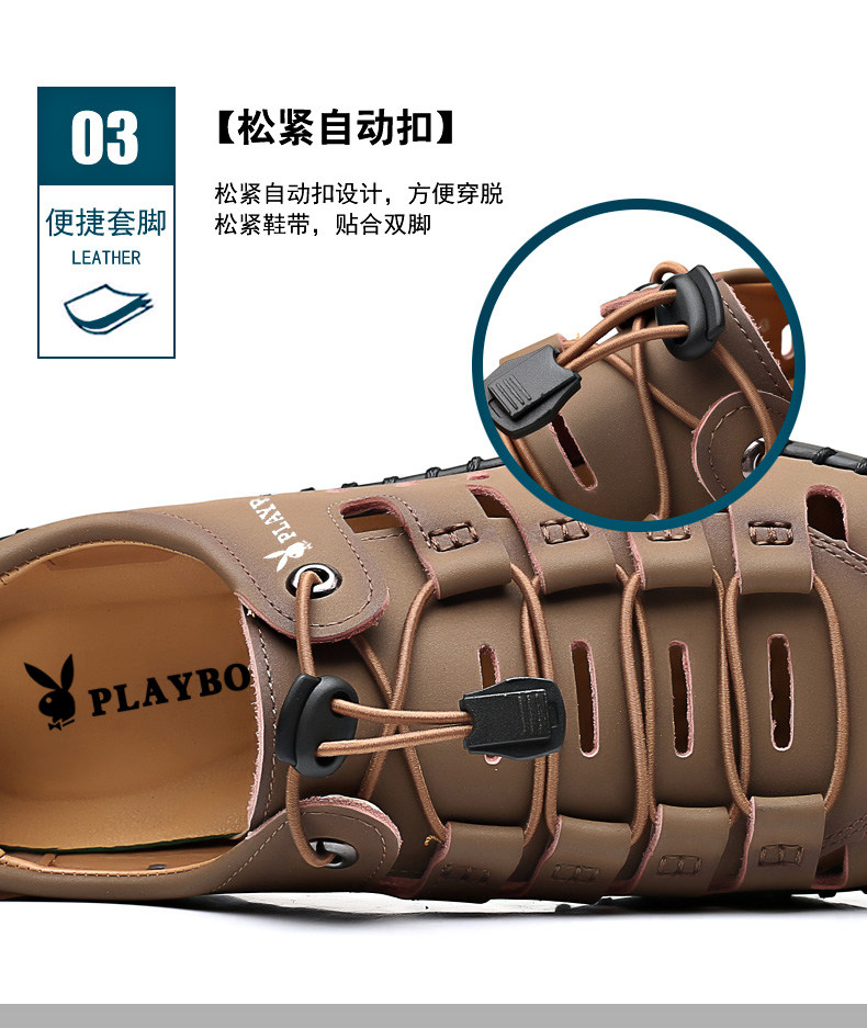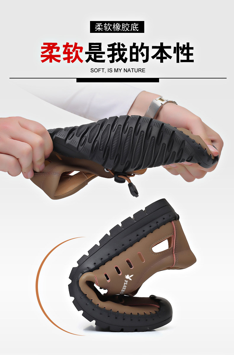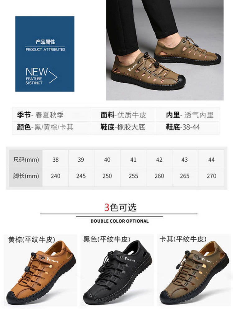 Playboy Men's Shoes 2025 Soft Sole Sandals Outdoor Casual Genuine Leather Clogs Summer Hollow Beach Sandals