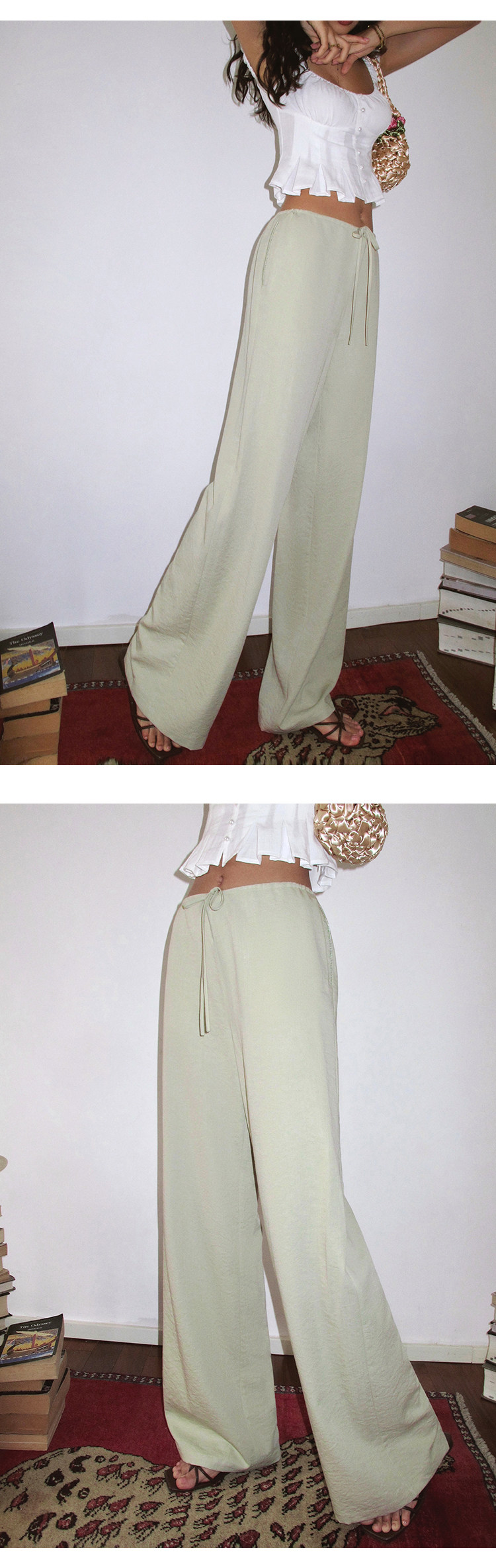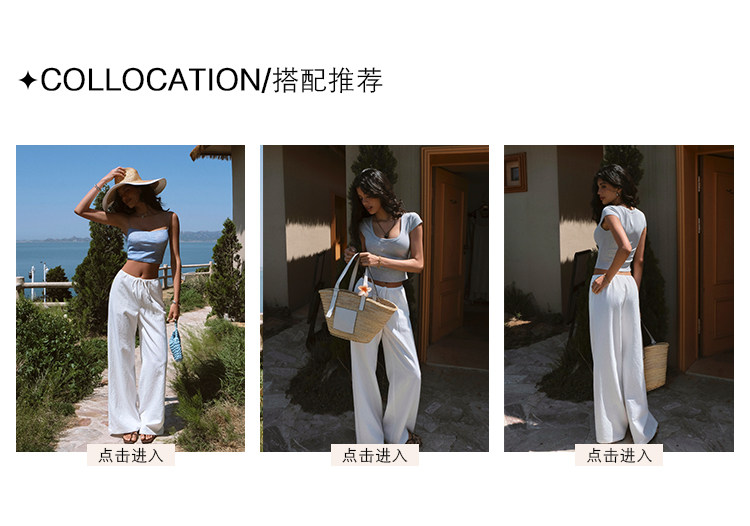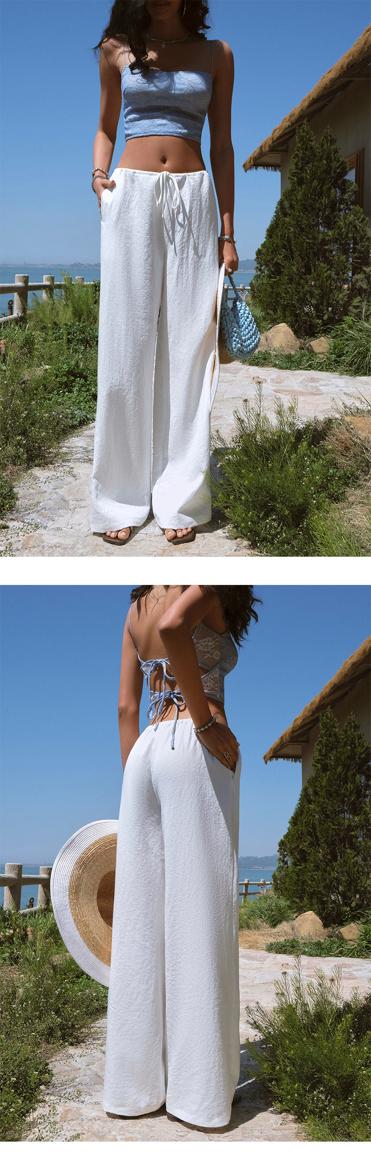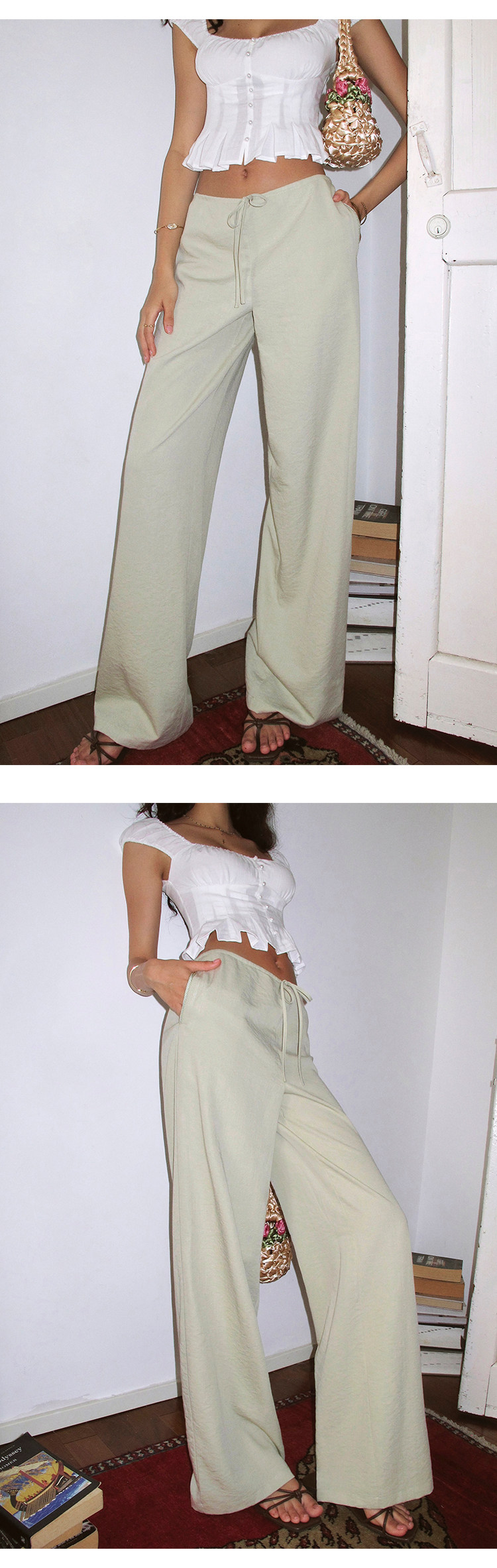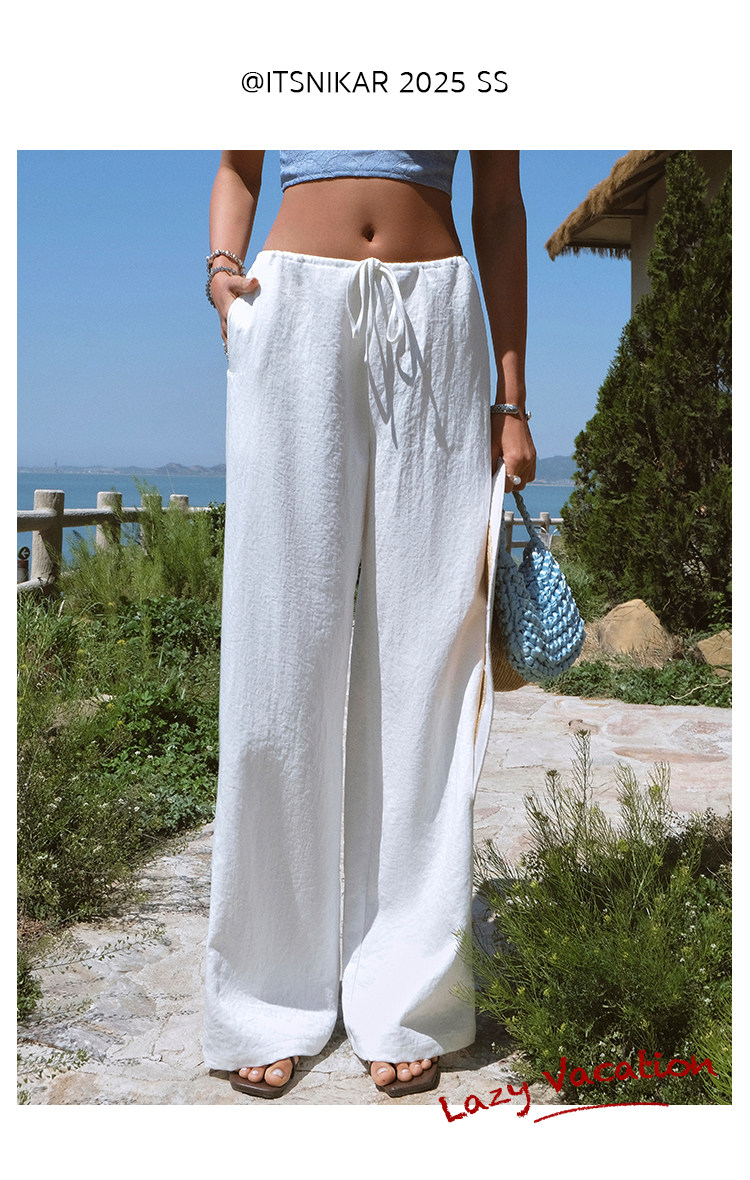 Itsnikar Casual White Pants for Women, Cotton and Linen, Relaxed Fit, Vacation Wide-Leg Pants, Drapey Long Trousers
