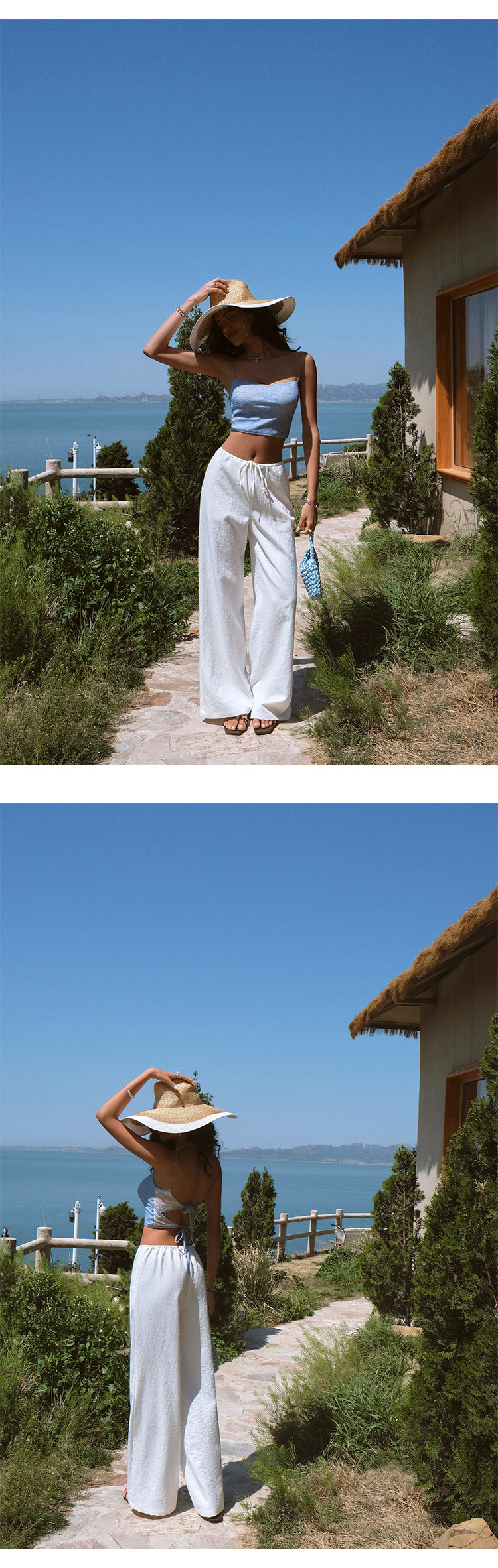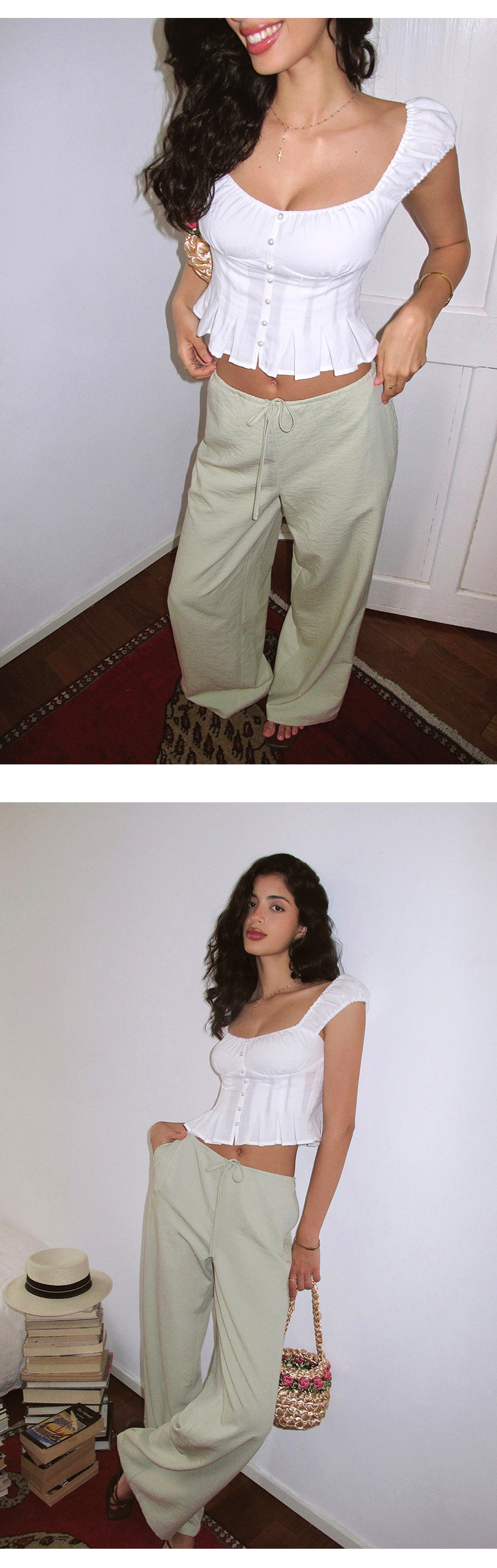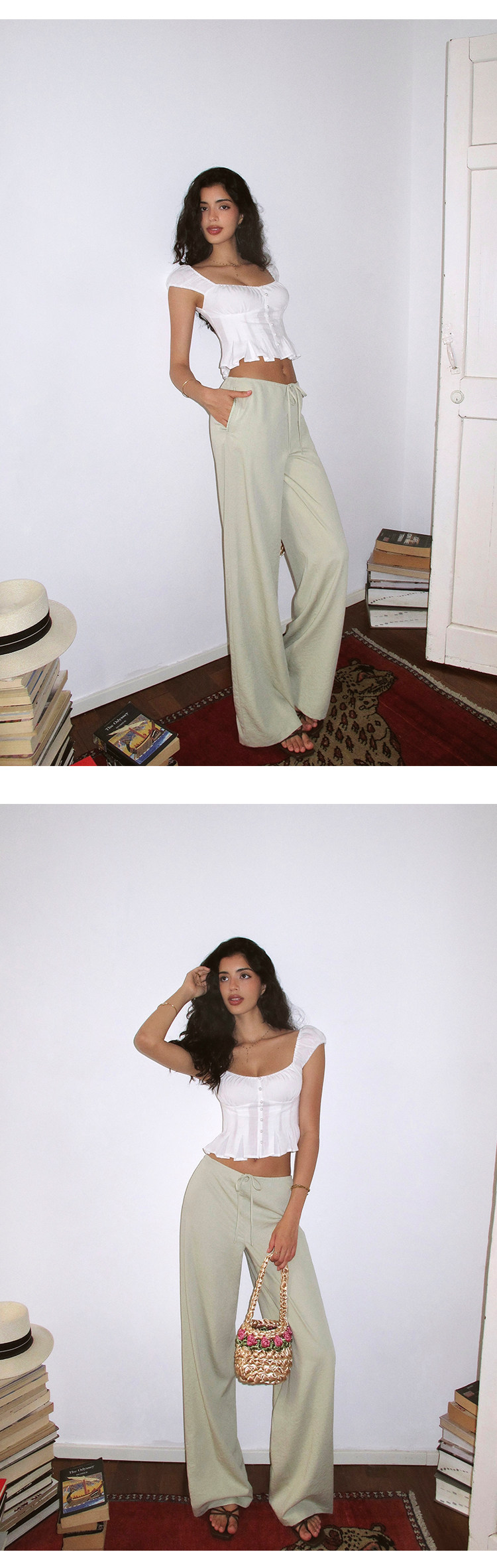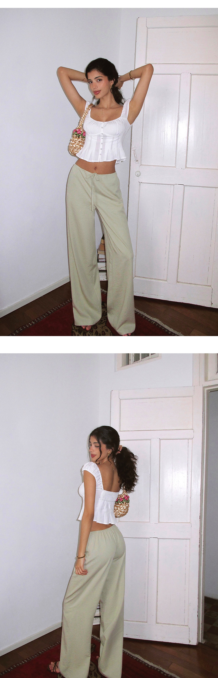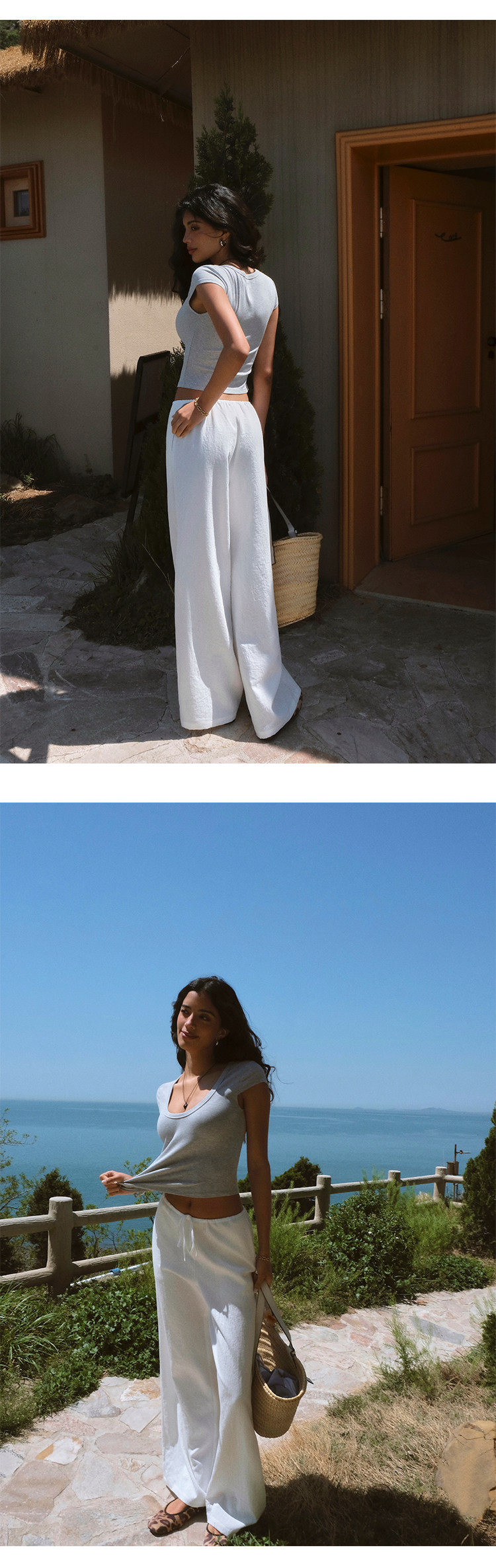 Itsnikar Casual White Pants for Women, Cotton and Linen, Relaxed Fit, Vacation Wide-Leg Pants, Drapey Long Trousers